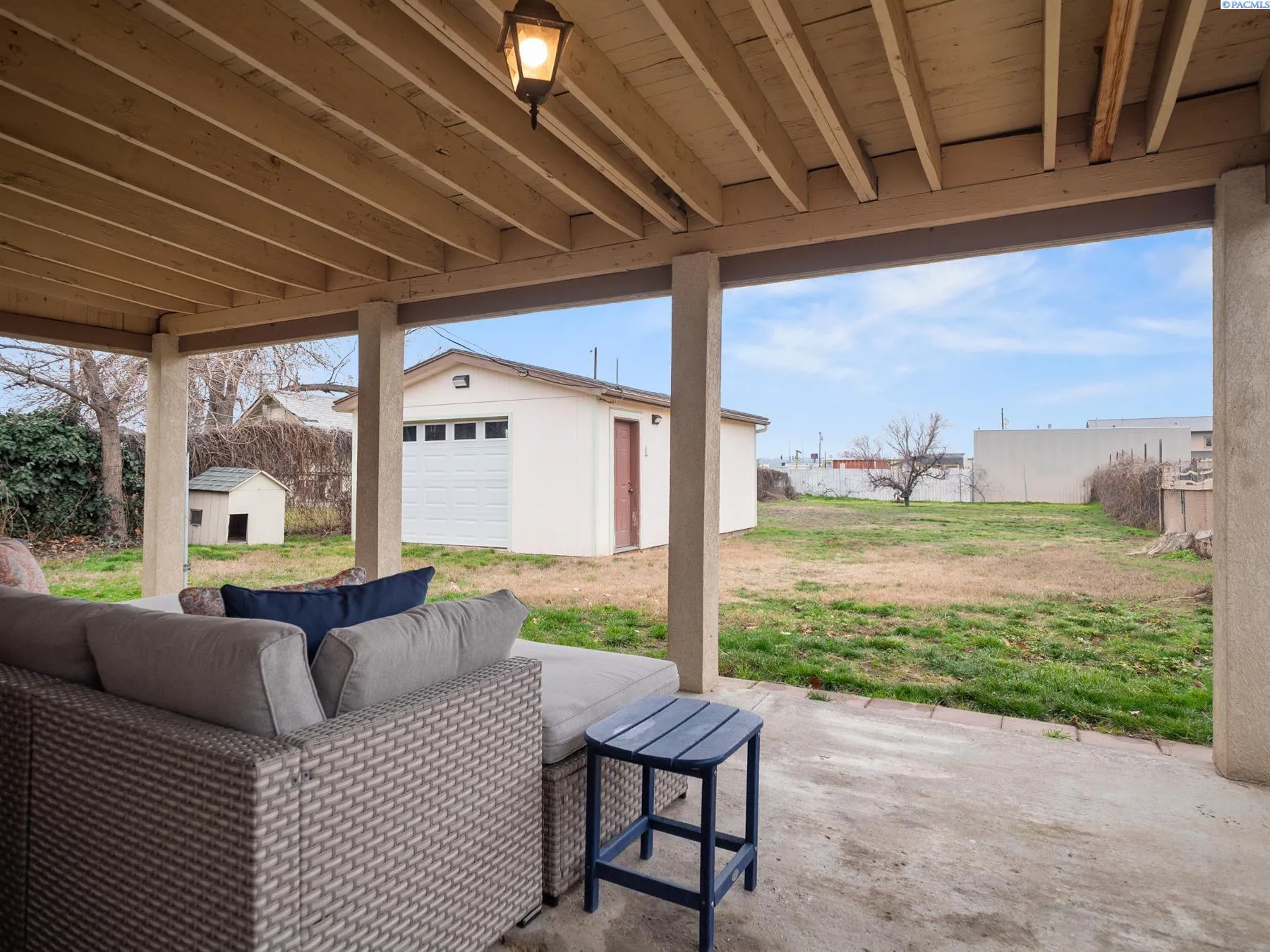 MLS# 290520 Beautifully stucco’d 1-level home on over 10,000 sqft lot. Convenient and affordable Kennewick location. Walking distance River/ Columbia Park Trail; Fruitland Park, and Cash & Carry grocery shopping. Fully fenced backyard. Meticulously maintained HVAC/ Heat pump so you won’t have to worry about heating & cooling. Zero carpeting; all hard surface flooring throughout. Main level has 1,412 sqft and consists of 3 bedrooms and 2 bathrooms. Basement is 484 sqft and has non-egress windows, but has great spaces with HVAC, finished walls, and plenty of built-in storage. Back on the main level you have a big laundry room, large kitchen, well-lit dining area, and a large living area right as you walk into the home. Covered back patio provides shade and comfortable outdoor living. Surprisingly big backyard extends for much of the 210 ft long property. Detached 1-car garage. Brand new curbing in front of home. Save yourself $500 — There is a seller pre-inspection report available. This home is worth a look. City water and city sewer. Columbia Irrigation. Welcome home.