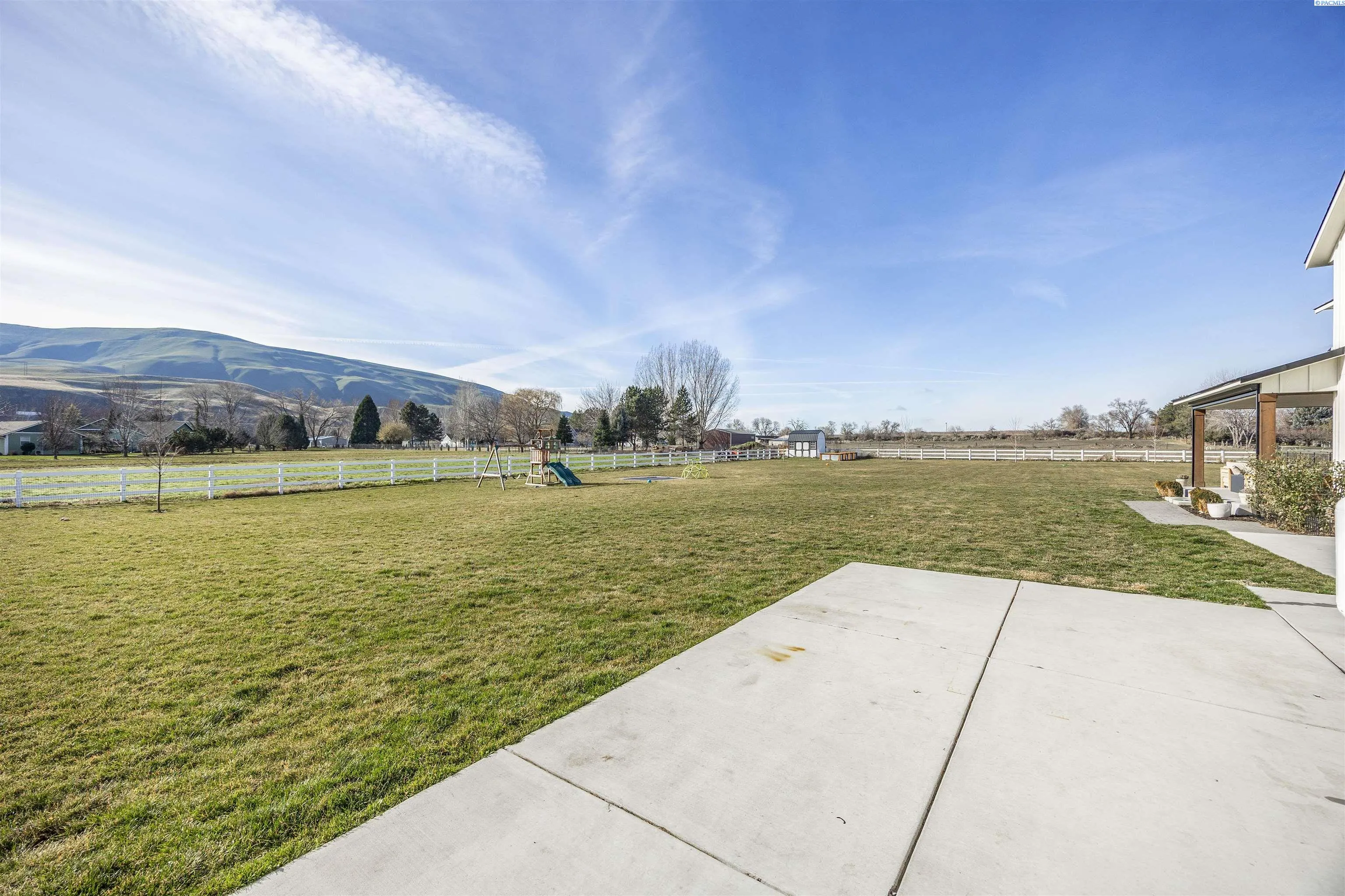 MLS# 290496 This exceptional 47 North Custom Homes resale is a stunning farmhouse-style retreat set on 2.5 fully irrigated, serene acres in beautiful Prosser, Washington. Offering 4,107 square feet of thoughtfully designed living space, the home features four generously sized bedrooms and five bathrooms, making it ideal for hosting guests and effortless entertaining. Warm wood beams, expansive sliding doors, and a covered patio create an inviting indoor-outdoor flow, while the bathrooms showcase striking herringbone tile and a spa-like soaking tub in the primary suite for ultimate relaxation.The chef’s kitchen is equally impressive, complete with a large island, stainless steel appliances, classic white subway tile, a spacious walk-in pantry cleverly hidden behind custom cabinetry, and built-in speakers that enhance everyday living. Above the garage, a private loft with a full bathroom offers flexible space perfect for guests, separate living quarters, or a home office. Adding a unique touch of charm and intrigue, the home also features a cleverly concealed hidden room waiting to be discovered.Designed for comfort, convenience, and entertaining, the property includes home-automated Hunter Douglas blinds, surround sound in both the living room and dedicated movie room, speakers in the kitchen and on the front and rear porches, a central vacuum system, water softener, patio shades with awning, and permanent Trimlight holiday lighting. The home is equipped with a comprehensive Ring security system featuring window and door sensors plus six exterior security cameras for added peace of mind.Outdoor and garage amenities are just as impressive, including a spacious Bullfrog hot tub larger than standard models, an RV-ready 50-amp plug-in, and a 220-volt garage outlet ideal for a welder or workshop setup. Step outside and enjoy peaceful country living, fresh air, and wide-open views from the covered patio.Blending luxury, character, modern technology, and privacy, this extraordinary property is truly one you won’t want to miss.