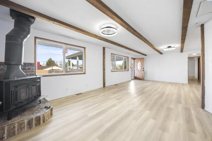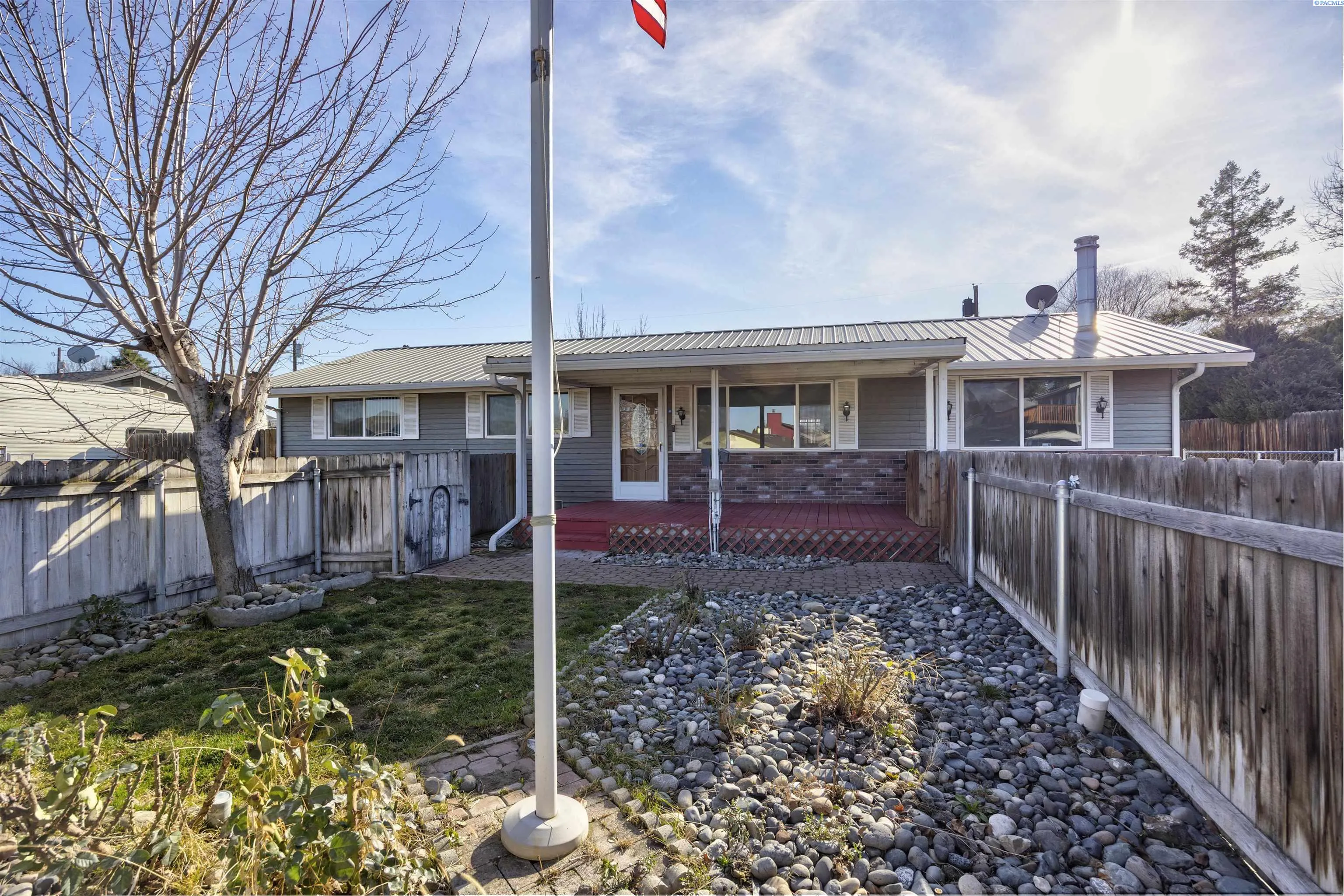 MLS# 290484 Seller Offering $10k Towards Buyer’s Closing Costs! Affordable living in Benton City! This charming one-story home offers 1,596 sq ft of living space with 3 bedrooms and 2 bathrooms, all situated on a spacious .23-acre lot. A large covered front porch welcomes you inside to a spacious living room featuring wood beams, large windows that flood the space with natural light, laminate wood flooring, and a cozy fireplace for chilly evenings. Fresh paint and new flooring in the kitchen, dining area, and hallway add a refreshed feel. The kitchen offers classic charm along with an extra-large pantry featuring a glass door and ample storage. The dining area provides convenient exterior access and plenty of room for meals with your loved ones. The primary bedroom includes two customized closets for excellent organization, plus a bonus/flex space just off the suite complete with a wet bar, mini-split system, and direct access to the backyard—perfect for a private retreat, hobby space, or home office. A dedicated laundry room includes a utility sink and shelving for added convenience. Outdoors, enjoy the freshly painted large covered deck overlooking a spacious fenced backyard with KID irrigation. The impressive 896 sq ft detached garage offers abundant space for vehicles, projects, and storage, complete with built-in cabinets. Additional off-street parking and a graveled RV parking area provide even more flexibility. You will be happy to know this home comes complete with a comprehensive home inspection and a 1-year home warranty! This home offers space, functionality, and value—schedule your showing before it’s gone!