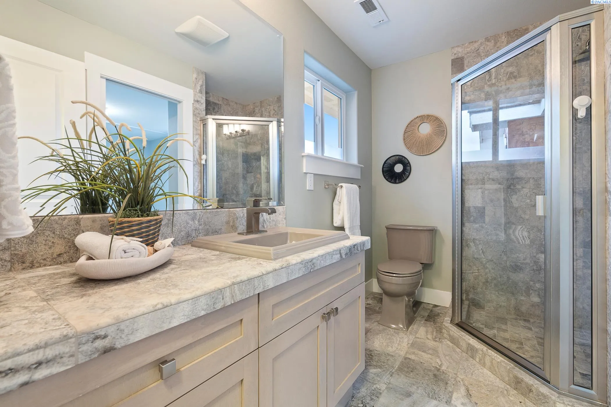 MLS# 290463 Imagine waking up to the morning sun shining on Columbia river, strolling on the river-side trail with your dog or kids, enjoying a private river-front dinner watching boats and jet skis zooming by, or slipping into a quiet retreat with just sounds of nature and waves. Imagine doing all of above every day. And better than that, turn your imaginations into a reality by living here! Tucked in a secluded community in North Richland and across George Washington Way from Battelle main campus, this house drive strikes an ideal work life balance or an unmatched retirement oasis. 10 foot tall first floor, double-floor foyer and vaulted living room ceiling provides amazing openness and natural lights to the house. Two river-facing master bedrooms, two marble-covered 5-piece en-suite baths, two additional bedrooms and a loft overlooking the living room blend functionality with luxury at every level. Solid constructions, quality materials and HOA managed landscapes provide a carefree life style you desire. Not in flood zone and no flood insurance is required. This is a rare opportunity as river-front properties are scarce in the Tri-Cities. Act now to claim it your home! (PLEASE CHECK THE VIDEO LINK!)