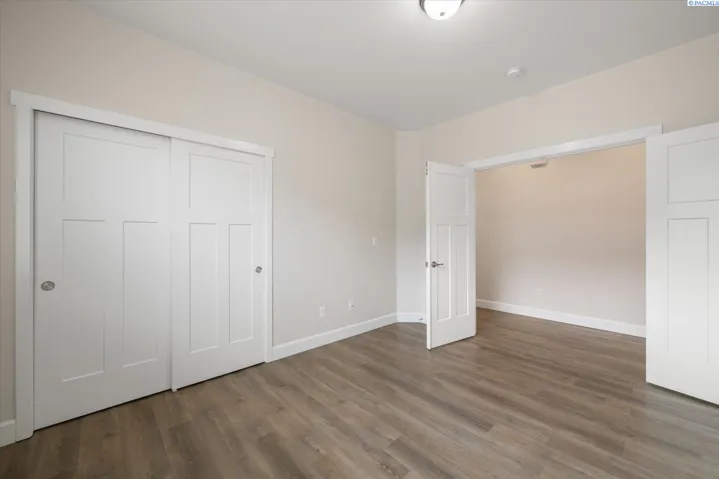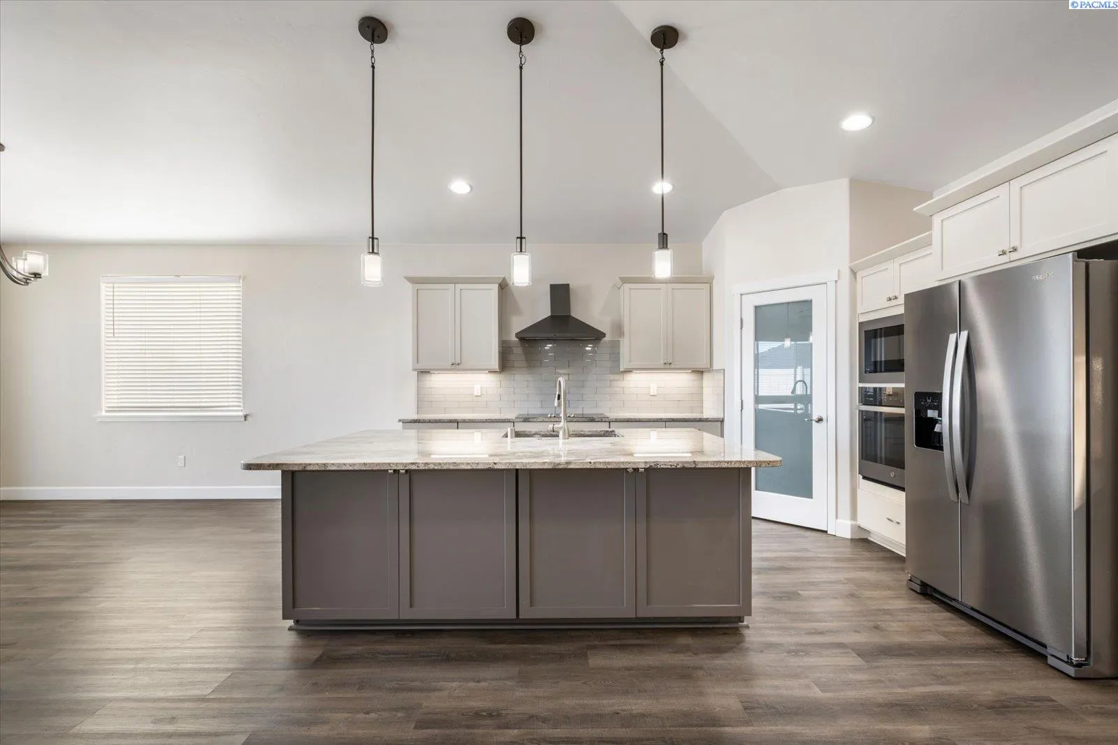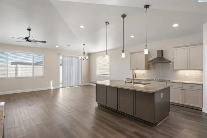 Beautiful end-unit townhouse, tucked away at the back for added privacy and a peaceful setting. This 1,802 sq ft home features a stylish stucco exterior with rock accents and a functional 3-bedroom, 2-bath layout with a 2-car garage. This home was built with aging in mind, offering true single-level living with no steps, wider hallways and doorways, lever door handles, easy-turn faucets, and toggle light switches for everyday comfort and accessibility. The spacious kitchen is thoughtfully designed with quartz countertops, a full tile backsplash, cooktop, wall oven and microwave for easier access, corner pantry and a large island that provides excellent prep space and storage. Wood laminate flooring flows through the main living areas, complemented by tile flooring in the bathrooms. The private primary suite is thoughtfully separated from the additional bedrooms and showcases a beautiful, tiled shower, double-sink vanity, and a spacious walk-in closet. Step outside to enjoy the private back patio, perfect for morning coffee or relaxing evenings. Located in the heart of West Richland, with nearby grocery store, coffee shop, restaurants and so much more just minutes away.