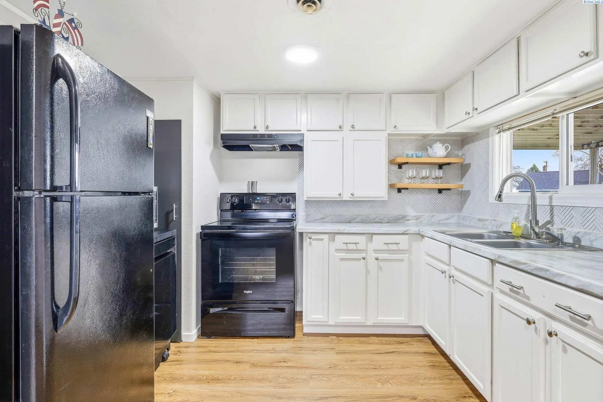 MLS# 290389 Welcome to 910 Snow. Imagine coming home to a space that feels welcoming, comfortable, and effortlessly put together. A place where mornings are easy, evenings are calm, and everything feels just right. This beautifully updated 3-bedroom rambler offers that feeling the moment you walk through the door.Step inside to a light and open floor plan with designer-quality touches throughout. The kitchen is both stylish and functional, featuring updated cabinets, a classic herringbone tile backsplash, modern appliances, and eye-catching custom shelving in the dining area—perfect for everyday living and entertaining.Updated LVP flooring and carpeting in the bedrooms adds warmth and comfort, while the extra-wide hallway offers thoughtful built-in bench seating and storage, blending function with great design. Two generously sized bedrooms are joined by a versatile third bedroom, ideal for a home office, nursery, or guest space. Outside, the large backyard offers plenty of room to relax, entertain, garden, or simply enjoy quiet evenings.—a perfect place to unwind at the end of the day.Located in an established Richland neighborhood, you’ll love the convenience of nearby schools, shopping, and easy access to everything the Tri-Cities has to offer. Whether it’s morning walks, quick errands, or peaceful evenings at home, this location supports a comfortable, connected lifestyle.