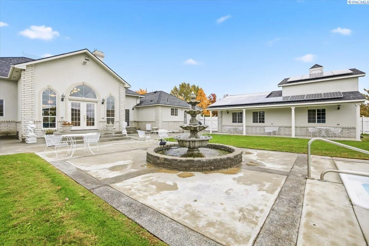 MLS# 288681 Welcome to magnificent Rose Manor, a custom European-influenced Estate designed with lasting quality, privacy and multigenerational living in mind. Offering 4 bedrooms and 4 bathrooms, this residence sits on 2.43 fully developed acres with flexible living areas and exceptional outdoor amenities. The main level features raised ceilings, a floor-to-ceiling library wall and an expansive dining room planned for hosting large gatherings. The spacious kitchen provides abundant workspace and storage for daily use and entertaining. The primary bedroom includes Sliding door access to the pool and landscaped grounds, along with a spa-like ensuite with separate vanities and separate walk-in closets. Two additional bedrooms and bathrooms on the main level offer comfort and convenience. Just off the kitchen/dining area, there is additional living space with plumbing for small kitchen, full bathroom and loft bedroom – perfect for guests or potential apartment. The lower level includes another bedroom and bathroom and large flex/living space. To top it off, there is a full apartment offering independent apartment with a large bedroom, bathroom, living area and a private entrance — ideal for multigenerational households, extended guests or rental income. Outdoor amenities include a private pool with pool house with bathroom, dressing room and pump room, a vineyard and mature landscaping cultivated over decades to provide beauty, shade and privacy. A solar-power aided shop offers exceptional utility for vehicles, hobbies or business needs. Additional Highlights: • 6 bedrooms + 5 bathrooms across two functional living levels • True multigenerational or revenue generating layout with separate access points • Event-capable grounds with pool and extensive hardscape • Ample parking and shop space • Convenient NW Pasco location with natural privacy from the street. A rare opportunity to own a property with this level of space, flexibility and thoughtful design — ready to support a wide range of living arrangements and lifestyle needs.