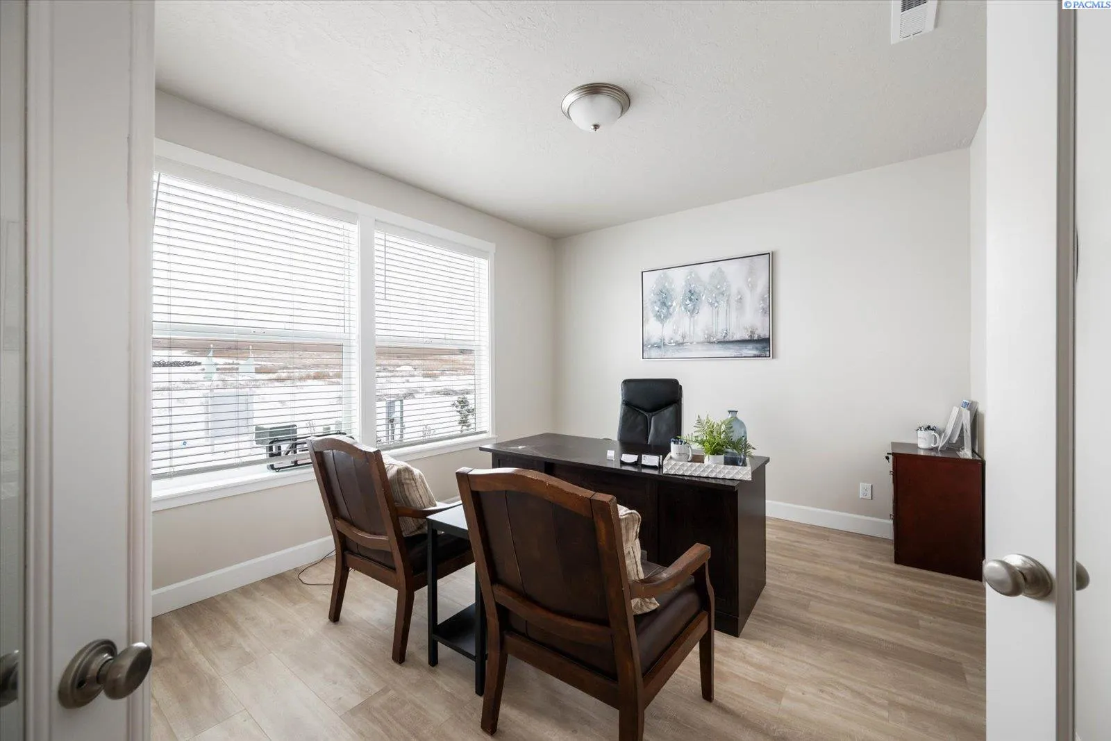 MLS# 281865 Spacious Living with a Huge Kitchen Island in Apple ValleyDiscover your dream home in the welcoming community of Apple Valley, Kennewick. This single-family, 1-story residence offers an ideal living space on a .2-acre lot. The standout feature is the expansive kitchen island that serves as the heart of this luxurious home—perfect for culinary endeavors and social gatherings alike.Step inside to find three well-appointed bedrooms, complemented by a versatile den and an open great room. Two modern bathrooms enhance convenience and comfort throughout this thoughtfully designed layout. The kitchen boasts quartz countertops that blend elegance with functionality, providing ample workspace for meal preparation.The master suite features tiled showers offering a spa-like retreat after long days. Extend your living area outdoors onto the large covered patio—a perfect spot for relaxation or entertaining guests while enjoying views of your private yard.Apple Valley provides more than just beautiful homes; it promises a lifestyle enriched by nearby amenities such as parks and shopping options—all accessible via convenient public transportation routes.Whether you’re retiring, starting out as a young family or seeking space to grow into—a single person will also find solace here—this property adapts seamlessly to various life stages without compromising style or comfort.Don’t miss out on making this house your next cherished home! Contact us today to schedule your visit and experience firsthand what makes this property truly special!
