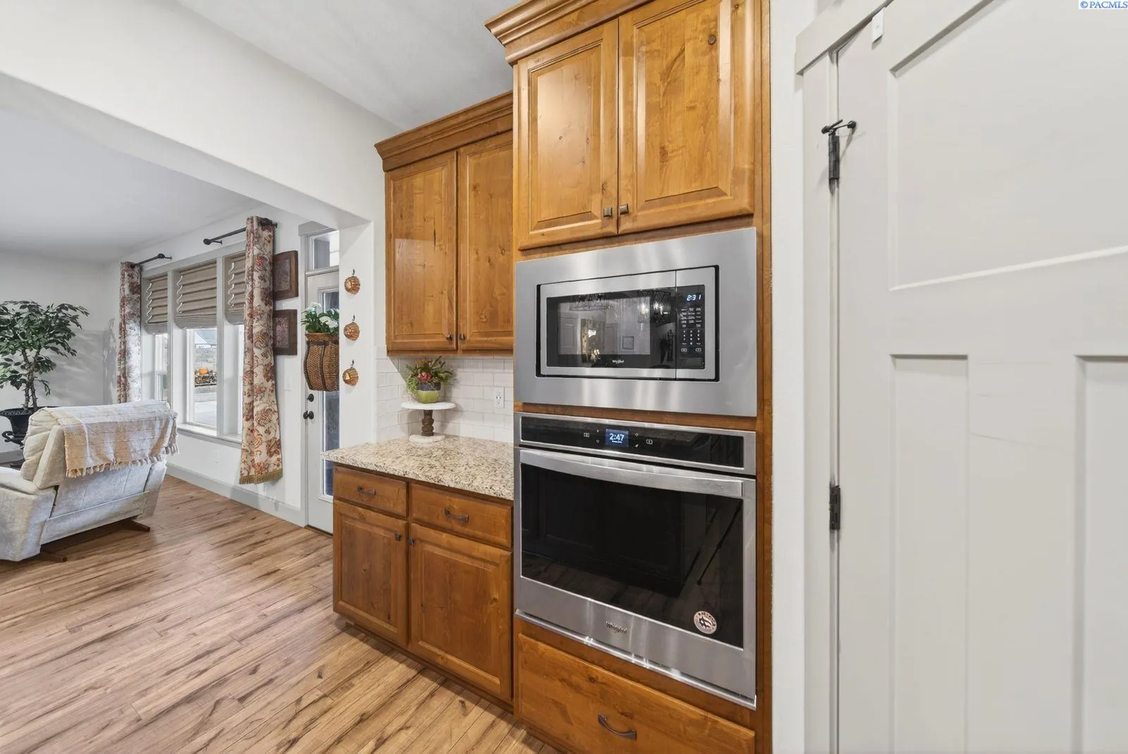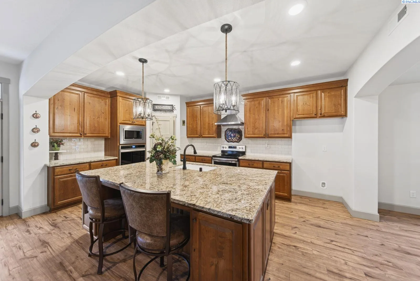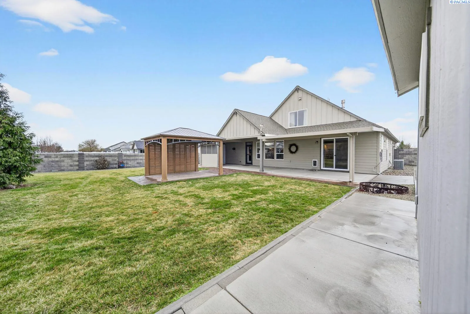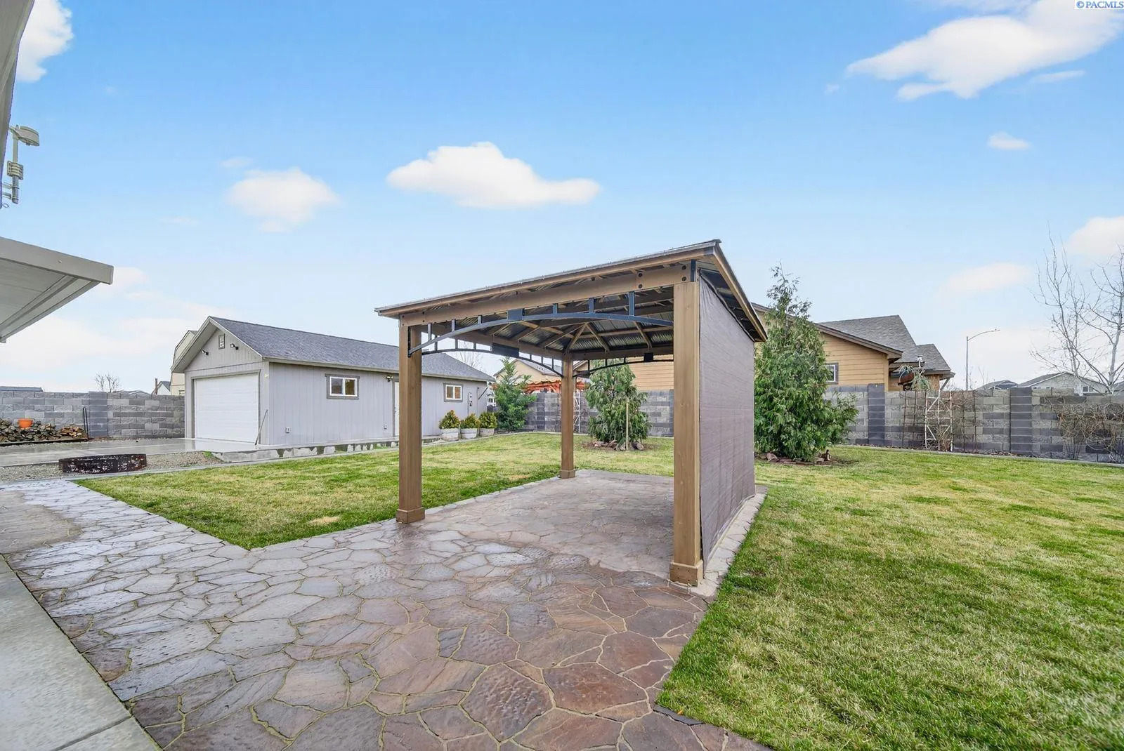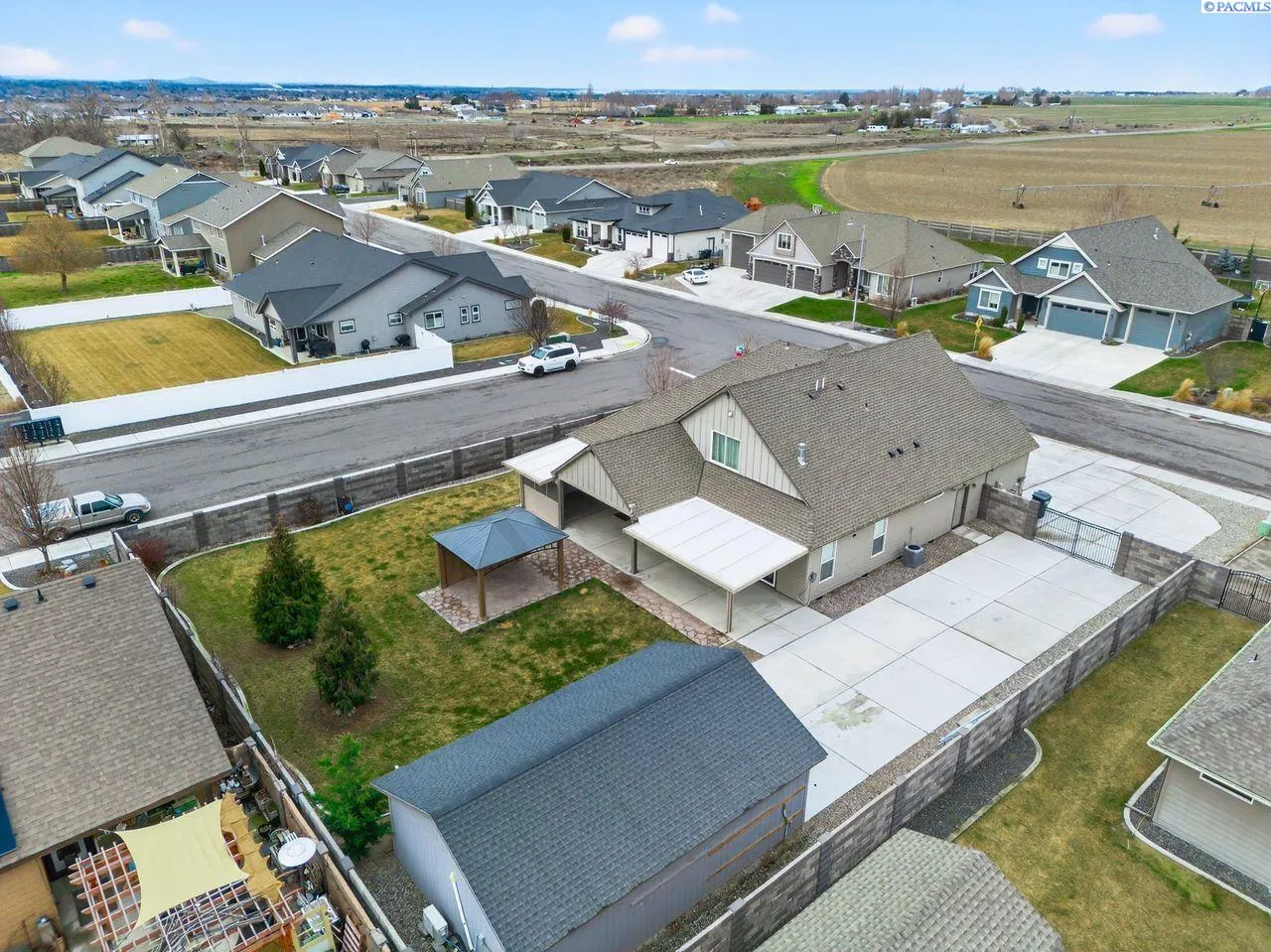 MLS# 290313 Stunning Pasco Home on a Spacious .34-Acre Lot!!Welcome to this sophisticated and beautifully designed home in Pasco! With just under 2,000 sq ft, this 4-bed, 3-bath property offers the perfect blend of style, comfort, and thoughtful functionality — all wrapped in full block fencing for privacy and peace of mind.Step through the grand front door into a welcoming entryway, where you’ll immediately find a versatile bedroom or office with an oversized closet! A convenient half bath is located in the entry hall, perfect for guests! The master suite is on the main floor, with double sinks in the L shaped vanity for lots of storage! A The laundry room offers upper and lower cabinetry and a folding table. Upstairs are two additional bedrooms — including one oversized room that can double as a bonus space — with a full bath between them.Outside, enjoy your perfect backyard retreat with a 20′ x 30′ shop, a full-length covered patio, a charming private nook, a gazebo, mature landscaping with curbing, and gas BBQ stub-out.Call your favorite realtor for a tour of this home today!