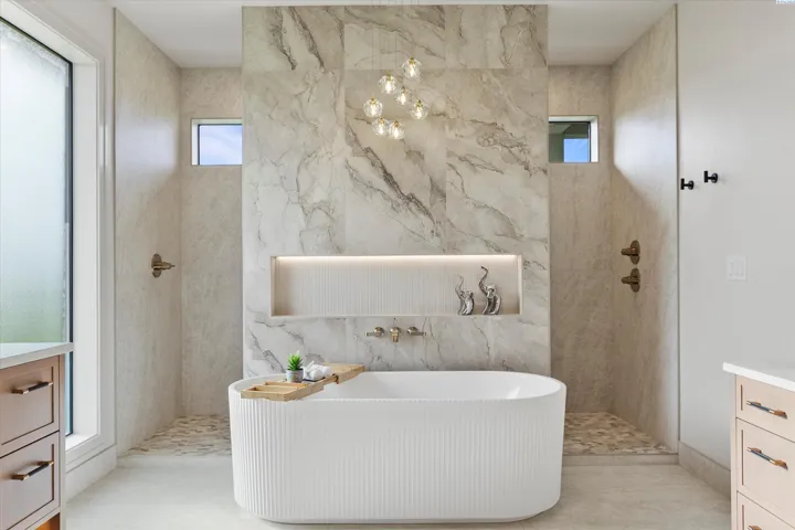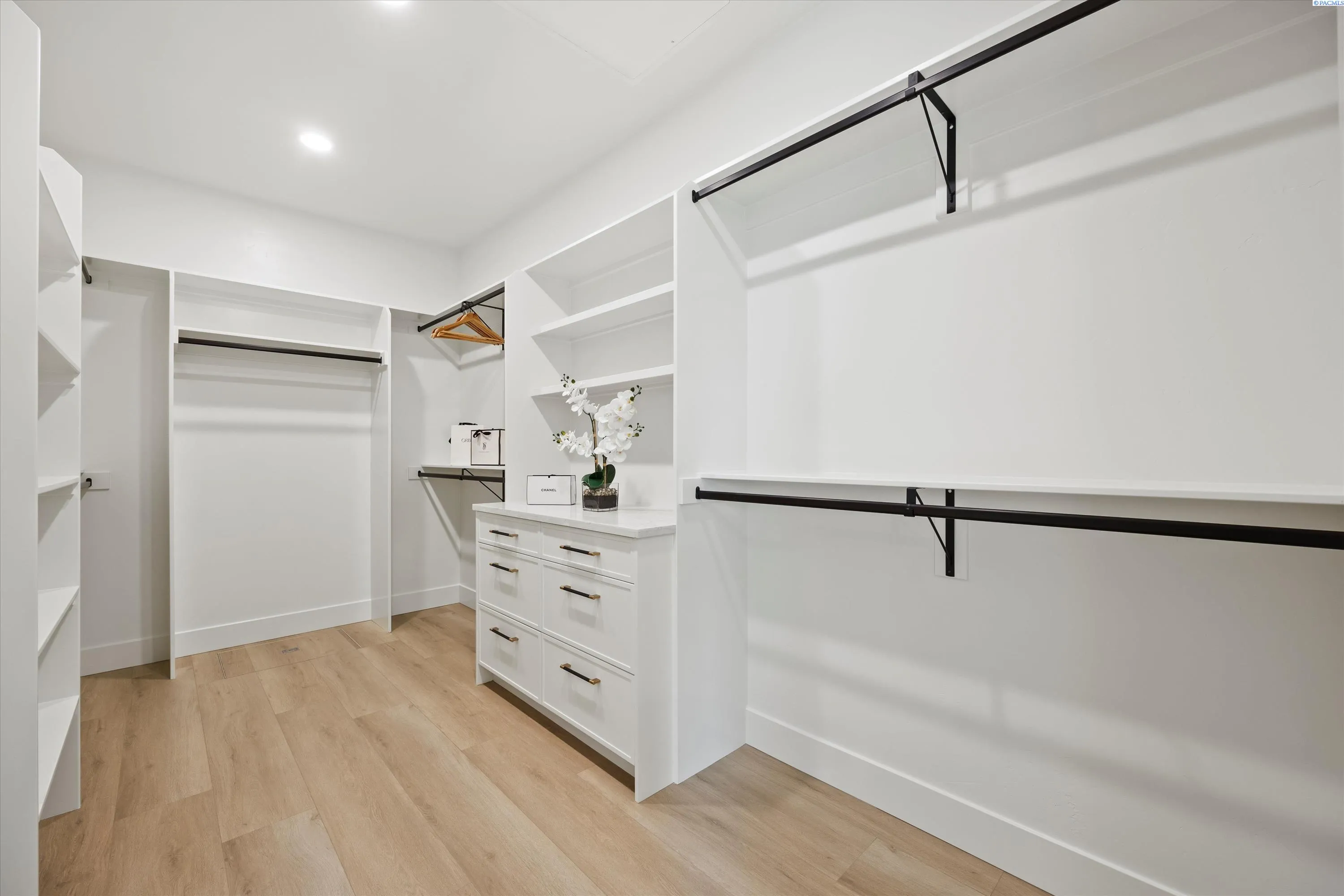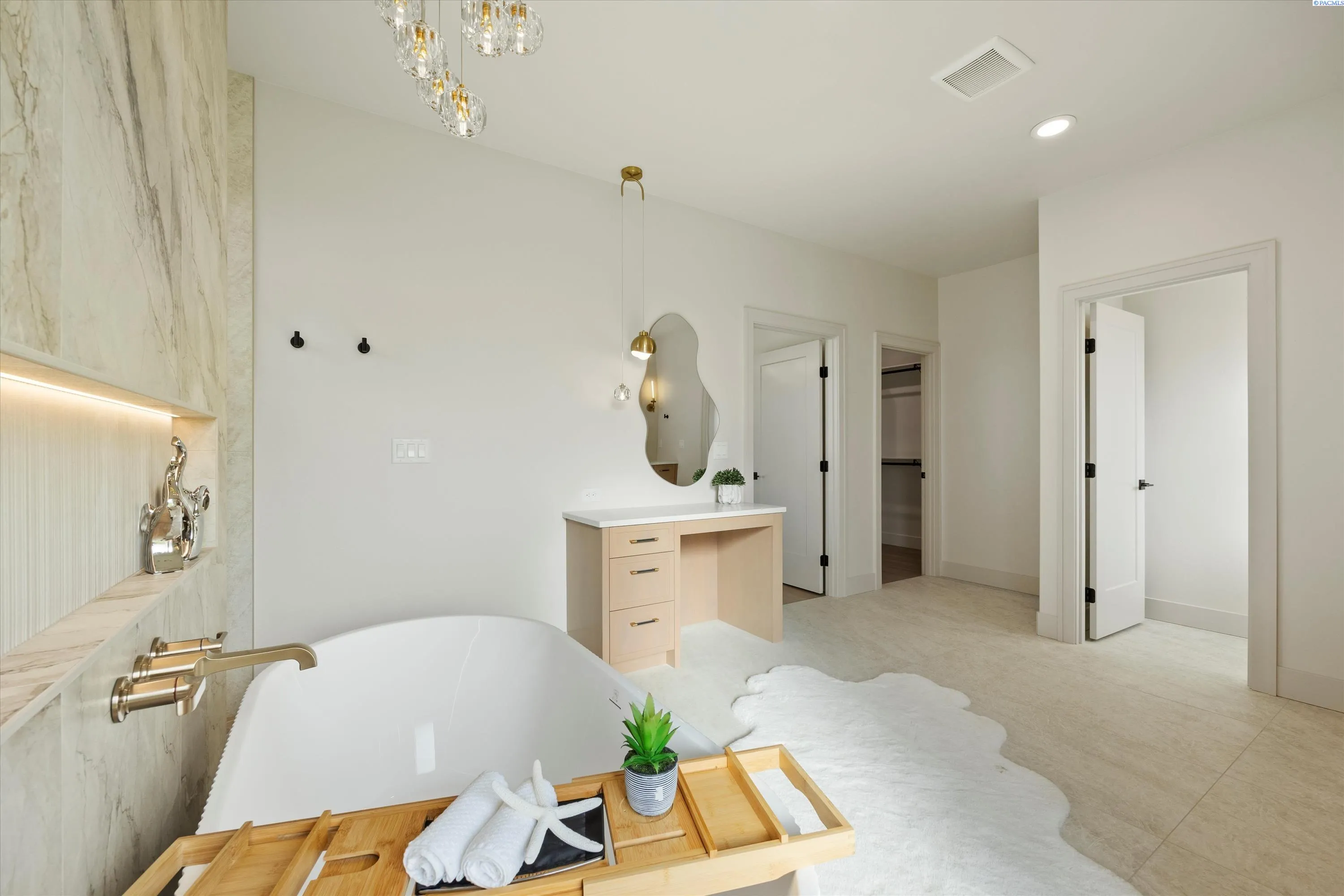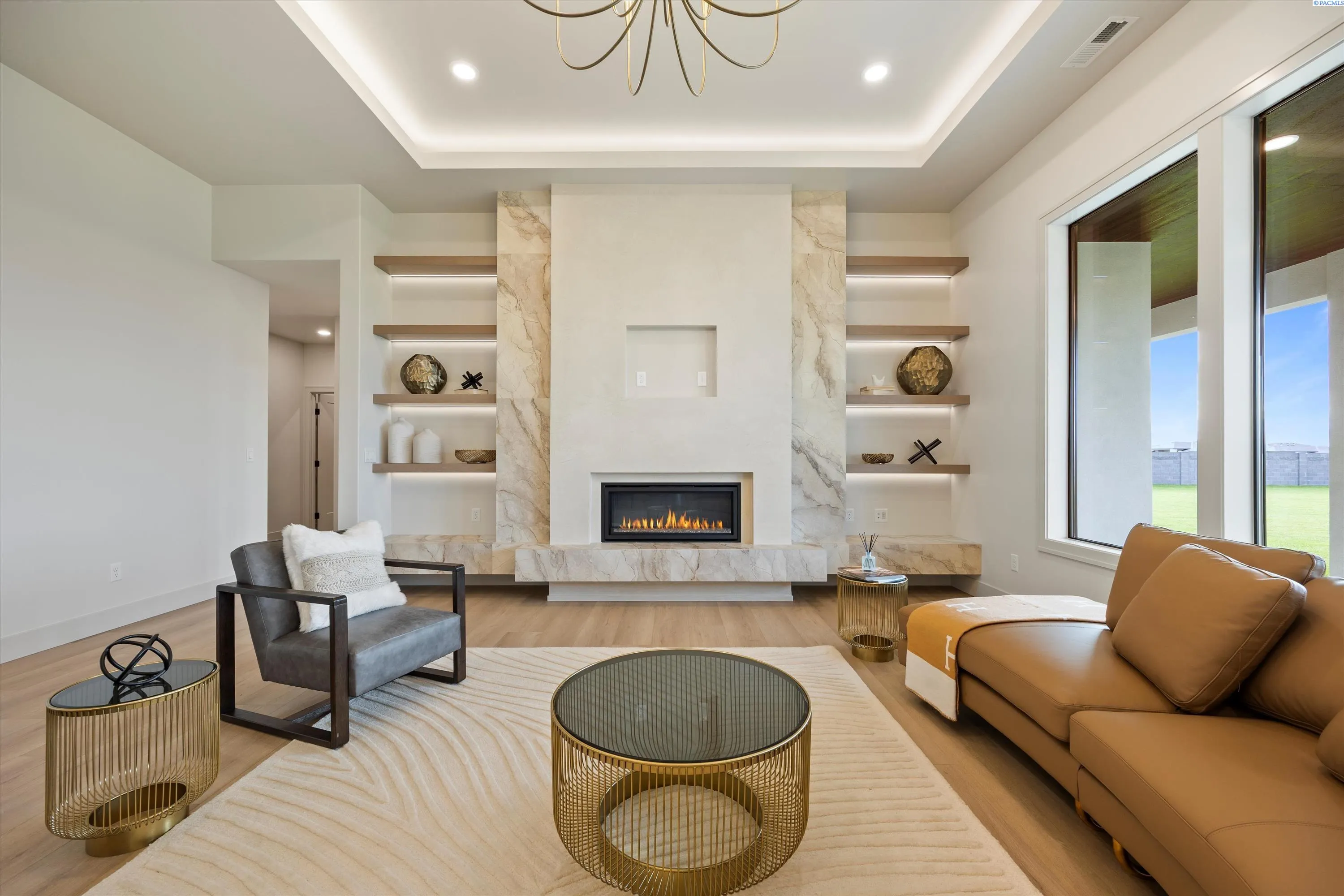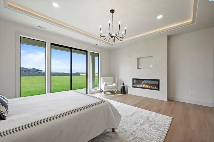 MLS# 290230 Introducing a Masterpiece of Modern Luxury by Signature Homes. Experience unmatched sophistication in this extraordinary 3,028 sq ft estate, perfectly positioned on a fully landscaped 1-acre lot. Thoughtfully designed and meticulously crafted, this 4-bedroom +office, 3.5-bath home sets a new standard for high-end living, blending architectural elegance with elevated comfort. Step inside and you’re met with scale, and refinement. The grand great room features 12-ft LED tray ceilings, a striking Venetian plaster and custom tile fireplace, and massive windows that flood the space with natural light. LED-underlit floating shelves flank the fireplace, creating a dramatic focal point for everyday living and entertaining. The chef’s kitchen is a true centerpiece, showcasing a waterfall-edge quartz island, matching quartz backsplash, top-tier appliances, a 5-ft commercial fridge, and a dedicated wine/coffee bar with wine cooler. Floor-to-ceiling cabinetry and a large pantry with built-ins complete this exceptional space. The luxury continues into the private quarters. The primary suite is a sanctuary with oversized windows, a slider to the covered patio, and its own Venetian-textured fireplace. The breathtaking ensuite features a massive wrap-around walk-through full tile shower, multiple showerheads, LED-backlit niches, a deep freestanding tub, dual sinks, a makeup vanity, and a beautifully designed walk-in closet. Down the hall, an LED-lit Venetian plaster accent wall adds a gallery-like touch. A junior suite with its own full bathroom offers ideal accommodations for guests or multigenerational living. Two additional bedrooms are generously sized and share access to the home’s elevated finishes. The guest bathroom reflects European inspiration with a floating toilet, custom floating vanity with stone sink, tile wall, and LED-backlit mirror and niche. Outdoor living is equally impressive. The expansive covered patio—accessible from both the primary suite and main living area—extends your living space for year-round relaxation and entertaining. The oversized 3-car garage includes an extra-deep, extra-tall bay perfect for large vehicles, storage, or recreational equipment. Every fixture, material, and finish has been hand-selected for style and impact. Built with exceptional craftsmanship and attention to detail, this Signature Homes property is more than a luxury home—it’s a statement.