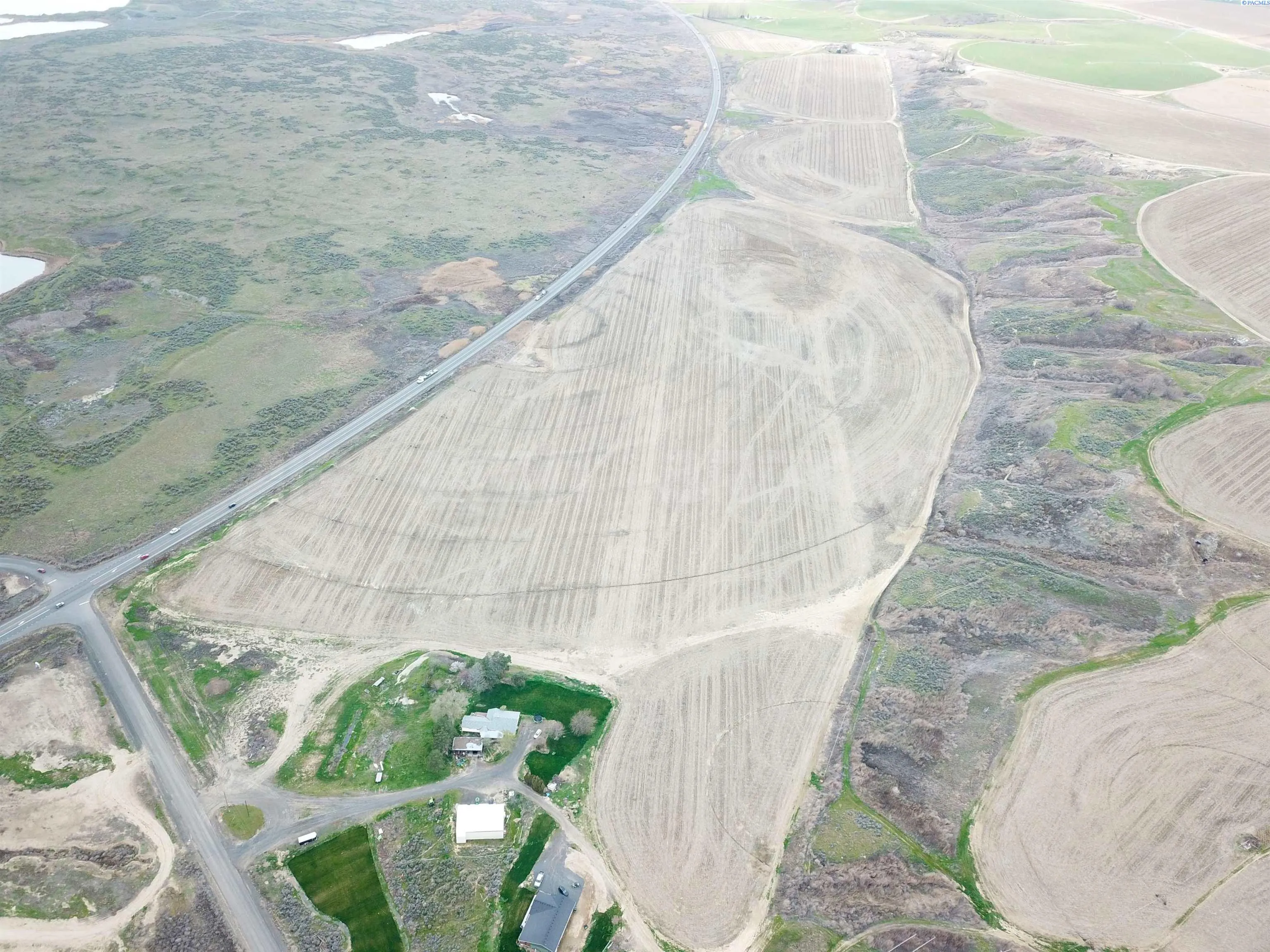MLS# 282943 Pivot irrigated farm overlooking the Scooteney Recreation area and the Potholes Wildlife Reserve; the farm fronts SR-17 in northern Franklin County. There are approximately 25 acres of non-crop land in this farm. with 145+/- acres irrigable. Current operator is only farming the land under the pivots and not the corners. Corners are plumbed for irrigation with risers in place. Irrigation is durable water from SCBID (a Bureau of Reclamation project). An irrigation agreement for this parcel to deliver water to the 2 residential parcels is currently being created. There is no separate turnout allowed by SCBID. There are no buildings on the property. There is access along Paradise Road for both the upper and lower portions of the farm. A property survey was completed in December 2023 to short plat the buildings off from the farm. Seller will consider separating the top 92 +/- acres from the lower half pivot. $1.5 million for the top and $700,000 for the lower acreage under the half pivot. Survey has been done, but not recorded.