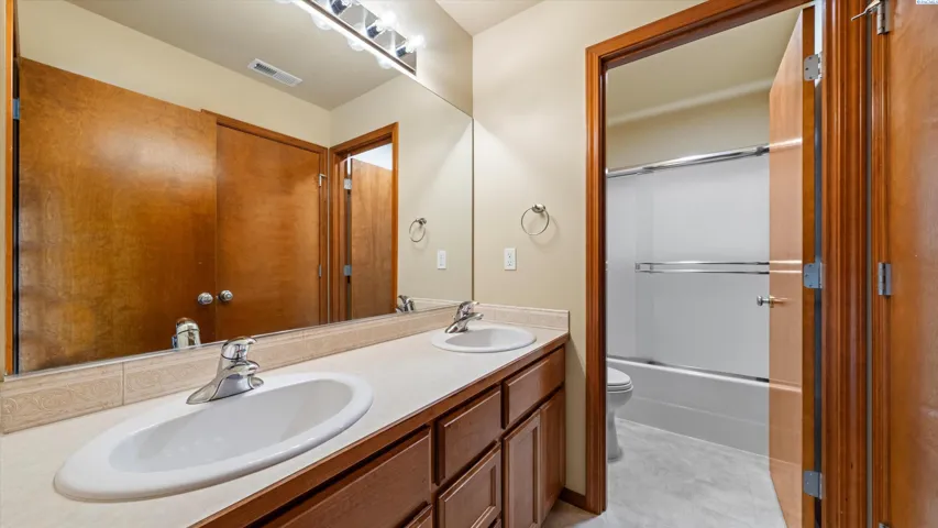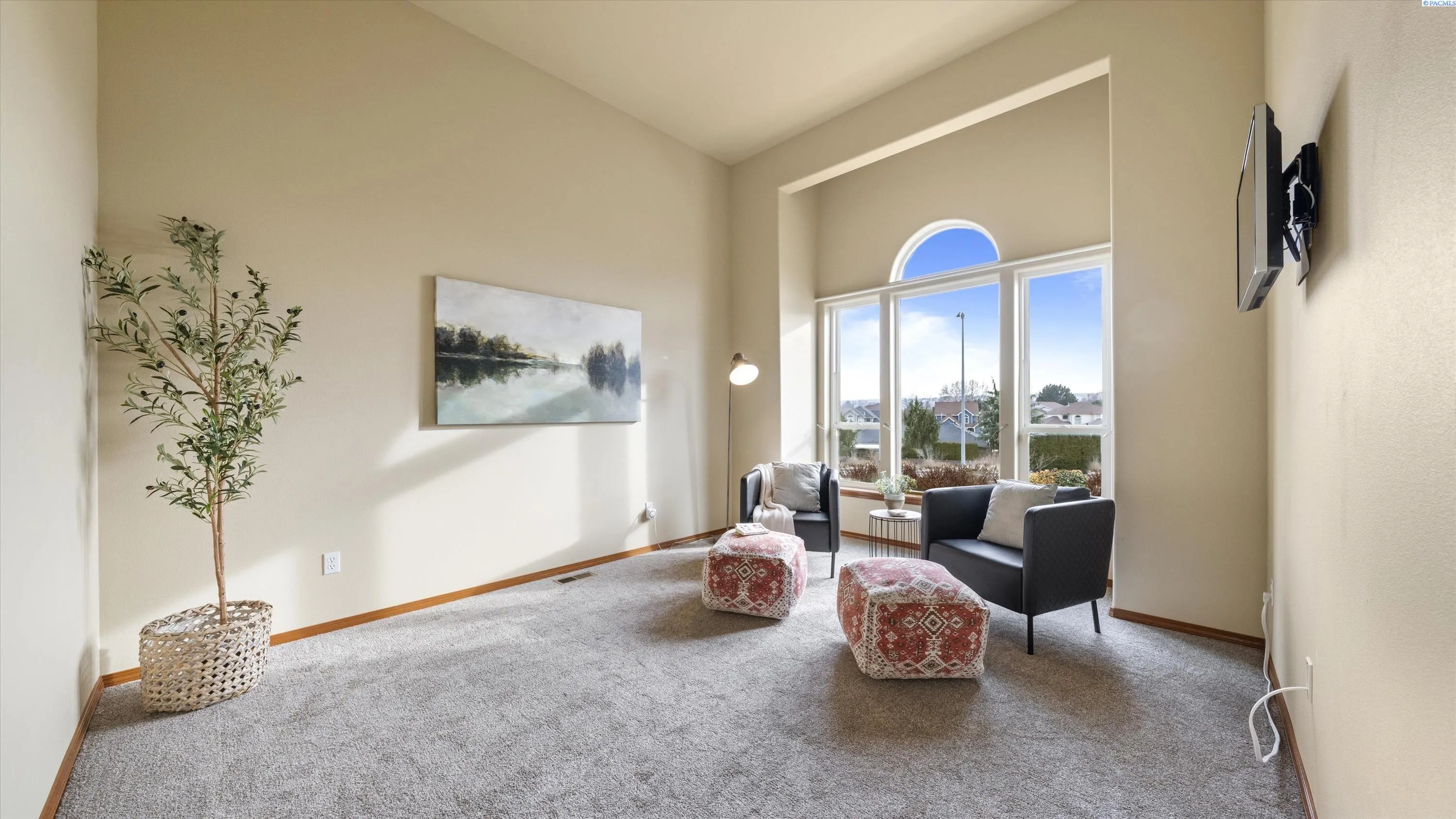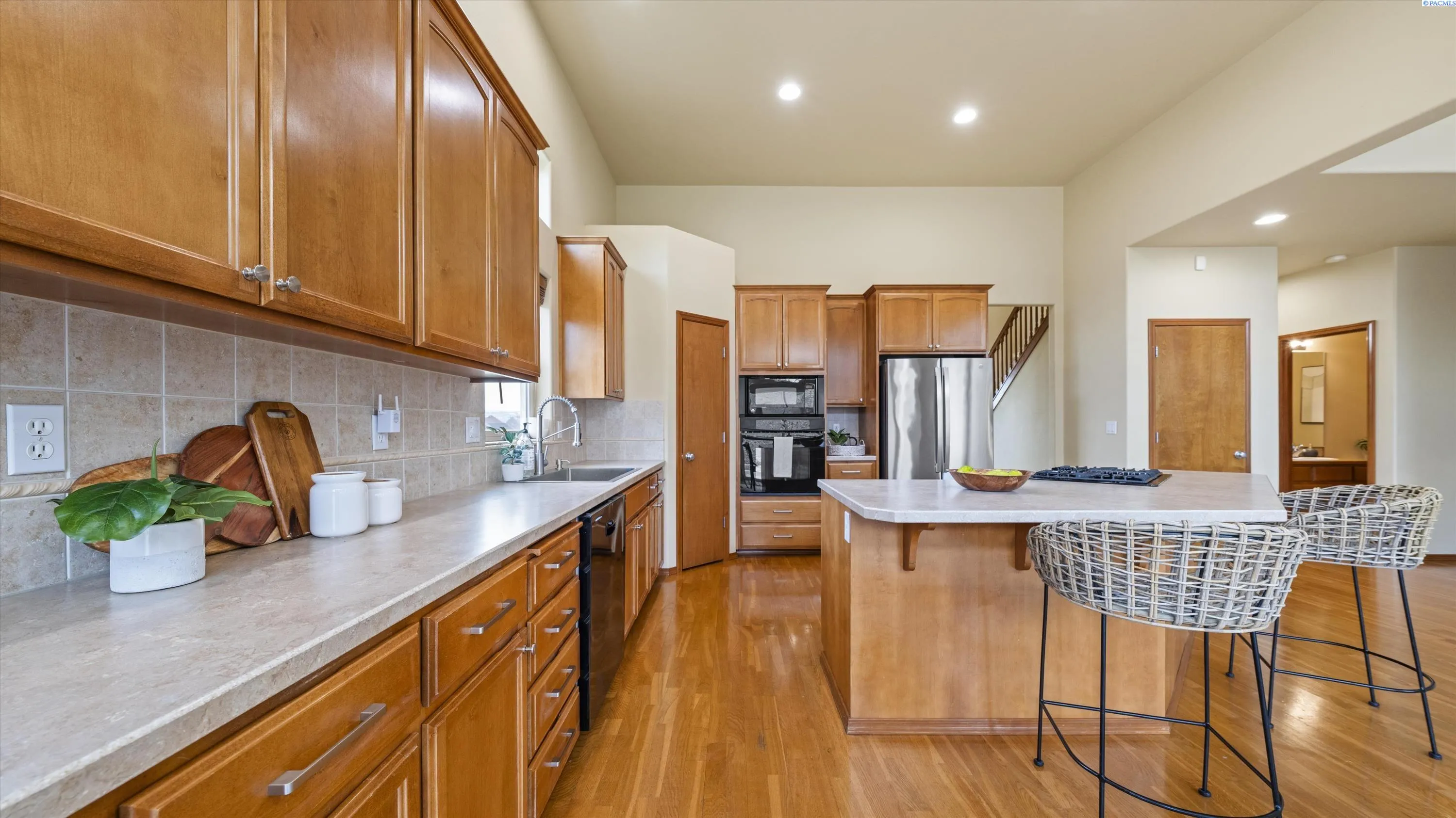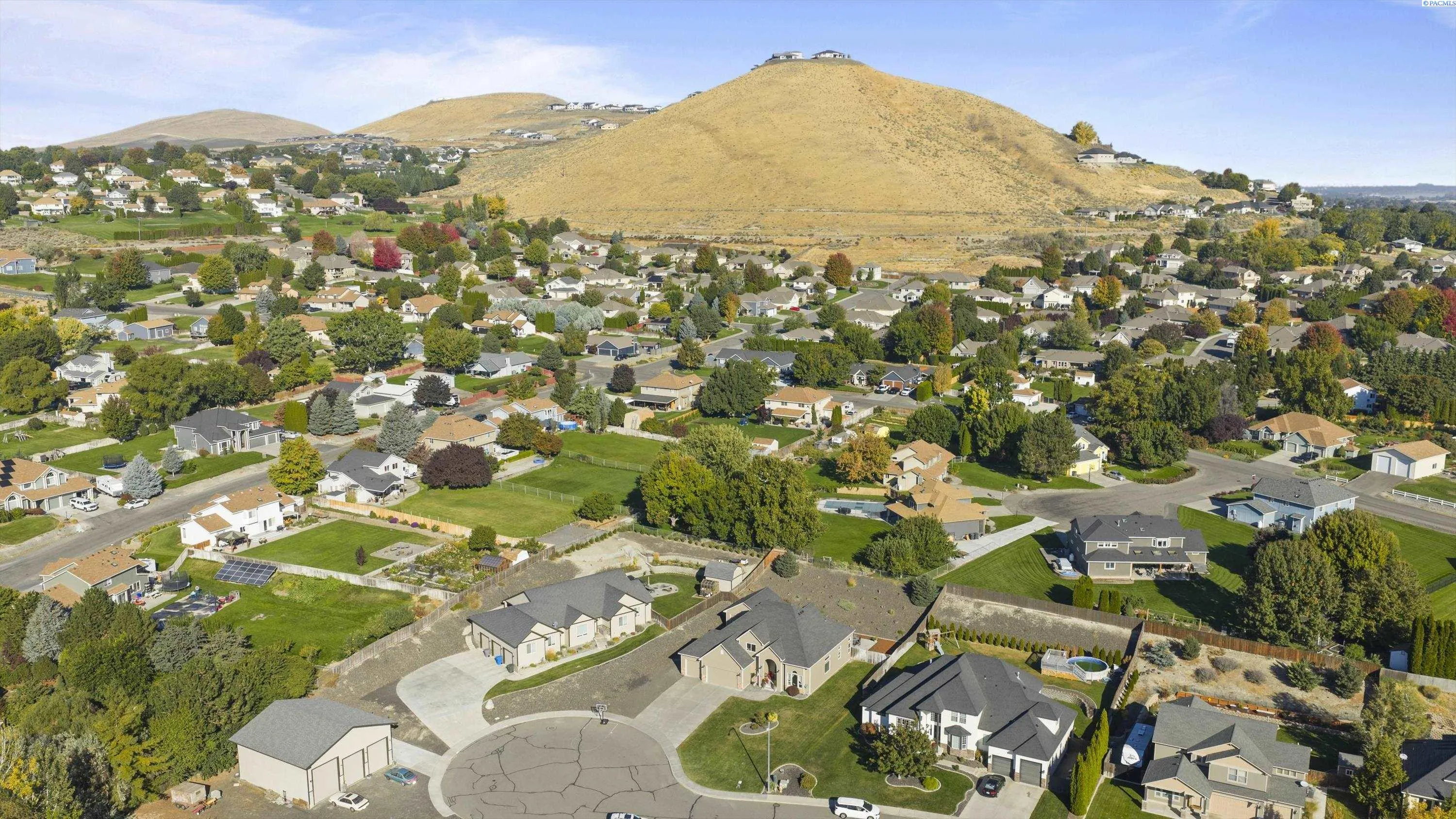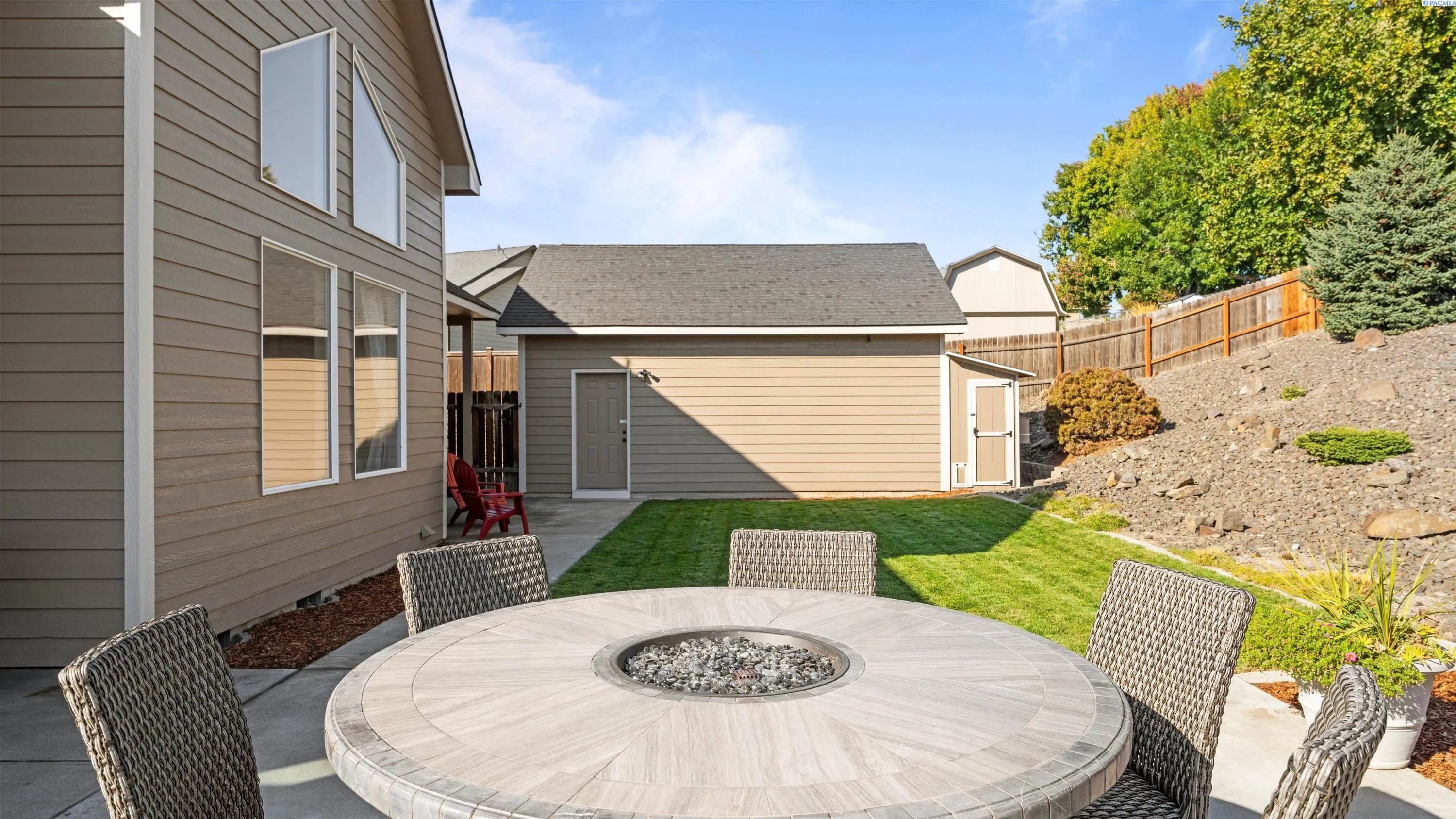 MLS# 290156 South Richland location, multi-suite layout, shop + garage capacity, and sunset views: a combination that’s hard to beat. Set on over a half-acre in Meadow Parke Estates, this nearly 2,900 sq ft home offers a rare blend of space and flexibility. The main level features a living room, a dedicated office with French doors, and a vaulted great room filled with natural light, anchored by a triple-sided fireplace connecting the kitchen and dining area. The kitchen is designed for gathering and hosting, featuring a large island with seating, generous cabinetry and pantry storage, a large stainless steel sink, and a gas cooktop. The main-floor primary suite includes an oversized walk-in closet with built in shelving and a spacious bathroom with a double vanity, soaking tub, separate shower, and private water closet. Upstairs adds versatility with a junior suite featuring its own ¾ bath, plus two additional bedrooms separated by a full bathroom. In total, the home offers 4 bedrooms, an office, 3.5 bathrooms, main-floor laundry, and two distinct living spaces – creating natural separation and modern household functionality. Outside, the property continues to impress with a fully finished attached 3-car garage with built in shelving, an extended driveway with RV parking (with RV sewer dump station and cable TV hookup). The driveway alongside the house leads to a temperature-controlled and fully insulated 20×24 shop with 220V power, multiple 110V circuits, and cable TV hookup. The fenced and landscaped backyard includes two patios for outdoor living, a 6×8 greenhouse-ready platform with water and electrical service, and adjacent irrigated garden soil proven to grow vegetables. A finished 4×8 shed with electrical service is tucked behind the shop, and it is conversion-ready to host backyard chickens as a coop (which are allowed!). Sunset and territorial views can be enjoyed from multiple vantage points, and recent updates include brand new exterior paint and new carpet. Conveniently located near outdoor recreation, schools, grocery stores, restaurants, and I-82 commuter access, homes offering this level of care, square footage, flexibility, and shop + garage + parking capacity in South Richland are rare. A must-see, schedule your private tour today!