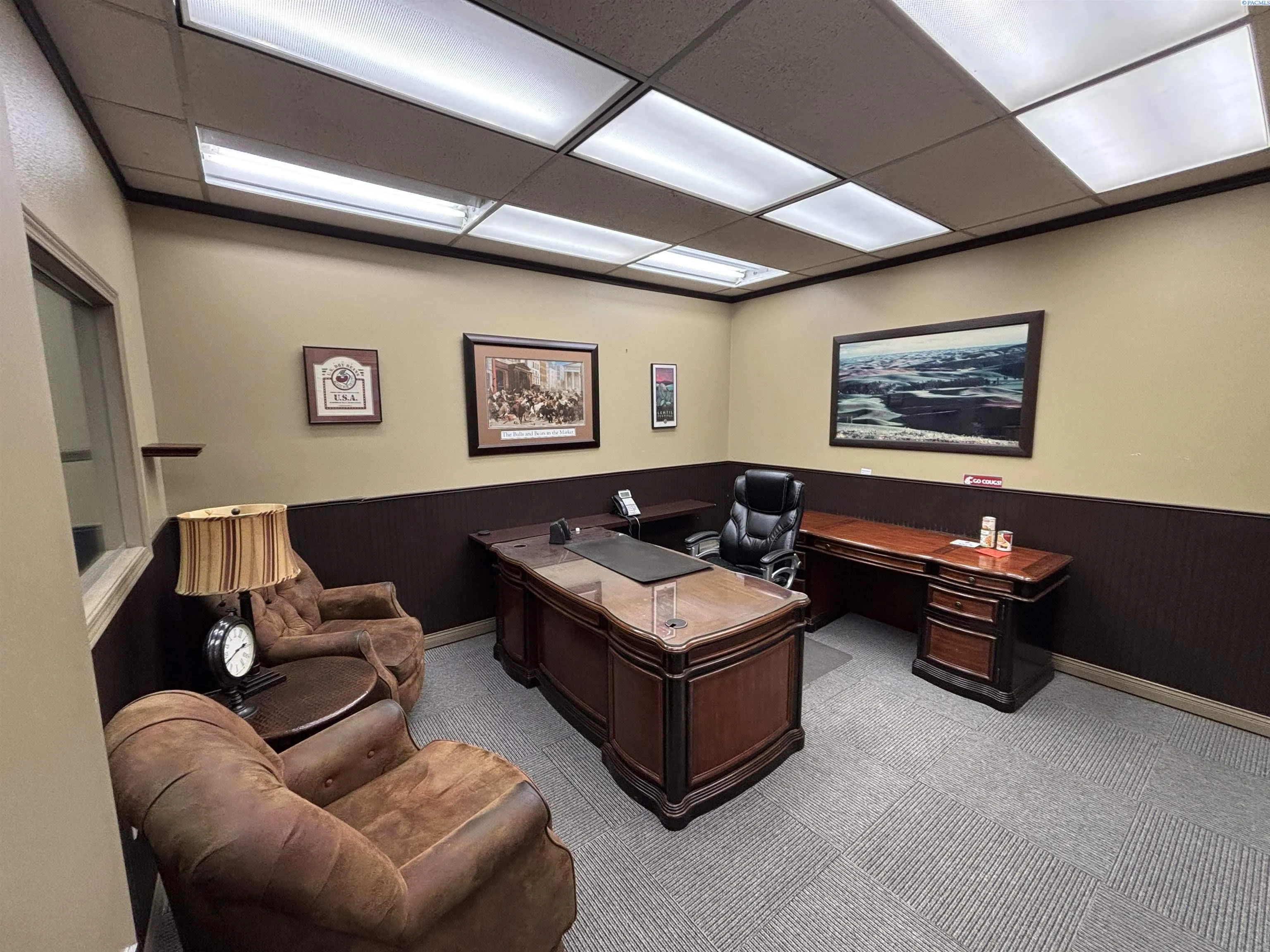 MLS# 290001 Available for lease, this commercial office building at 155 SE Kamiaken Street offers a flexible and well-designed layout suited for a variety of professional uses. The space features 10-foot ceilings, multiple private offices, a conference room, and open work areas that support both focused work and collaboration.Additional features include two restrooms, dedicated storage areas, and an open reception area designed to capture customer flow upon entry. The layout may allow for the space to be divided into two separate suites, providing flexibility for owner-users or multiple tenants.The property also includes upscale finishes such as tile flooring and well-appointed bathrooms, on-site parking, and a convenient location close to restaurants and other services. This space offers a functional yet refined office environment in a well-connected area of Pullman.
