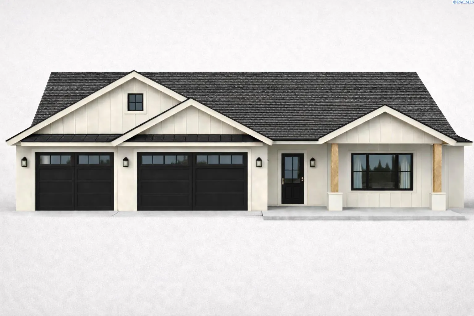 MLS# 289964 Under construction with an estimated completion date of April 15, 2026! This brand new single story home sits on 5 private acres in Benton City and offers an incredible setting with panoramic views of the Columbia Basin. The scenic driveway winds through a small cherry orchard and opens up to a thoughtfully designed 2,043 sq. ft. floor plan with 3 bedrooms, 2 bathrooms, and a 3 car garage. There’s still time for buyers to pick many of the finishes. Inside, the home features an open layout with a spacious kitchen, large island, and big windows that bring in natural light and showcase the stunning views. The living room includes a cozy fireplace, and the covered front porch and large covered back patio extend the living space outdoors. The private master suite includes an attached bathroom with double sinks, a walk in shower, free standing tub, and a generous walk in closet. Additional highlights include a mudroom/laundry room, high quality materials throughout, and solar panels for energy efficiency. Outside is set up for country living with full 5th wheel hookups, irrigation water, a private well, large pasture area, and plenty of room for a shop and/or pool. The property borders 230 acres of state land, ideal for horse riding, dirt biking, and privacy. A great location with a strong community feel and lots of room to make the property fit your needs. (Listing photos show potential exterior finishes a buyer could choose.)