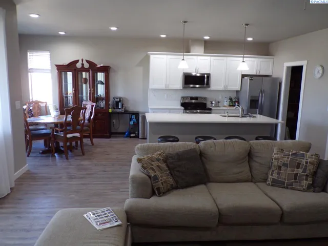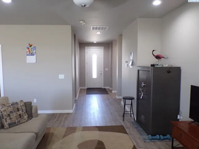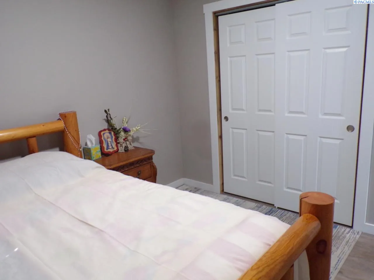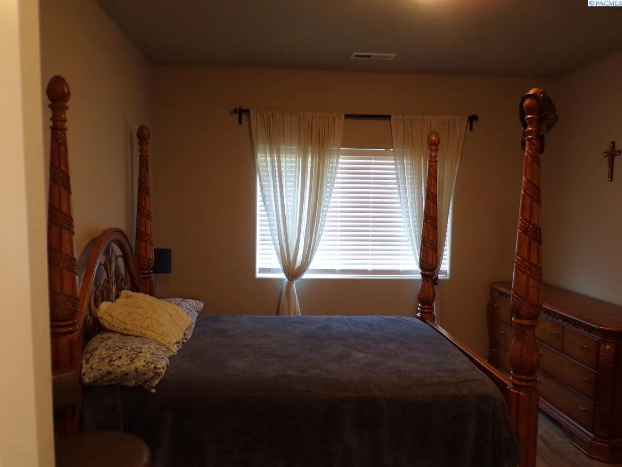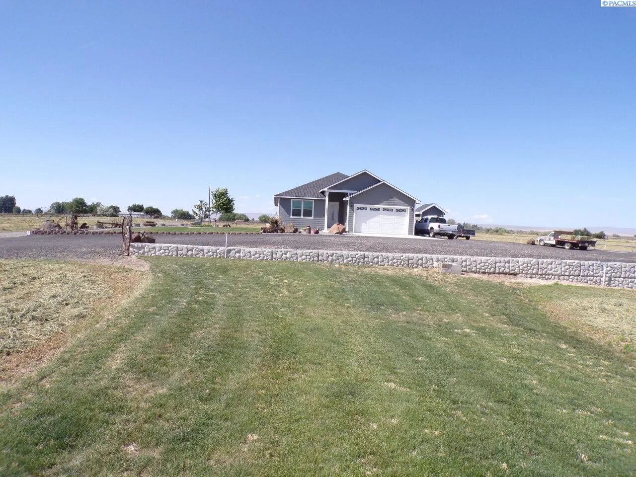MLS# 285229 Experience serene country living on a 5.73-acre parcel of irrigated farmland currently cultivating hay. This inviting property features a well-appointed 3-bedroom, 2-bathroom home built in 2021, offering 1485 square feet of spacious living area. A spacious open-concept kitchen with a large island offers ample counter space for meal preparation. The master bedroom includes his-and-hers closets, with the latter being a walk-in. The master bath features a dual-sink vanity and a large mirror, accommodating multiple users during busy mornings. The large living room adjacent to the kitchen leads out to a spacious covered patio with a northern view and plenty of afternoon shade for those relaxing evenings outside soaking in the fresh country air or BBQing some tasty steaks. The spare bedrooms are spacious enough for large beds, and the main bathroom is bright and cheerful. There is a two-car garage to protect vehicles from the sun and a large area of crushed rock next to the cement driveway outside the garage, providing ample parking space for an RV, boat, toy haulers, extra vehicles, and other items. The residence is set back from the road, ensuring peaceful and serene days and evenings. The driveway entering the property has an electric sliding security gate to keep this country charmer private. A storage building contains a water filter and softener to improve water quality. The home is on a well, with all 5.73 acres irrigated by SVID water. There is even a cool pond of swiftly moving fresh water for any large animals you wish to let roam on this fully fenced lot. Bring your horses or other large animals and fence off some pastures or just enjoy growing hay or other crops on your irrigated land. Call the listing agent for your private showing today! Lockbox is on Wagon wheel on corner of green sod yard as you turn in on the front of the home.