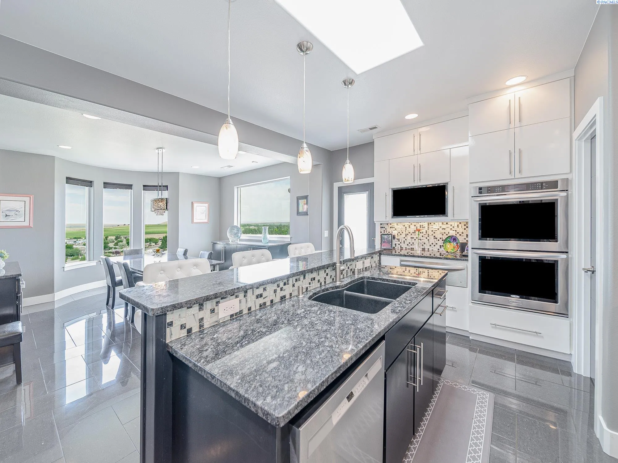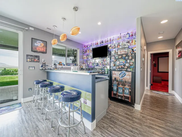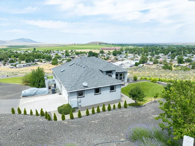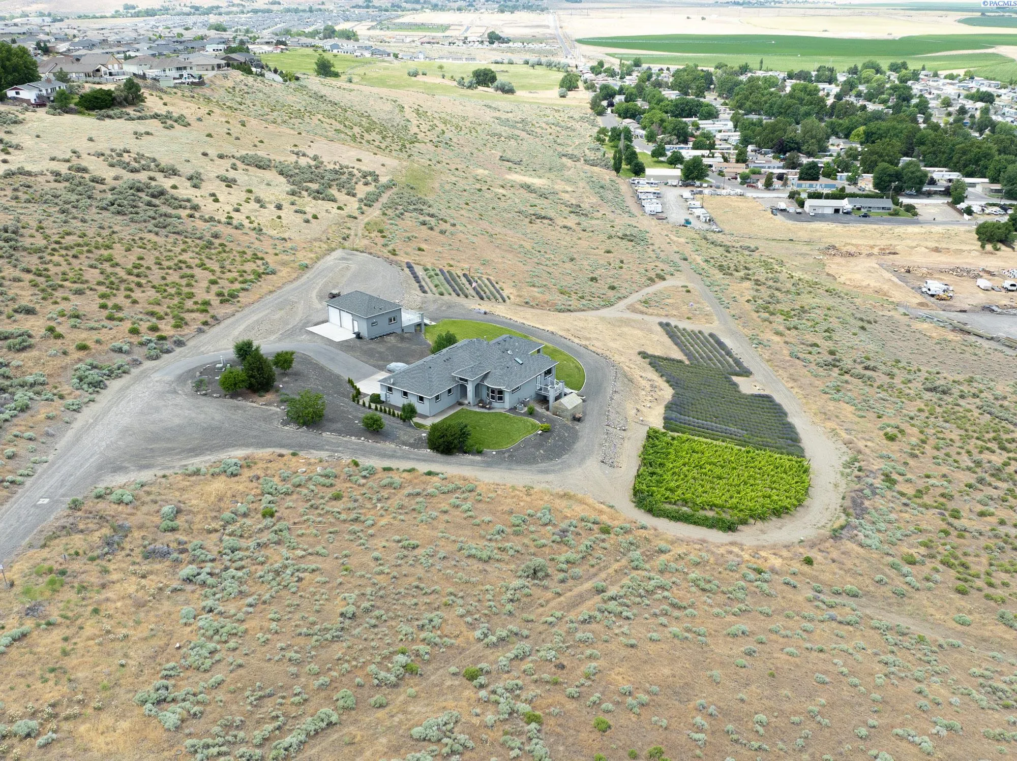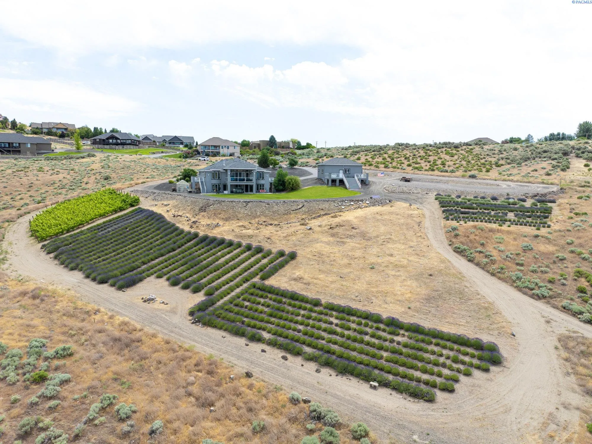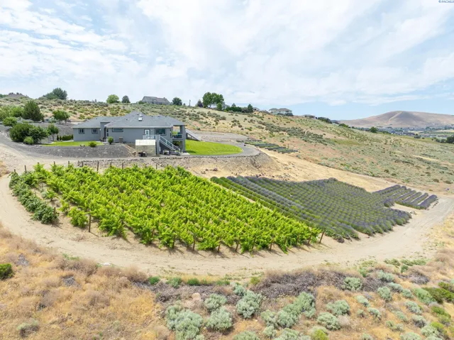MLS# 285159 Perched on 2.5 scenic acres in the sought-after Willamette Heights neighborhood of West Richland, this exceptional custom-built home offers a one-of-a-kind living experience surrounded by a flourishing lavender farm and private vineyard of 250 Syrah vines. With breathtaking panoramic views of the Tri-Cities and Rattlesnake Mountain, every inch of this 3,450 sq ft residence is designed to impress. The thoughtfully designed 1-story layout with a fully finished walk-out basement blends modern elegance with rural tranquility. Step inside to a vaulted entryway, tile floors, and a light-filled living space anchored by a stylish fireplace and expansive windows that frame stunning natural vistas. The dining area provides an ideal setting for both everyday meals and entertaining guests while showcasing the ever-changing landscape. The kitchen is a chef’s dream featuring sleek white cabinetry, a full tile backsplash, granite countertops, a large island with breakfast bar, wine bar with beverage fridge, pantry, and stainless steel appliances including a gas range with hood. Offering 4 bedrooms and 3 luxurious bathrooms, the primary suite is a private retreat complete with a fireplace, custom lighting, spa-like bath, dual vanity, tiled walk-in shower, and a spacious custom closet. The lower level offers a large rec room with a full bar, ample space for entertaining, walk-out access to a patio, and a fourth bedroom currently outfitted as a home theater. Outdoor living is just as spectacular, with expansive decks and patios offering front-row seats to unforgettable sunsets. In addition to the attached garage, a 24×36 detached shop includes a bathroom, full commercial kitchen, and large deck — perfect for projects, events, classes and running your own agri-business. A previously established business presents the perfect opportunity using 13 various types of lavender plants. This property combines luxury living with productive land and income potential — a rare opportunity to own a serene estate in the heart of wine country. This property has a business incorporated called Sunkissed Lavender Farms which originated in 2017. This is an established built in business opportunity! Seek further info from LA on what all the business entails.