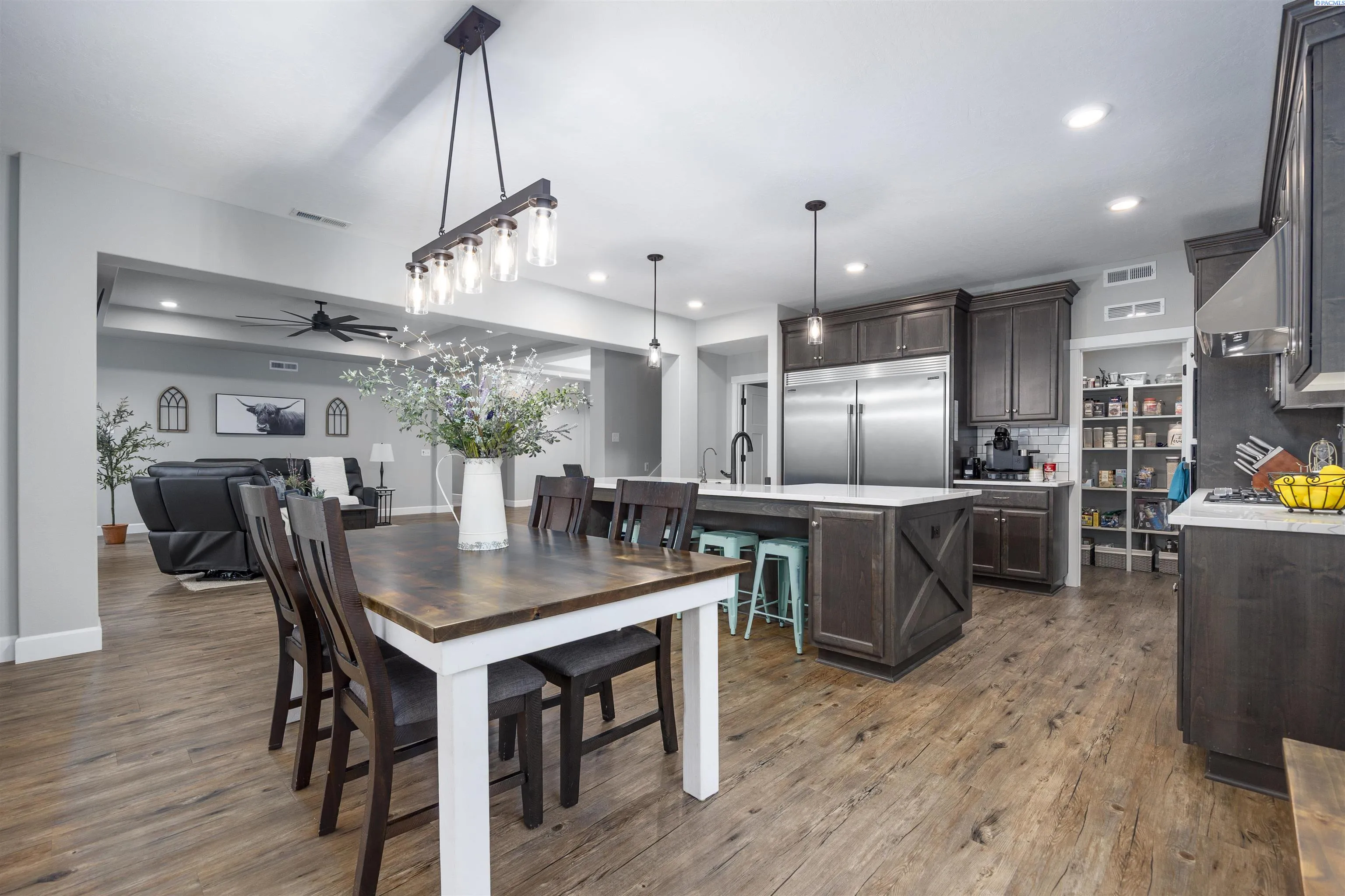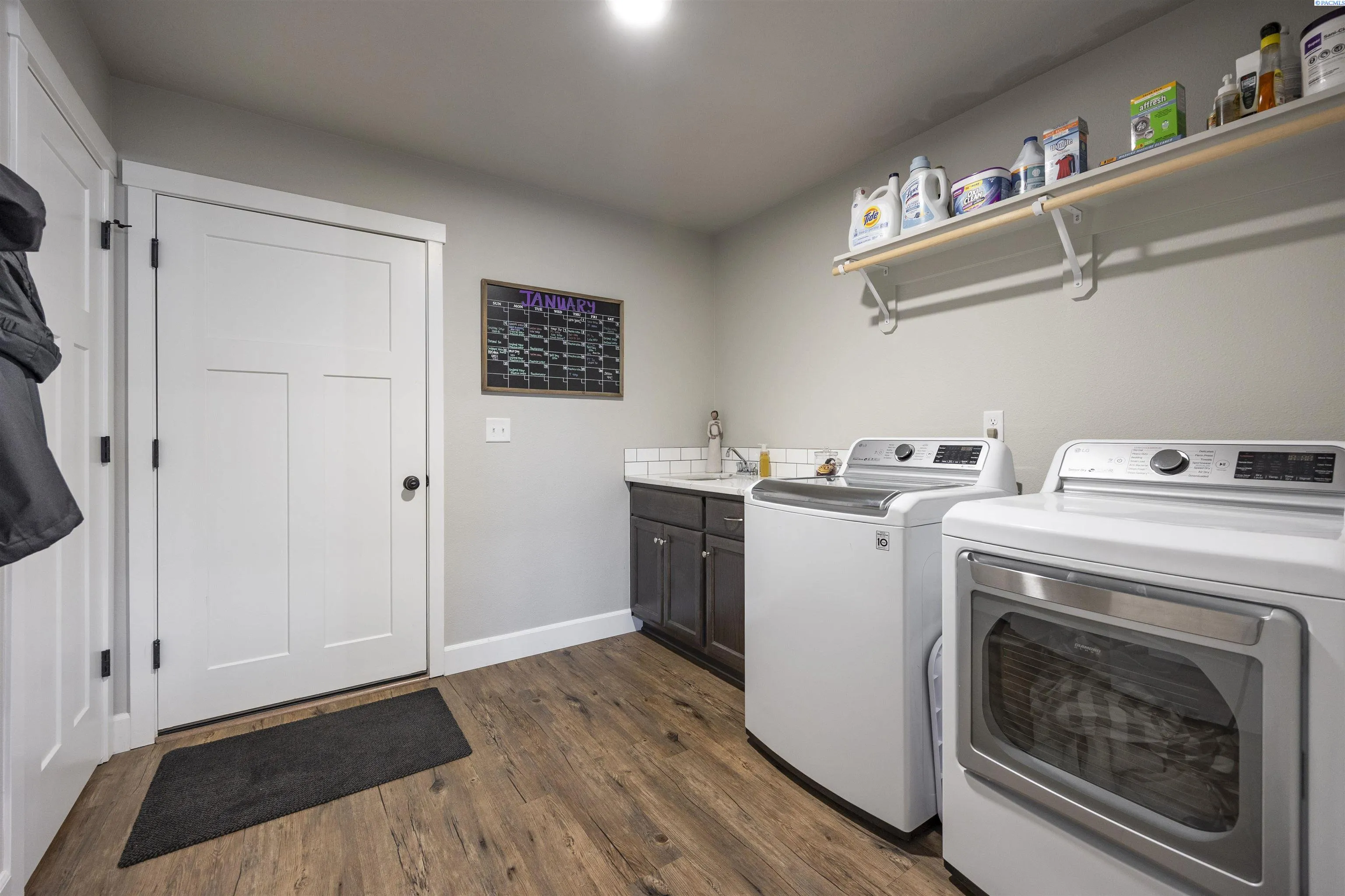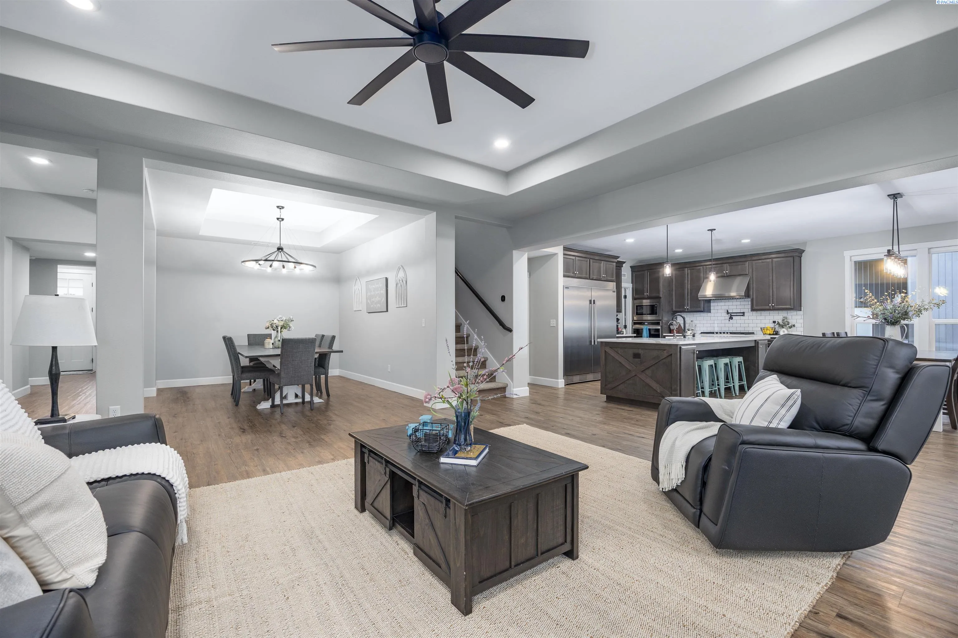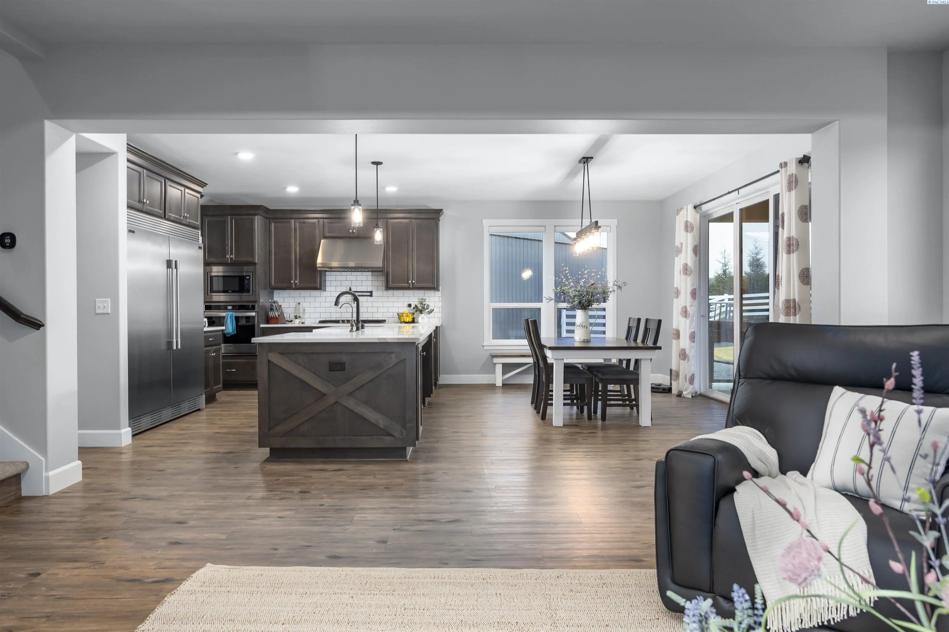 MLS# 289887 Nestled on 2.54 acres in Kennewick, this exceptional property features a stunning 2020-built home paired with a truly spectacular shop, offering the perfect blend of luxury, space, and country living—just minutes from town. The home boasts fresh exterior paint completed last year and offers 3,132 sq. ft. of beautifully designed living space with 4 bedrooms, 3 bathrooms, and a spacious bonus room, providing plenty of room for everyone.Step inside to an inviting great room anchored by a striking stone fireplace, complemented by a tray ceiling and expansive windows that flood the space with natural light. The chef’s kitchen is a dream, featuring quartz countertops, a beautiful tile backsplash, a large island, custom wood cabinetry, a gas cooktop with pot filler, a large pantry, and all appliances included. Additional upgrades include a soft water system and reverse osmosis filtration at the kitchen sink. Enjoy both formal and casual dining areas, perfect for everyday living and entertaining alike.The laundry room is well-appointed with excellent storage, a utility sink, and a washer and dryer included. Retreat to the primary suite, which features an expansive custom closet and a spa-like ensuite bath with a barn-style door, heated floors throughout (including the tiled shower), dual-sink vanity, and a relaxing soaking tub. The versatile bonus room can easily serve as a family room, rec room, additional bedroom, or flex space to suit your needs.Outside, the property delivers a peaceful, country feel with serene views, fencing, irrigation, and ample space for horses or other animals. The impressive 40×48 shop is a standout feature, complete with a 12′ lean-to, 125-amp service, R-19 insulation, OSB sheeting, and three doors (8’, 12×10, and a 12×14 RV door), making it ideal for projects, equipment, or RV storage. Located in desirable SW Kennewick, this property offers the tranquility of rural living with convenient access to schools, highway connections, and all the best Tri-Cities amenities. A rare opportunity you won’t want to miss!