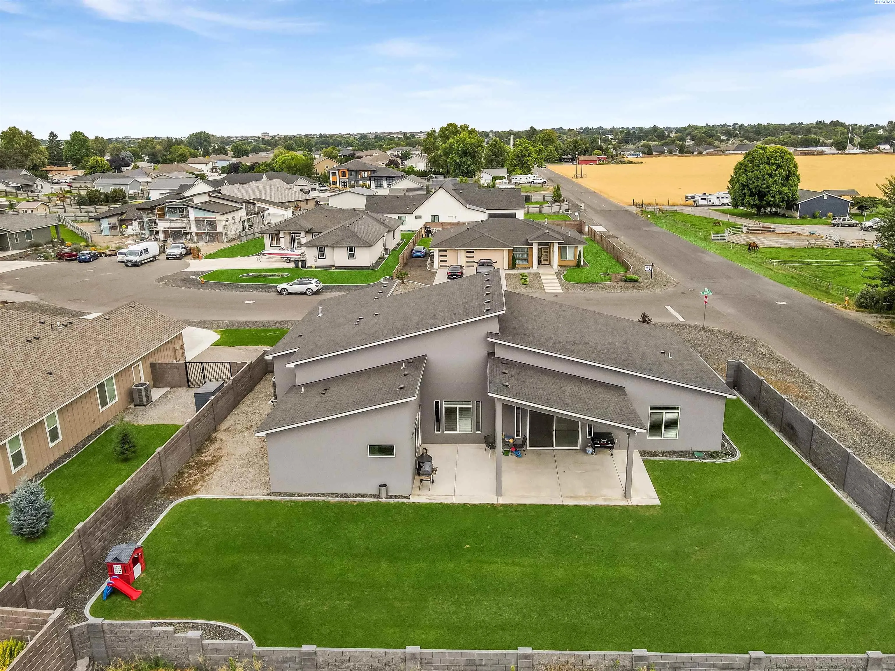 MLS# 289879 Welcome to 5202 W Henry Court in Pasco—an exceptional single-story custom home built in 2023, nestled on a spacious 0.33-acre corner cul-de-sac lot. With approximately 2,549 square feet of beautifully designed living space, this home features soaring 10-foot ceilings, an open great room with an elegant electric fireplace, and a stunning gourmet kitchen complete with a massive quartz island, walk-in pantry, pot filler, and under-cabinet toe-kick lighting. The split-bedroom layout offers privacy and functionality, including two guest bedrooms with a shared full bath, a den or office space, and a luxurious primary suite with dual vanities, a walk-in tile shower with body jets, a freestanding soaking tub, and a spacious walk-in closet. A dedicated laundry and mudroom with a sink adds everyday convenience.This home was thoughtfully crafted for both entertaining and comfortable daily living, with high-end finishes, designer lighting, and hard-surface flooring in main areas. Outside, enjoy a large covered patio perfect for summer evenings, as well as ample parking and storage in the oversized 4-car garage that includes an RV bay. Located in a quiet, newer subdivision with easy access to local amenities and the Columbia River, this home combines style, space, and practicality in one move-in-ready package.