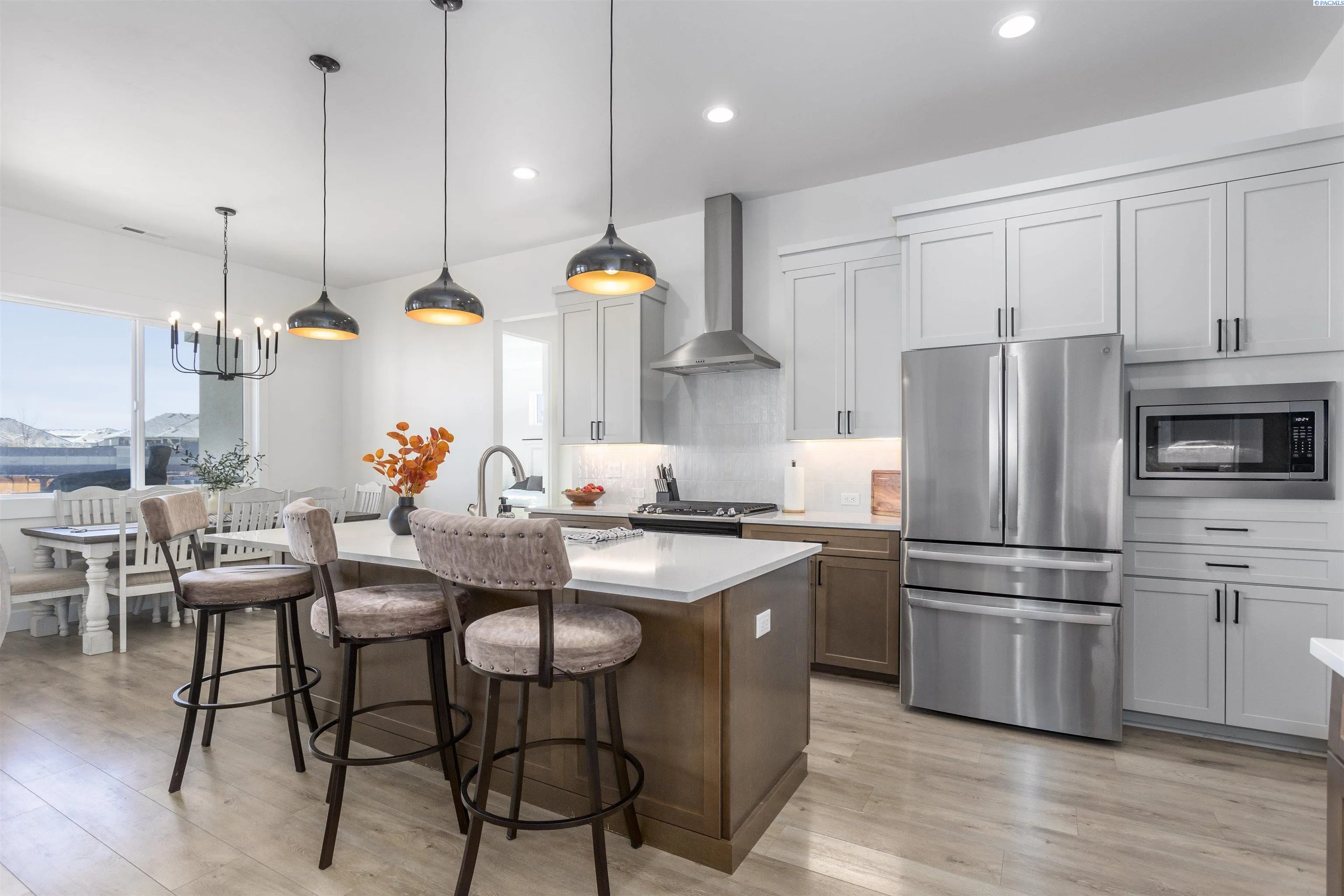 MLS# 289877 Nestled in the beautiful South Kennewick neighborhood of Sage Crest, this 2023-built, single-level home is ideally located near schools, parks, shopping, and everything you need for an active lifestyle. The home offers 2,148 sq. ft. of thoughtfully designed living space with 4 bedrooms and 2.5 bathrooms. Step inside to an open and airy great room filled with natural light, featuring laminate wood flooring, detailed ceilings, expansive windows, and a cozy gas fireplace that creates a warm, inviting atmosphere. The chef-inspired kitchen is the heart of the home, showcasing quartz countertops, a stylish tile backsplash, a large island, abundant cabinetry, and an oversized pantry—perfect for entertaining and daily living alike. The adjacent dining area provides a wonderful space for both casual meals and special gatherings. The primary suite is a relaxing retreat, offering a spacious closet and a spa-like ensuite bath with dual vanities, a soaking tub, and an oversized tiled walk-in shower. Three additional bedrooms offer versatility for guests, a home office, or hobbies. Outside, enjoy a generous .30-acre lot designed for outdoor living, complete with block fencing, a covered patio, and plenty of room to play, garden, or unwind. The 3-car garage provides excellent storage and space for projects or recreational gear. Ideally located near Sage Crest Elementary and less than a mile from Southridge High School, this home also offers quick access to shopping, dining, parks, sports facilities, golf, medical services, and the freeway. This move-in-ready home truly has it all—modern design, functional space, and an unbeatable location.