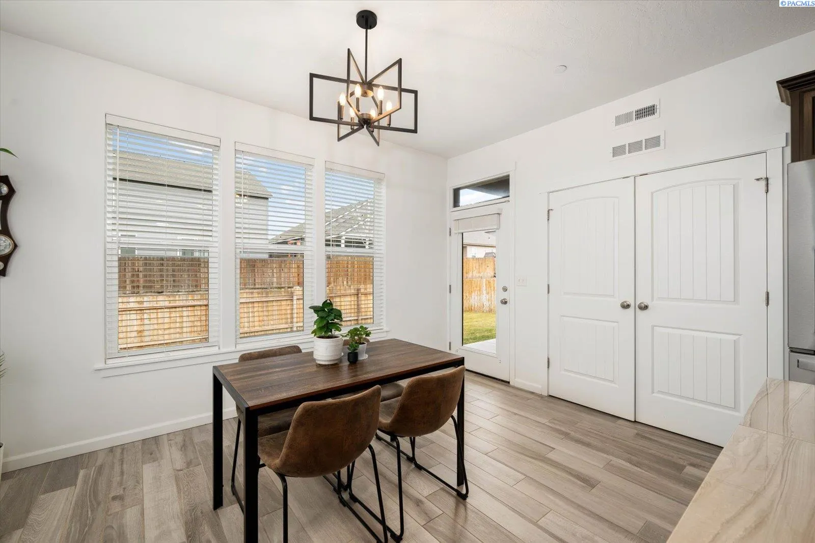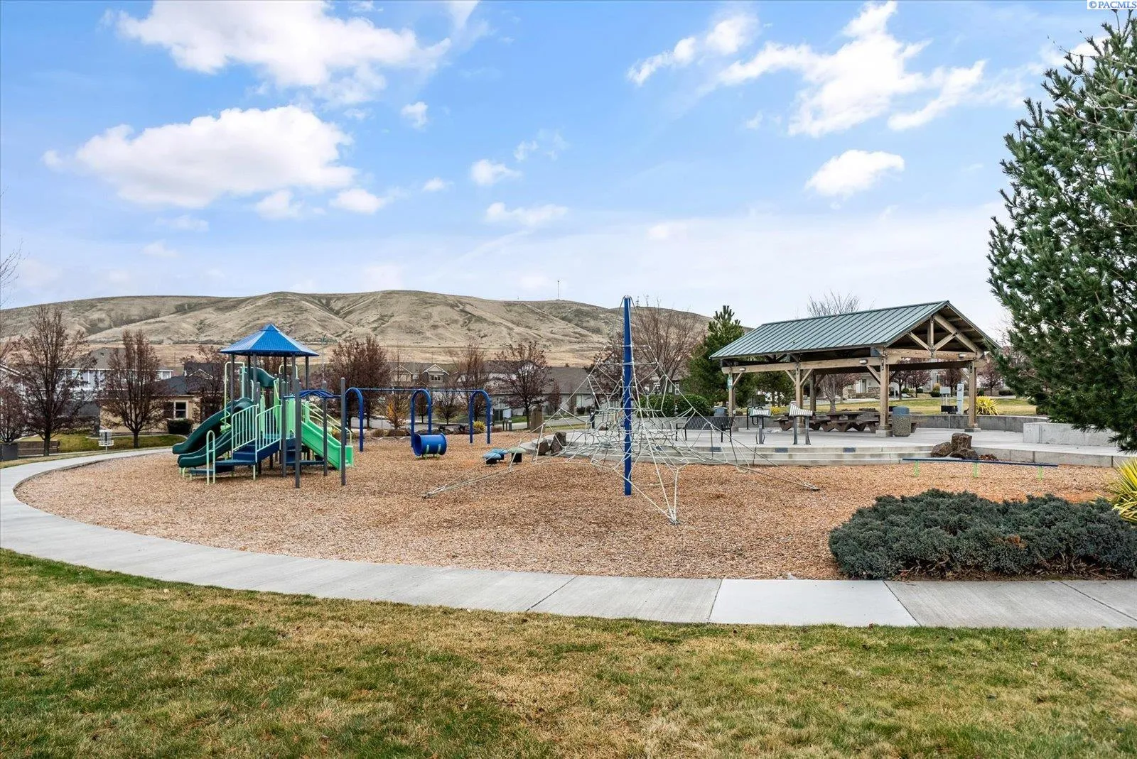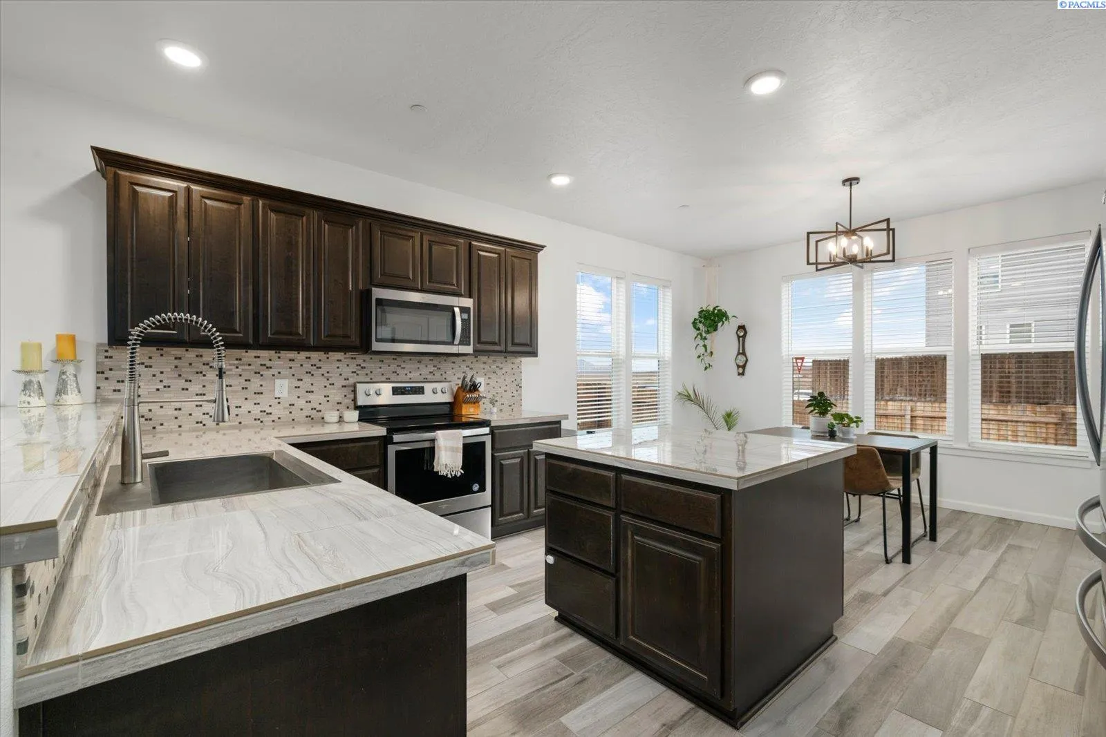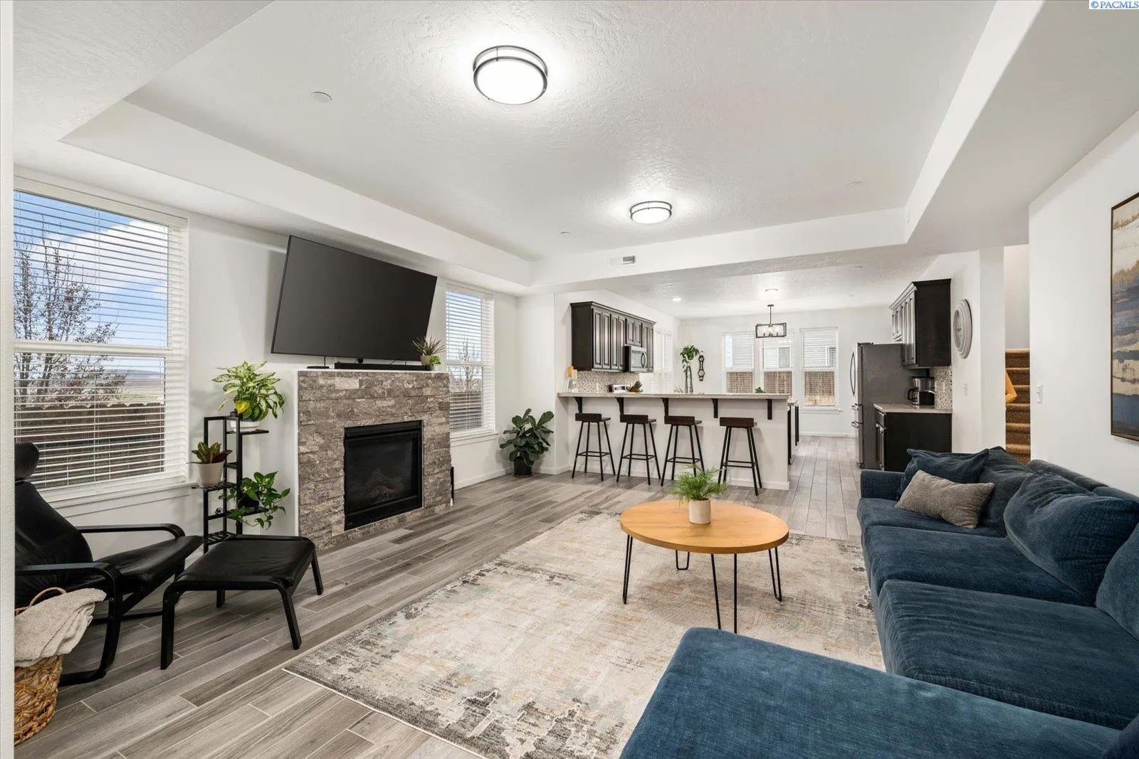 MLS# 289705 Located in Badger Mountain South, this well-maintained 2018 home offers a flexible layout, scenic views, and a peaceful corner-lot setting with quick access to parks and commuting routes. Thoughtfully designed with four bedrooms and three bathrooms, the home includes an oversized bedroom upstairs that works beautifully as a bonus living space, media room or home office. It is configured so it could be divided into two bedrooms making this a 5 bedroom home. The main level features a spacious living room with a gas firelplace, along with a kitchen offering an island, breakfast bar and a dedicated dining area. The primary suite is conveniently located on the main floor and includes a soaking tub, separate shower, a large walk-in closet, and a private laundry setup. Upstairs you’ll find two additional bedrooms, a full bathroom, and a large bonus room/4th bedroom wired for surround sound. There is a second laundry area upstairs for added ease. With living spaces on both levels the layout provides room to spread out while still feeling connected. Enjoy evenings on the covered back patio, taking in sunset views of Candy Mountain and Rattlesnake Ridge. Close to neighborhood parks, the Country Mercantile, and Goose Ridge Winery, this home blends scenic surroundings with everyday convenience.