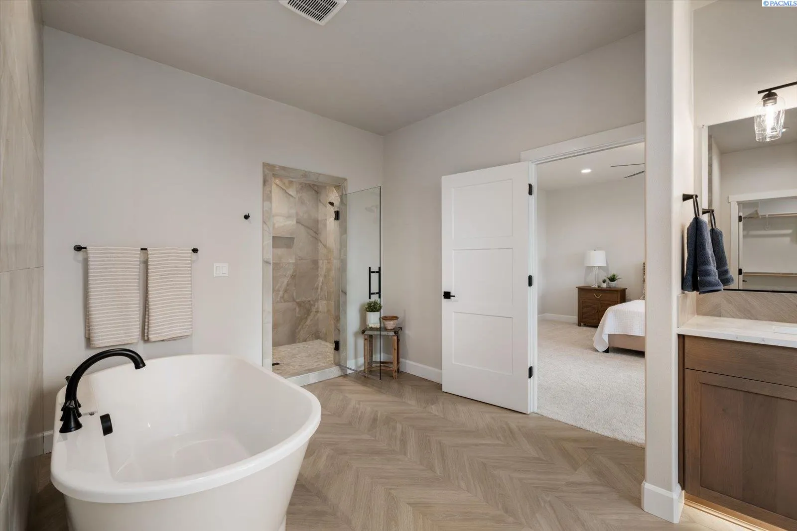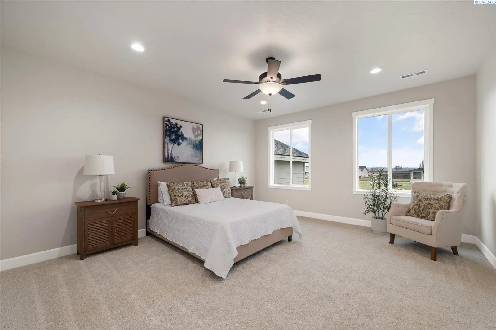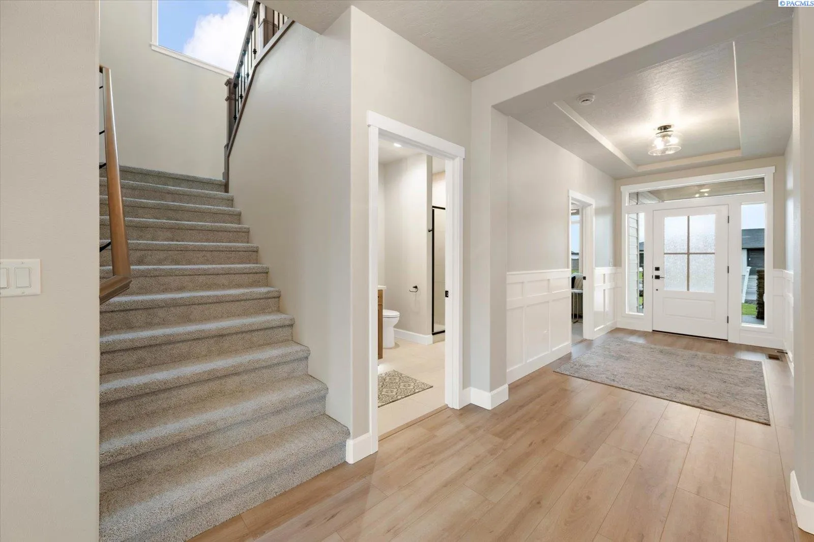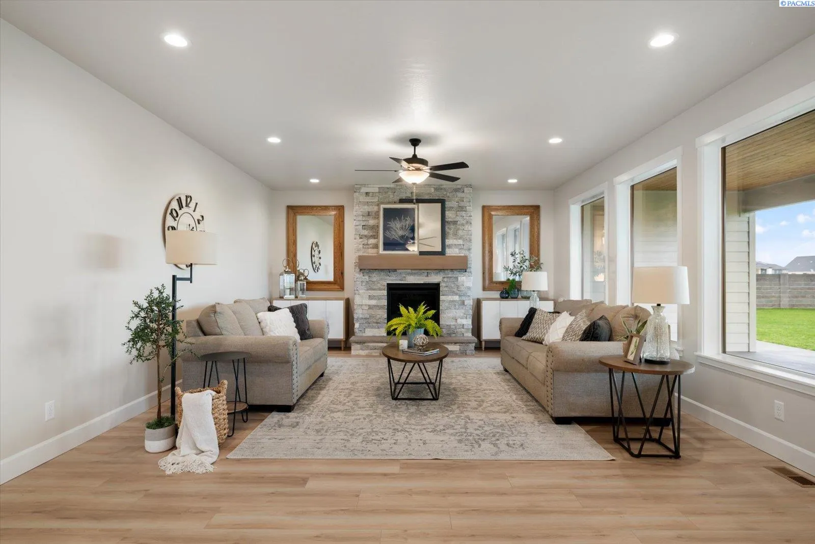 MLS# 289613 Welcome to this exceptional 2 story residence in Spencer Estates in West Pasco. Set on a 1/2 acre lot with no HOA’s, this 5 bed 3 bath home offers 3,237 sq. ft. of meticulously designed living space. The impressive 5 car garage with RV bay, provides ample room for vehicles, toys and hobbies. Upstairs, a versatile bonus room anchors four spacious bedrooms, including a luxurious primary suite with a large walk in closet, tiled walk in shower, and stand alone soaking tub. The intentional design of this floor plan features a main level bedroom and full bath, ideal for guests or multigenerational living. In the heart of the home, the gourmet kitchen impresses with quartz surfaces, a butler’s pantry, and elegant details and finishes, opening to a spacious living area centered around a cozy gas fireplace. Step outside to enjoy the wrap around front porch, covered back patio, and a fully landscaped, partially fenced yard. With room to roam, it’s the ideal space for entertaining or relaxing.Quietly located off Road 100, yet only minutes from the shopping, dining and everyday amenities along Road 68. An exceptional opportunity to live in one of the area’s most desirable neighborhoods!