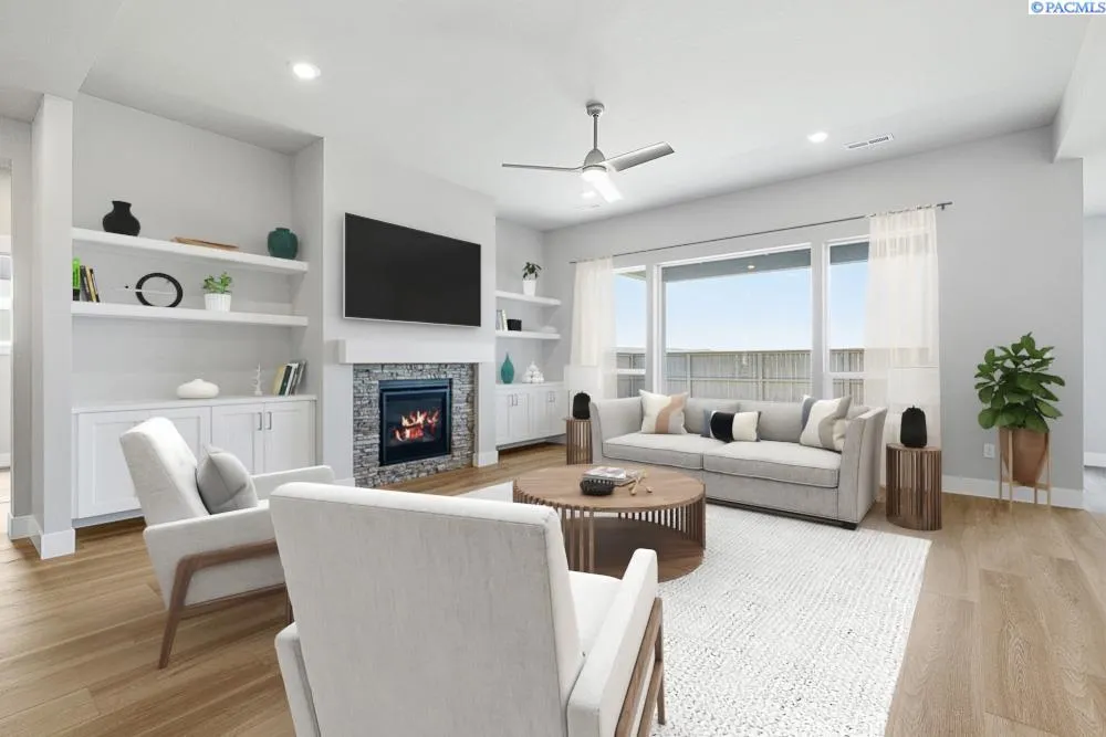MLS# 289611 Discover the Charm of Quail Ridge at Horn Rapids. Welcome to Lot 03, Phase 4A in the sought-after Quail Ridge community by Pahlisch Homes—where residents enjoy exclusive resort-style amenities, including a private pool, clubhouse, and fitness center. The Malone floor plan offers 2,411 sq. ft. of thoughtfully designed living space. The expansive great room is defined by soaring ceilings and large windows, filling the home with natural light and creating an inviting space for gatherings. The open-concept layout flows seamlessly into a gourmet kitchen featuring stainless steel appliances, quartz countertops, a walk-in pantry, and custom cabinetry—perfect for everyday living or entertaining in style. The primary suite is privately located to provide a tranquil retreat, while a versatile fourth bedroom or den offers flexibility to suit your lifestyle. Additional highlights include a 3-car garage with an extended third bay and 11-foot door, as well as a spacious covered patio that extends your living outdoors. This home is complete with professional front & rear yard landscaping, fully enclosed fencing, and modern Smart Home technology—including a smart thermostat, smart deadbolt, and garage door openers for ultimate convenience and peace of mind. Experience the elegance and comfort of the Malone—schedule your private tour today! * Lot 03, Phase 4A of Quail Ridge * Open for tours Friday–Tuesday, Please contact to schedule a private tour. * Photos are of a previously built home and are virtually staged