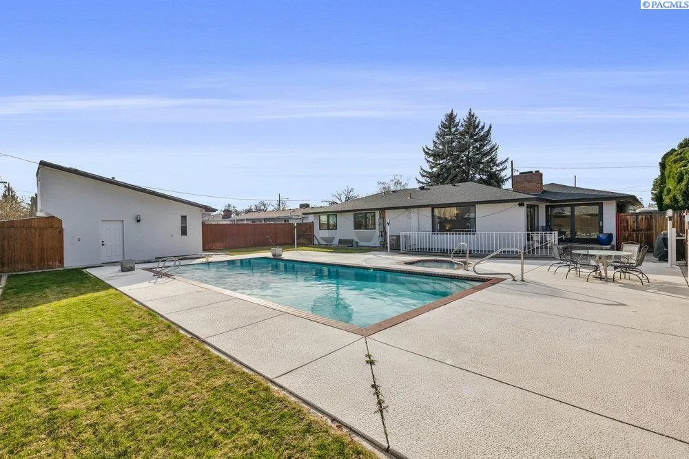 MLS# 289560 This home is a perfect blend of charm and modern convenience, offering 3,148 sq ft, 5 bedrooms, and 4 bathrooms in a thoughtfully updated 1960-built design. With Pella windows, recessed lighting, and three heating options—including Heat Pump HVAC, hot-water electric baseboard and two fireplaces—comfort is guaranteed year-round. The spacious kitchen features pull-out shelving cabinets, while a large laundry room provides a utility sink, folding counter, and understairs storage. The recreation room boasts a built-in bar, and patio doors on both levels make moving furniture effortless. Outside, an extra-large driveway, RV parking with RV electrical hook-up, and custom steel fencing ensure both convenience and security. The backyard is a true oasis, centered around a premium in-ground pool with a diving board, automatic safety cover, and stay-cool decking designed for barefoot comfort. While the in-ground spa offers the ultimate retreat with its easy roll-on/roll-off cover. Additional features include a dedicated changing room with full bathroom, a mechanical room for pool equipment and storage, and a spacious shed for tools and lawncare. The garage is equally well-equipped with built-in storage, 50-amp outlet for EV charging, and its own air conditioner. This property is an entertainer’s dream—offering space, luxury, and convenience in a beautifully maintained package. Ready to make it yours?