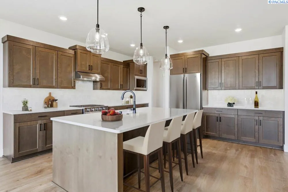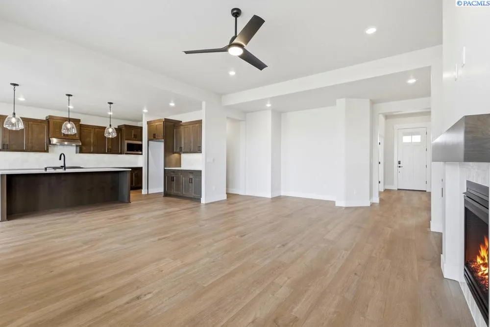 MLS# 286924 Discover the Charm of Quail Ridge at Horn RapidsWelcome to Lot 42, Phase III in the sought-after Quail Ridge community by Pahlisch Homes—where residents enjoy exclusive resort-style amenities, including a private pool, clubhouse, and fitness center.The Malone floor plan offers 2,411 sq. ft. of thoughtfully designed living space. The expansive great room is defined by soaring ceilings and large windows, filling the home with natural light and creating an inviting space for gatherings. The open-concept layout flows seamlessly into a gourmet kitchen featuring stainless steel appliances, quartz countertops, a walk-in pantry, and custom cabinetry—perfect for everyday living or entertaining in style. The primary suite is privately located to provide a tranquil retreat, while a versatile fourth bedroom or den offers flexibility to suit your lifestyle. Additional highlights include a 3-car garage with an extended third bay and 11-foot door, as well as a spacious covered patio that extends your living outdoors.This home is complete with professional front-yard landscaping, fully enclosed fencing, and modern Smart Home technology—including a smart thermostat, smart deadbolt, and garage door openers for ultimate convenience and peace of mind.Experience the elegance and comfort of the Malone—schedule your private tour today! * Lot 42, Phase III of Quail Ridge * Open for tours Friday–Tuesday, Please contact to schedule a private tour. * Photos are of completed home and virtually staged