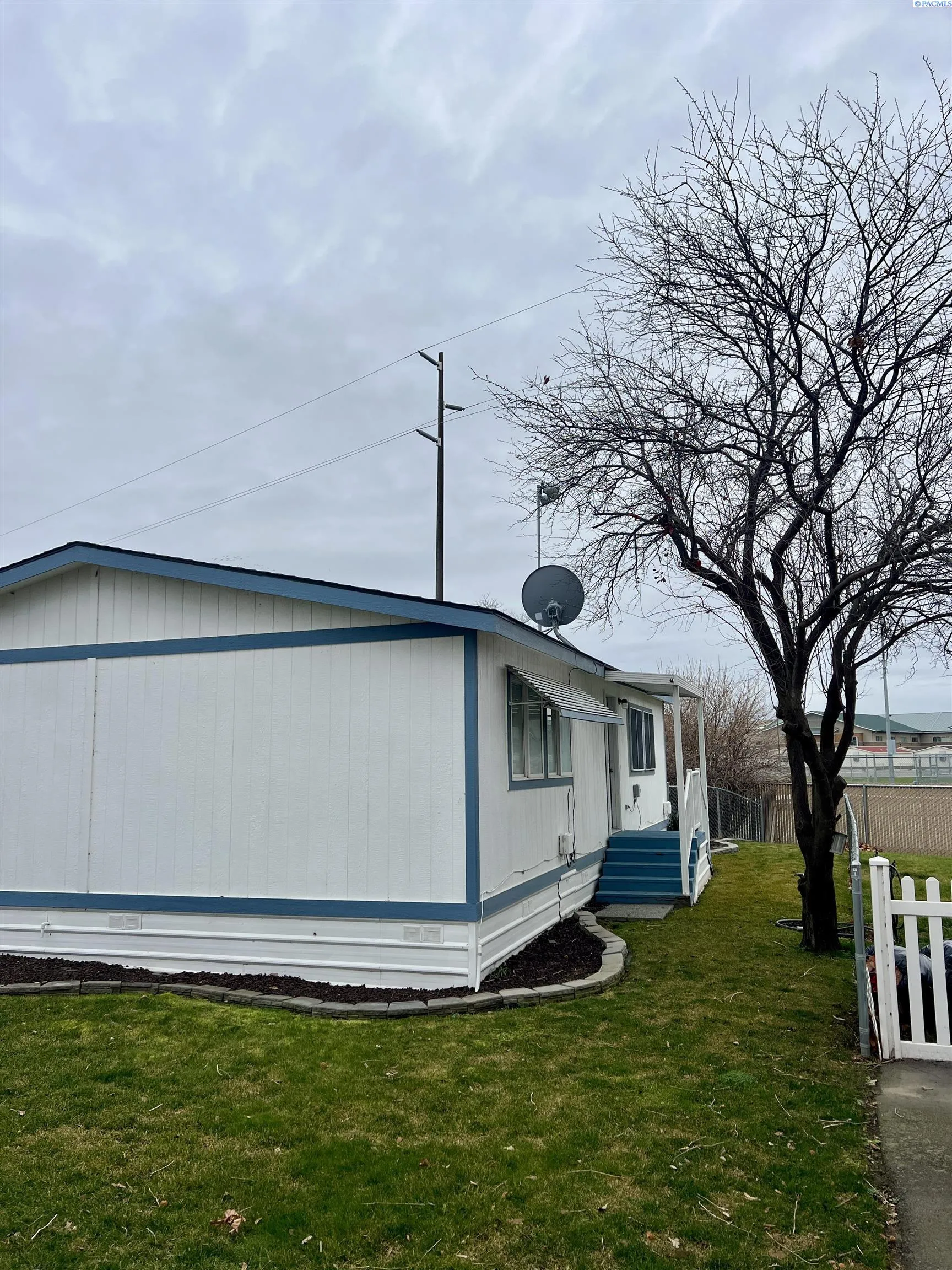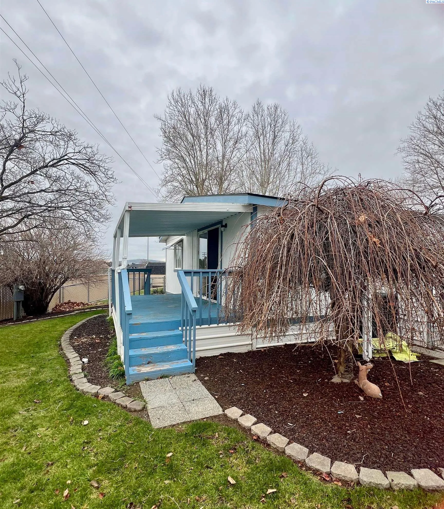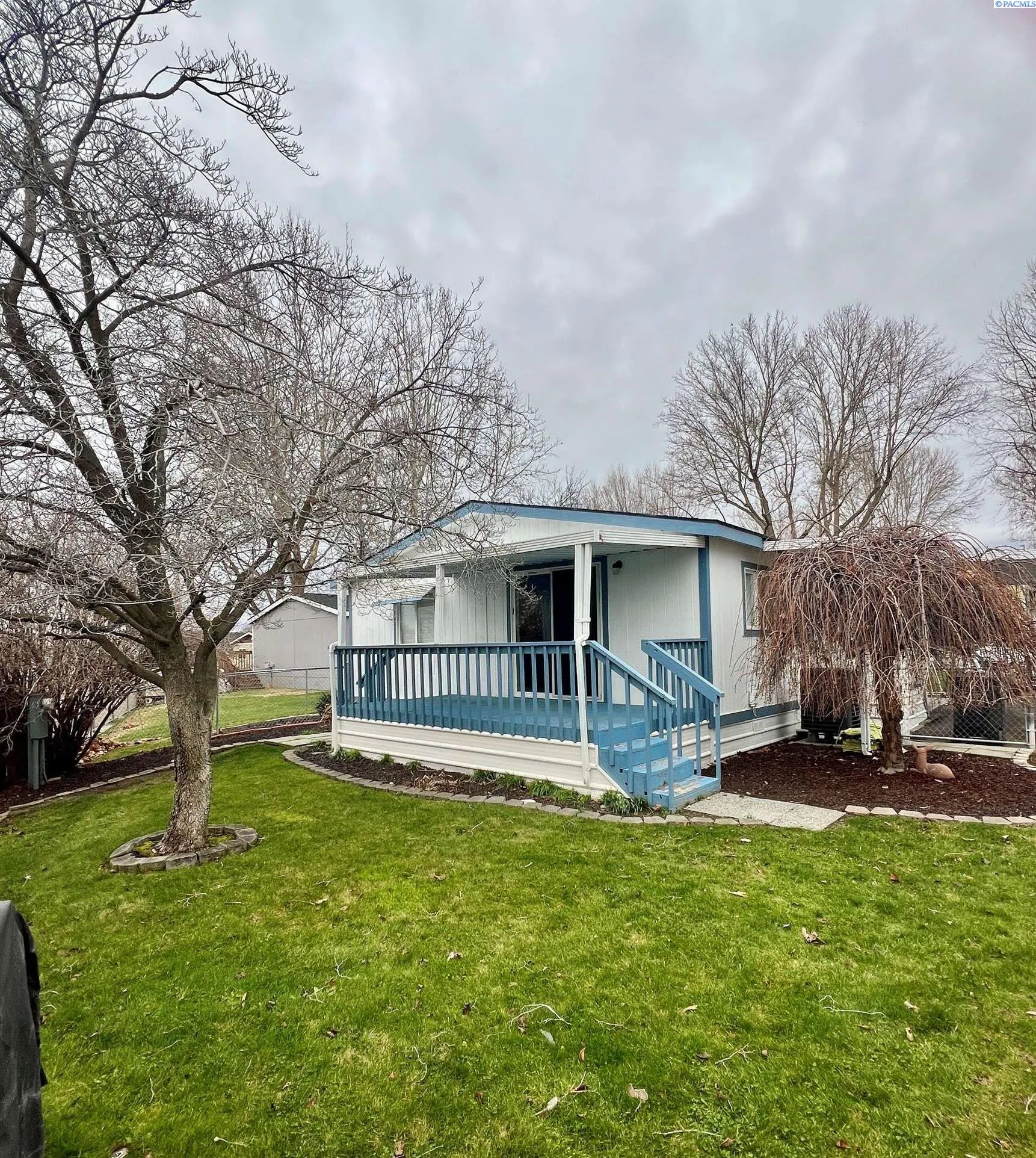 MLS# 289507 Welcome home to this beautifully maintained 1991 Valley Country Manor manufactured home, located in a peaceful and well-kept 55+ community in West Pasco. Offering 1,120 square feet of thoughtfully designed living space, this move-in-ready home features 2 bedrooms and 2 bathrooms with an open, airy floorplan enhanced by vaulted ceilings and abundant natural light. The home has been extensively updated in recent years, including a new roof, heat pump, air conditioner, and water heater—providing peace of mind and energy efficiency. All appliances are included, including washer and dryer, making this an easy transition for its next owner. Inside, you’ll find durable and stylish laminate wood flooring throughout for low-maintenance living. Fully automatic Hunter Douglas blinds are installed throughout the home, offering convenience, privacy, and light control. The main bathroom has been tastefully updated to be handicap accessible, adding both comfort and long-term functionality. Outdoor living is just as impressive. Enjoy a fully covered carport accommodating two vehicles, metal window shutters for added protection, and a spacious fully covered back deck overlooking a large, beautifully landscaped backyard. The yard is fully fenced and equipped with an underground sprinkler system—perfect for relaxing, gardening, or entertaining. Ideally positioned directly behind the high school tennis courts, the property enjoys added privacy and unobstructed views with no immediate rear neighbors. This well cared for home combines comfort, updates, and a serene setting—truly ready to move in and enjoy.
