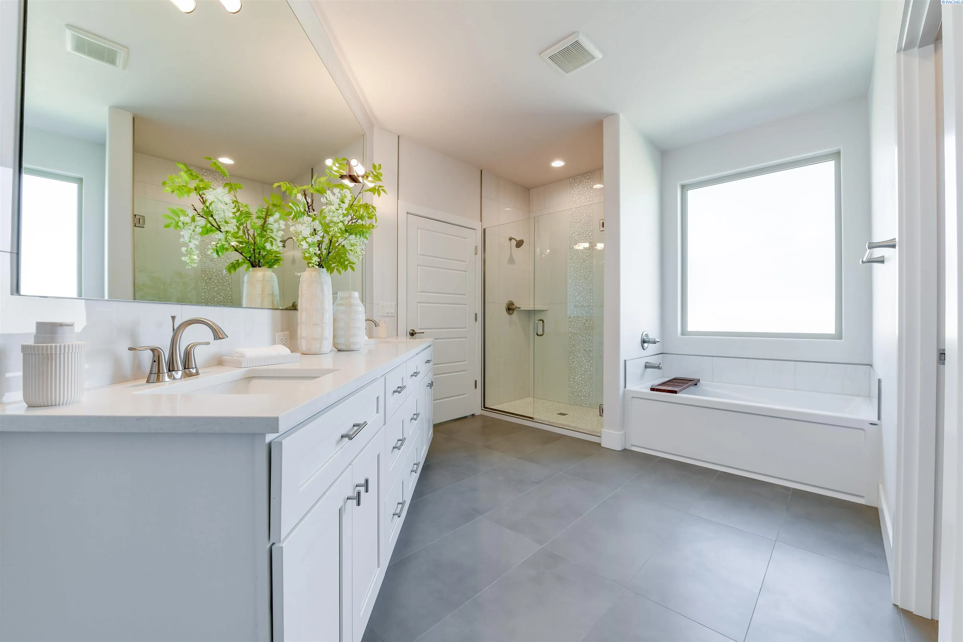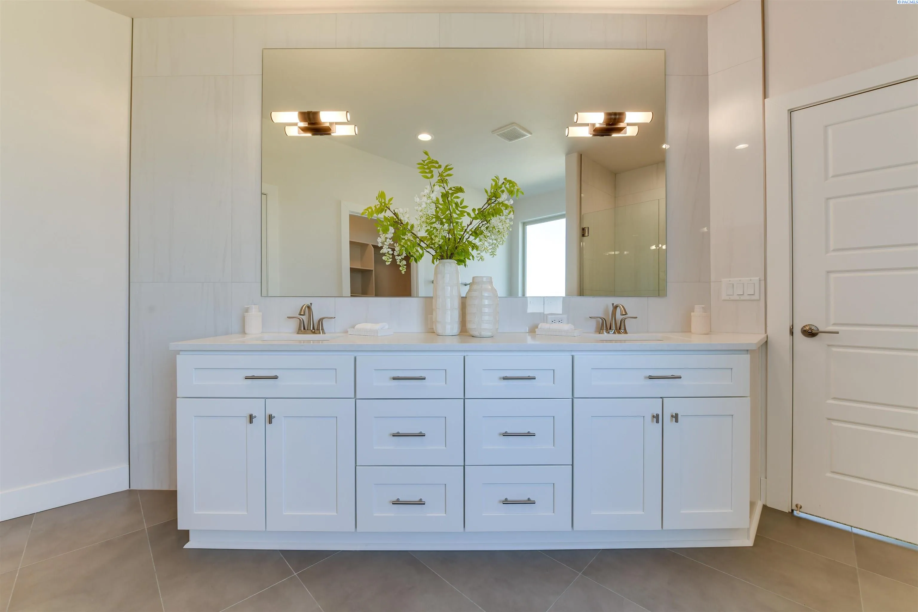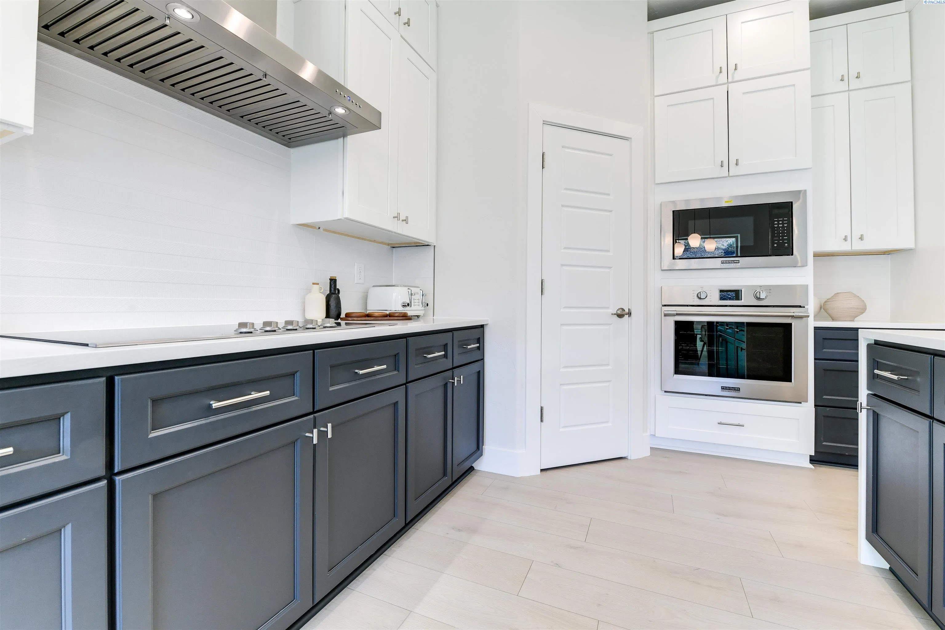 MLS# 289406 Welcome home to your stunning Infinity Home located in the final phase of White Bluffs. This beautifully designed residence features 3 bedrooms plus a den, a full stucco exterior with rock accents, and an exposed aggregate driveway and walkway leading to an elegant front entry with a transom and side light window for added natural light. Inside, luxury vinyl plank/SPC flooring flows throughout the entry, great room, kitchen, dining, den, and hallways. The spacious great room offers a gas fireplace with a custom wood detail finish, a recessed area for TV mounting, and a smurf tube for clean cable management. The home is pre-wired for a 5.1 surround sound system in the great room, plus ambient speakers for the patio and primary suite. The gourmet kitchen showcases stacked cabinetry, quartz countertops with a waterfall island, full tile backsplash, professional stainless-steel appliances, and a corner pantry. All bathrooms and the laundry room feature slab quartz counters and tile flooring. The luxurious primary suite boasts crown molding, a coffered ceiling with accent rope lighting, a soaking tub, tiled walk-in shower, double vanity, and a spacious walk-in closet. Enjoy outdoor living with a covered patio, gas BBQ hookup, full landscaping, underground sprinklers, and full fencing. Thoughtfully designed with high-end finishes and functional details throughout, this home is a must-see!