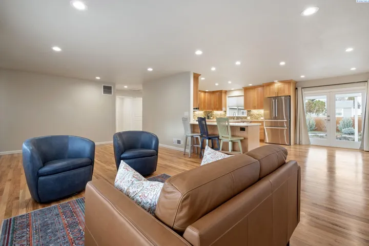 MLS# 289380 Look no further, this home has it all! Walk through the front door and you are in a newly constructed home. This home was updated from top to bottom and you have to see it to believe it. Newly Swedish-refinished hardwood floors throughout the main level are fabulous. Head into a kitchen that is beyond gorgeous with tons of storage, custom cabinets, an island, Bosch appliances, breakfast bar and lots of light. Double French Doors open from the dining area to the backyard. Bathrooms and kitchen have quartz countertops, custom cabinets, custom tile and underhung sinks. The basement is unbelievable with a large area for game night, theater or family room. Two bedrooms downstairs have large egress windows with a bathroom in-between. New detached double-car garage has built-in Gladiator cabinets, EV charger, and next to the garage an RV pad with electrical outlet. The professionally landscaped yards have peace and calm with many trees, shrubs and plants throughout, with private fencing, greenhouse, and garden storage shed. LOCATION LOCATION in North Richland is the best, just 2 blocks to the river, park and biking paths and in the middle of the magnificent Gold Coast. Close to schools, shopping and easy access to G Way to head to work. Check out this dream R house, absolutely stunning!