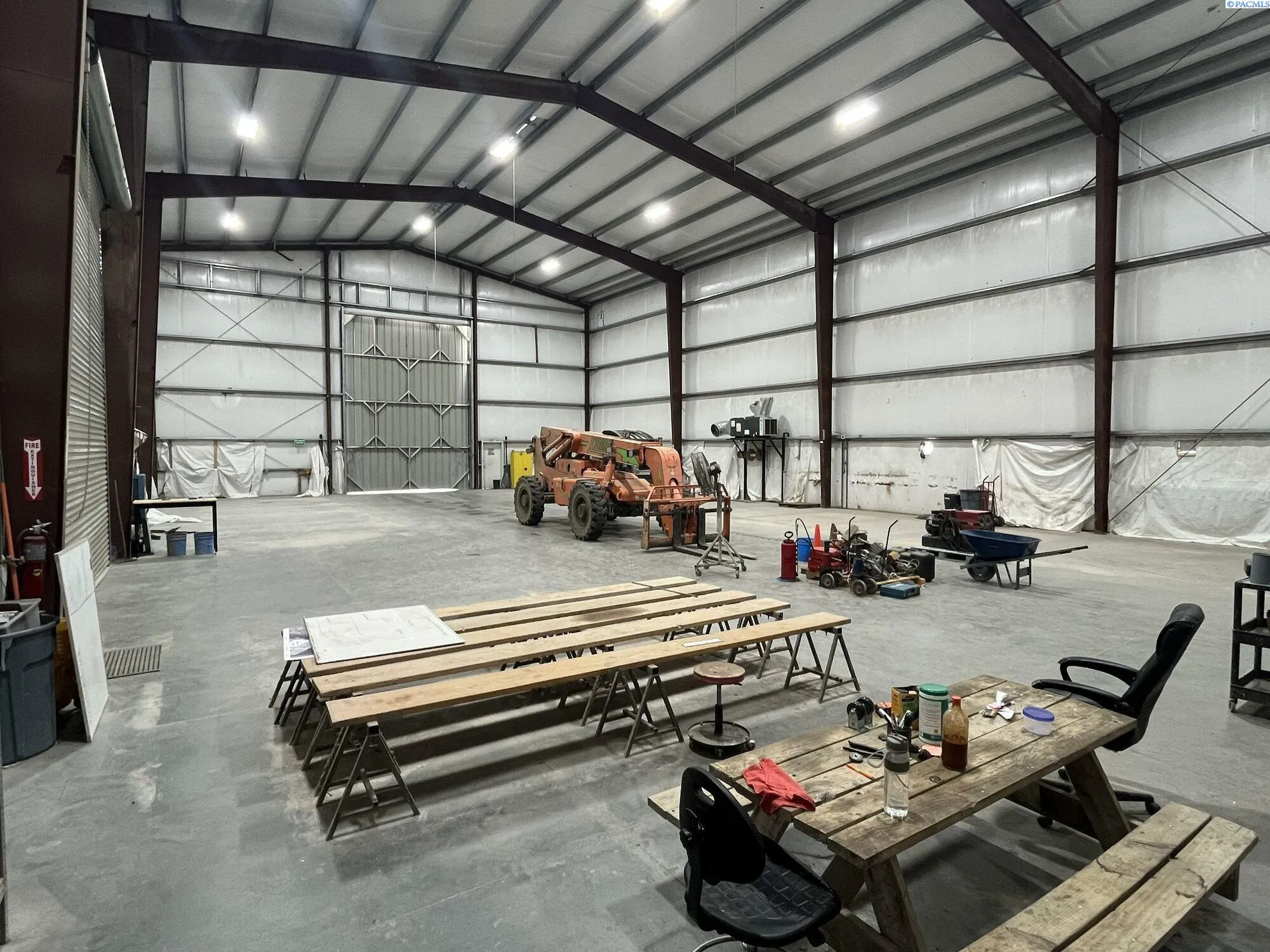 6,000 sf high bay clear span warehouse with 1,000 sf office sitting on 1.96 Acres. 1/2 acre Lay down yard, property Zoned Light Industrial/Manufacturing. Has visibility from Interstate I82. 30 ft at peak 25 foot eve, 6000 sf Warehouse, 3 bays, 14ft, 16′ & 25ft doors, 3 phase power, Large air-compressor system, newer HVAC in office. 3 bathrooms, one with shower, office is attached 2 story space w/Dual mini splits for climate control. Extra thick concrete & fully asphalt paved around facility. Located next to the Budweiser Distribution Center. Price is $7,500 + $1,000 NNN per month. Tenant is responsible for utilities and maintenance. Sublease through January 31, 2028