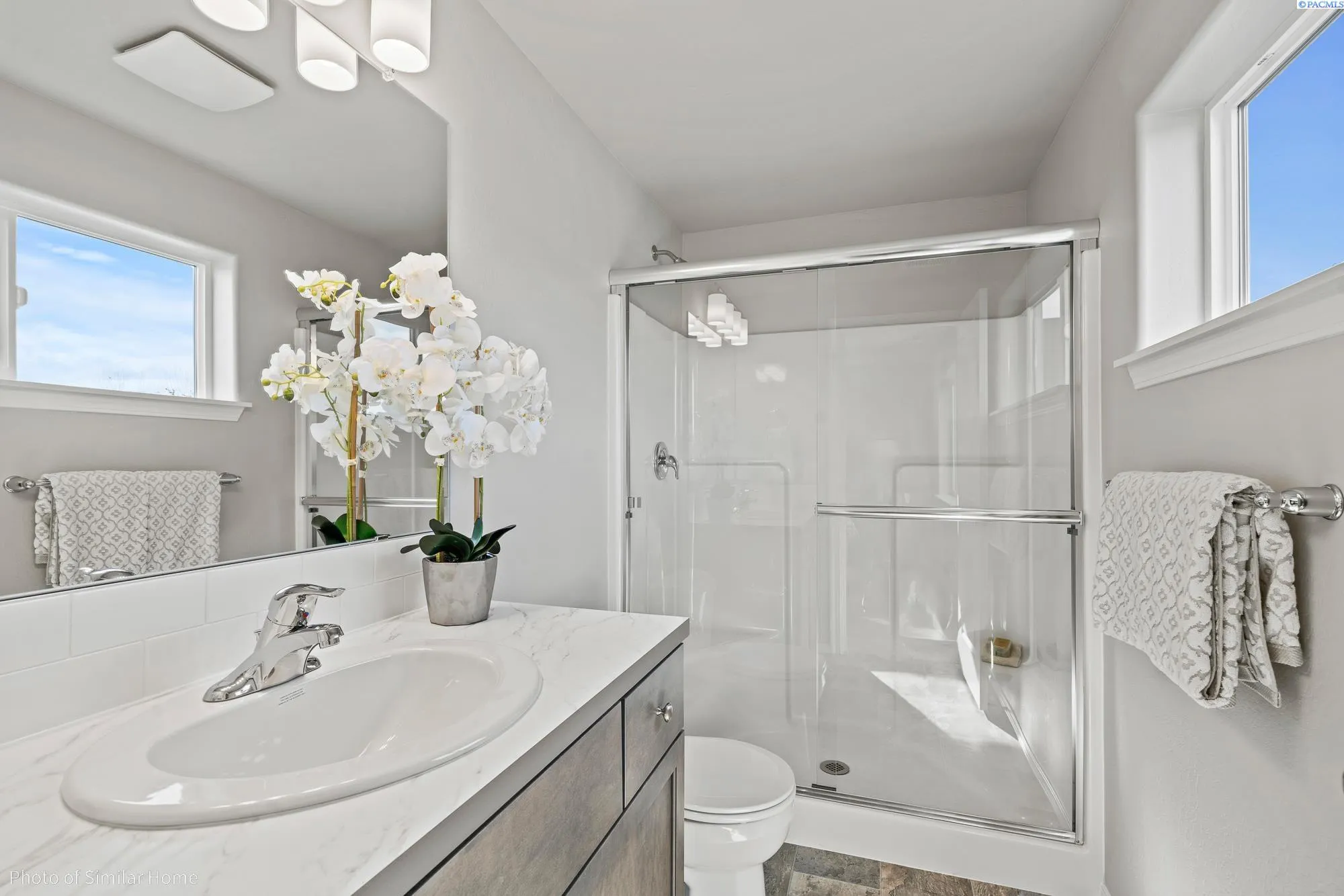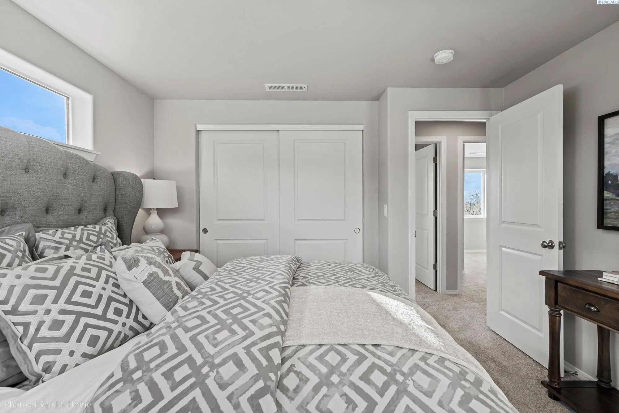 MLS #287851 Unlock 2026 Savings Event Happening Now! Contact a community manager for more details. The 1395 square foot Darrington is a well-appointed two story home that lives larger than most mid-sized plans. The dramatic entry leads to the open kitchen and living room area, with plenty of light and space for entertaining. The kitchen boasts ample counter space and cupboard storage and features an optional desk for convenience and organization. Upstairs, the main bedroom has a large closet and bathroom, and two other sizable bedrooms offer large closets and share a second full bathroom. Photos are of similar home.