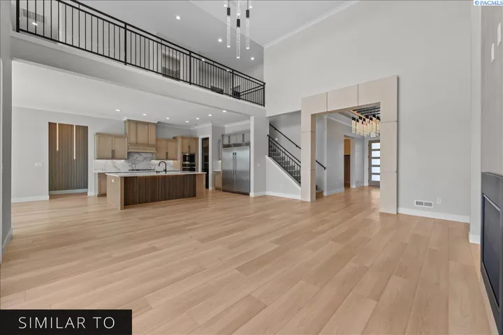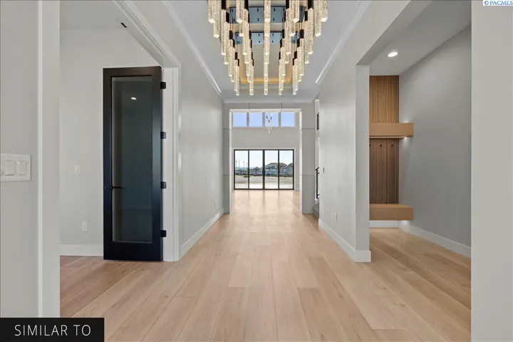 MLS# 287829 The Aria II is an expansive 4,524 sq. ft. two-story home that combines grandeur with comfort. This floor plan includes 5 bedrooms, an office that can convert into a 6th bedroom, 3.5 bathrooms, and a 3-car garage. A key highlight of this home is the sophisticated Primary Suite, a private retreat separated by an elegant foyer. It features a walk-through closet and a luxurious spa-inspired bathroom with a centerpiece soaker tub, set against a fully tiled wall, and a large walk-around shower with dual shower heads.On the main floor, two additional bedrooms are connected by a convenient Jack-and-Jill bathroom. The heart of the home is an open-concept kitchen, dining, and family area, perfect for both entertaining and everyday living. A central slider opens to a spacious covered back patio, seamlessly blending indoor and outdoor spaces. The upper level offers additional bedrooms, a hall bathroom, and a versatile Theater room for family enjoyment. Explore the photo gallery to see the exquisite features that make the Aria II a truly remarkable home.