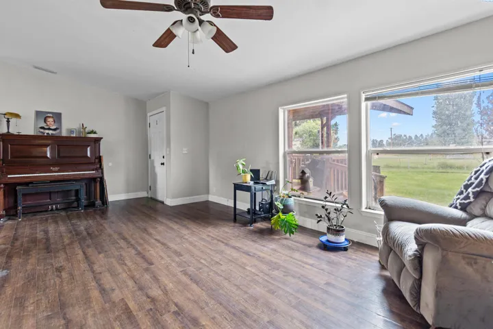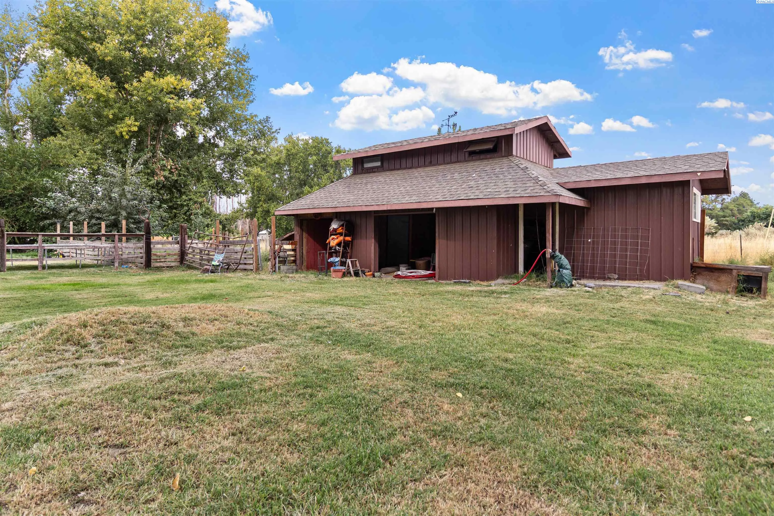 MLS# 287872 Have you been looking for a 4 bedroom/2 bathroom home in the ‘Country’ with a shop, a barn, and some acreage? Well, this 1999 built double-wide manufactured home on 1.15 acres is calling your name. The home is 1,782 square feet and has a wonderful covered front deck. The interior of the home consists of vaulted ceilings with modern drywall and mostly laminate flooring throughout. The kitchen opens up to the dining room and living room, offering the ‘Great Room’ concept, with a separate family room area off the Owner’s Suite. It’s also a split-bedroom design, with the 3 guest bedrooms at the opposite end of the home from the Owner’s Suite. Both bathrooms are considered ‘full baths,’ and the Owner’s Suite has a corner garden tub in additional to a walk-in shower. The double-pane vinyl windows and modern electric heat pump help keep the utility bills very reasonable. The 1.15 acre lot is square in configuration, offering a ginormous yard that is served by Kiona Irrigation District water. There is a 30′ x 40′ shop (All Steel Structure) with a wood stove to keep the shop warm in the cold months. There is also a gorgeous barn in the northeast corner or the lot, that has a pallet fence, perfect for raising 4-H critters. The septic system drain-field is BRAND NEW (September, 2025). The private well pump was replaced in 2019 or 2020. This ‘country-living’ package deal should check ALL the boxes for a Buyer wanting some freedom from city living. Call your favorite Realtor to schedule a private viewing.