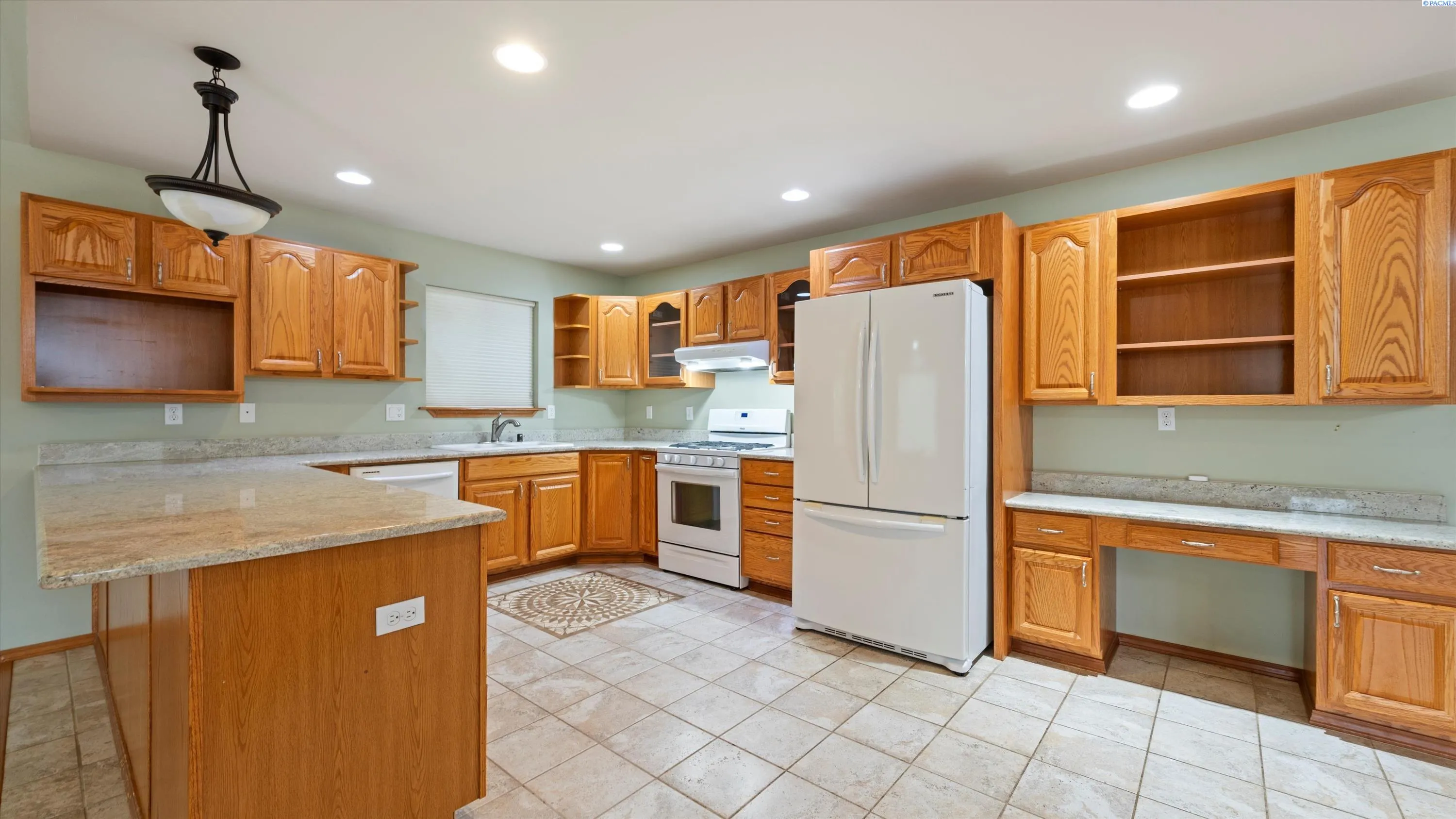MLS# 287868 Estate Sale. Two Homes sit on 1.18 ac. The main existing home was built in 2010. The old home was lost in a fire. A well kept main home has a open floor plan. Kitchen has granite counter tops, cabinets with pull-outs and spice rack, 2 lazy Susan’s, natural gas oven/range, drawer w/ garbage compartment and a large pantry, also a built-in desk w/ storage for paper work. Great room has a natural gas fire place & plenty of room for setting, also a slider for access to the out door deck. 3 bed rooms, plus a office or could be used as another bed room. Tile & Vinyl plank flooring. Large utility room & sink and storage closet. 2nd home can be used as a mother In-law quarters, craft studio, or what ever meets you needs. (Seller used it as a day care center.) Has a open floor plan w/ vaulted ceiling, kitchenette & bath room w/ shower bed room w/ closet. A 2 car garage has a loft w/ attached 2 car carport, also a green shed near the pasture. Park like back yard and covered deck perfect to watch the beautiful sun sets. UG timed Sprinkles around the home and above sprinkles in the pasture. Kid Irrigation