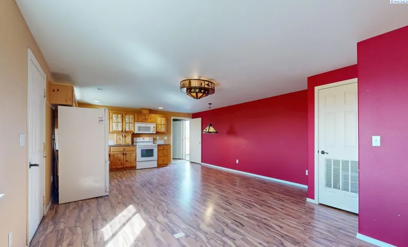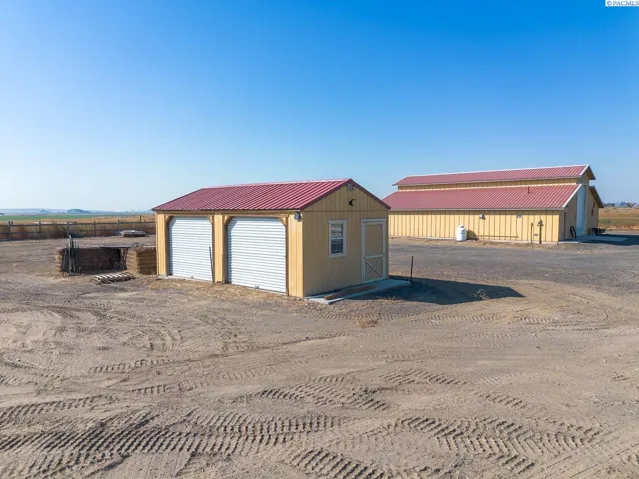 MLS# 287930 Escape to wide-open country living on 73+ acres in peaceful Eltopia! This one-of-a-kind barn dominium offers panoramic views, endless room to roam, and the rare opportunity to create your dream retreat, working ranch, or recreational getaway. From the outside, this property keeps things simple with a classic pole-building look—wood siding, metal roof and a full pass-through bay with oversized roll-up doors, and an attached workshop. Inside, the surprises unfold: on the west side you’ll find a comfortable 1-bed, 1-bath residence featuring an open layout, laminate flooring, tankless hot water, a cheerful kitchen, pantry, and mudroom. On the east side is a versatile finished flex space with a propane fireplace—perfect as a rec room, guest retreat, or hobby area—plus an additional bathroom and dedicated laundry room. Between the two living areas stretches a massive drive-through shop bay with plenty of room for vehicles, equipment, or large-scale projects. The land itself is the star here. Over 73 acres of dryland awaits your livestock. Bring your cattle, sheep, or horses and enjoy space to grow and expand. A separate storage building adds even more utility for tools, feed, or seasonal gear. Whether you’re looking for a private country escape, a place to raise livestock, or a property with serious shop space and untapped potential, this barndominium delivers. Rugged, practical, and full of possibilities—come put your vision to work!