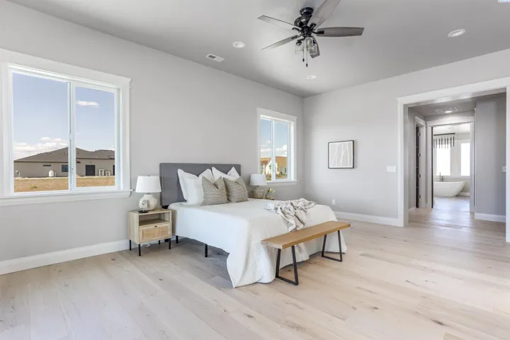 MLS# 287894 Stunning New Construction Home in Kohler Estates by Aspire Homes! A Modern Oasis on 1 Acre! Nestled on a sprawling acre of land in the desirable Kohler Estates community, this gorgeous single-story home boasts 3,156 sq. ft. of luxurious living space designed for both comfort and style. With a modern floor plan, every detail has been meticulously crafted to create an invitingatmosphere. As you step inside, you’ll be captivated by the beautiful coffered ceilings that elevate the living space, coupled with hardwood flooring that flows seamlessly throughout. The heart of the home is the chef-inspired kitchen, equipped with Energy Star certified stainless steel appliances, sleek quartz countertops, and beautiful cabinetry featuring under-cabinet lighting. The custom glass-topped cabinets not only provide ample storage but also add a touch of elegance to the space. The living area is the perfect spot tounwind, complete with a cozy fireplace that features lighted shelving on either side, creating an inviting ambiance for gatherings or quietnights in. The thoughtfully designed laundry room offers functionality and convenience, making chores a breeze. Other features include,Santa Fe hand texture throughout interior walls, makeup area in primary cabinets, full wrap molding windows, and Fireclay single tubsink in kitchen and Fireclay sink in laundry room! Step outside to discover your very own outdoor paradise! With electrical connectionsready for a shop or pool, this home is built for modern living. The bathrooms feature stunning quartz countertops, providing a luxurioustouch to your daily routine. The primary suite is a serene retreat, complete with a spacious single tub and a beautifully designed layout.Don’t miss this opportunity to own a piece of tranquility in Kohler Estates! With its perfect blend of modern amenities and thoughtfuldesign, this home is ready for you to create lasting memories.