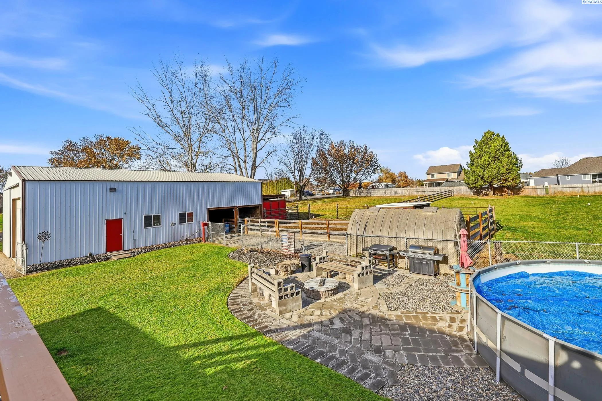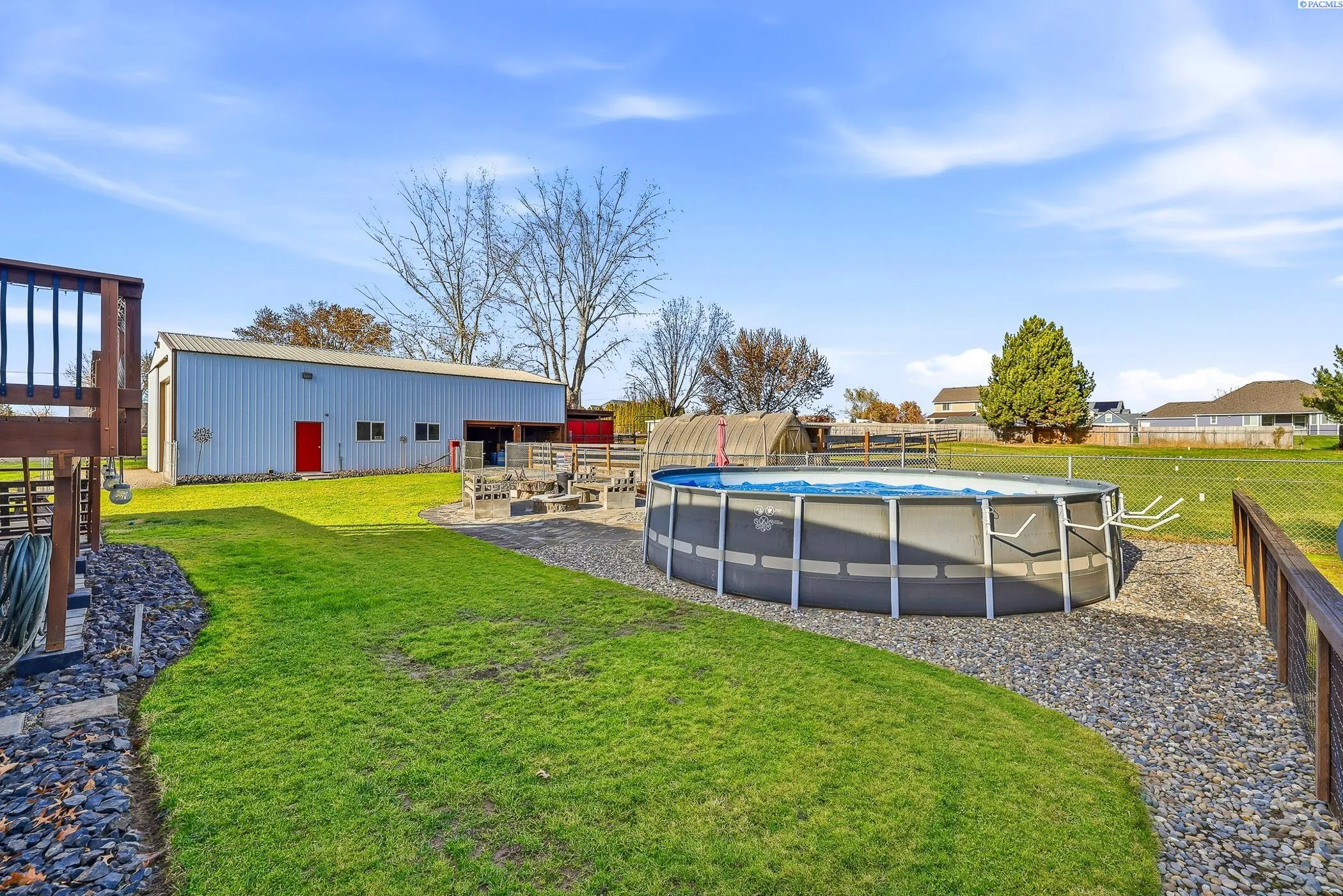 MLS# 289097 Charming, Unique Farmhouse-Inspired Home on 1.09 Irrigated Acres- Set Up Perfectly for Animals & 4H Projects! Discover the ideal blend of country feel and in-town convenience with this warm, inviting 4-bedroom, 2-bath home located close to elementary, middle, and high schools. Pride of ownership shows throughout both the home and the property. Sitting on 1.09 acres, fully fenced and irrigated, this property is truly unique and thoughtfully designed for animal lovers. Enjoy a fully established corral, pasture area, and multiple outbuildings for wood, hay, and storage needs. A greenhouse and dedicated garden area make this the perfect setting for a Gardner or anyone seeking a peaceful, rural lifestyle. A standout feature is the spacious 30×56 shop, complete with (3) 30 Amp outlets, a loft, and plenty of room for hobbies, equipment, or business needs. Additional perks include RV parking and an above-ground pool for summertime enjoyment. The home itself is warm and welcoming, showcasing a farmhouse-inspired style, stainless steel appliances, a spacious finished basement, and a newer roof with a transferable warranty for added peace of mind. This is a rare opportunity to enjoy acreage living with all the amenities you’ve been searching for. Whether you’re starting 4H projects, caring for animals, or simply craving room to roam, this property has it all.Call your realtor today!!!