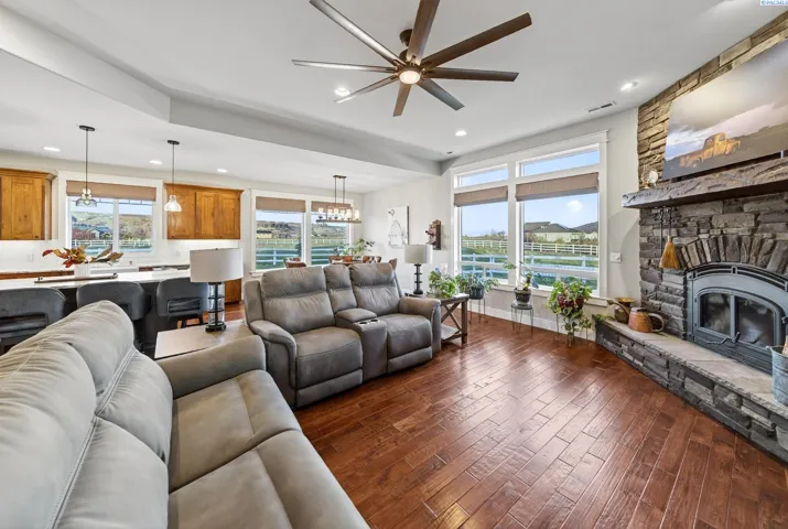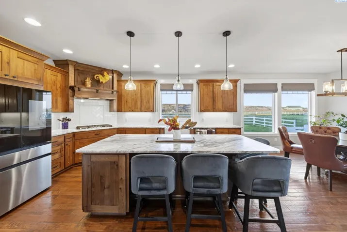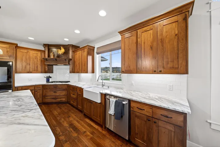 MLS# 289086 Luxury Meets Country Living Along the Yakima RiverWelcome to your dream retreat—this stunning single-story home, built in 2017, is nestled within a gated community flanking the serene Yakima River. Set on 5 fully irrigated and fenced acres, this property offers the perfect blend of upscale comfort and rural charm.Step inside to a warm and inviting foyer featuring a custom wall of display shelving. The open-concept layout seamlessly connects the marble-clad kitchen, dining area, and living room, anchored by a full-height stone woodburning fireplace with a rustic wood mantle—ideal for cozy evenings. Your gorgeous Primary Suite of course has a luxurious en-suite bathroom, and you’ll enjoy a unique “double” walk in closet. Enjoy peaceful sunrises from the screened-in back patio, or explore the expansive grounds designed for equestrian enthusiasts. The property includes pasture, corrals, loafing sheds, and a newly added 36′ x 48′ insulated shop—perfect for hobbies or storage. A greenhouse and chicken coop add to the self-sufficient lifestyle.Whether you’re seeking tranquility, space for animals, or a luxurious country escape, this home delivers it all.
