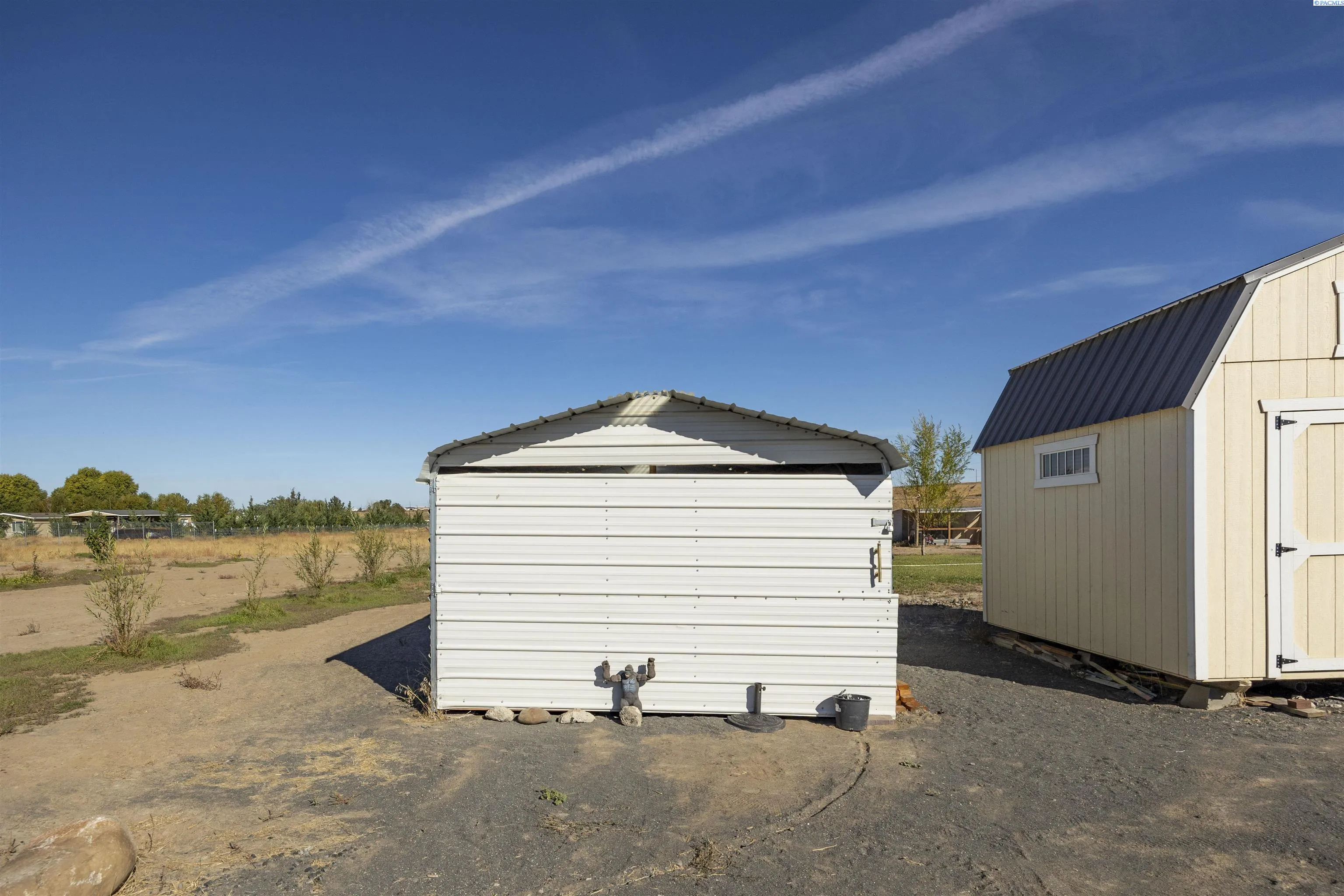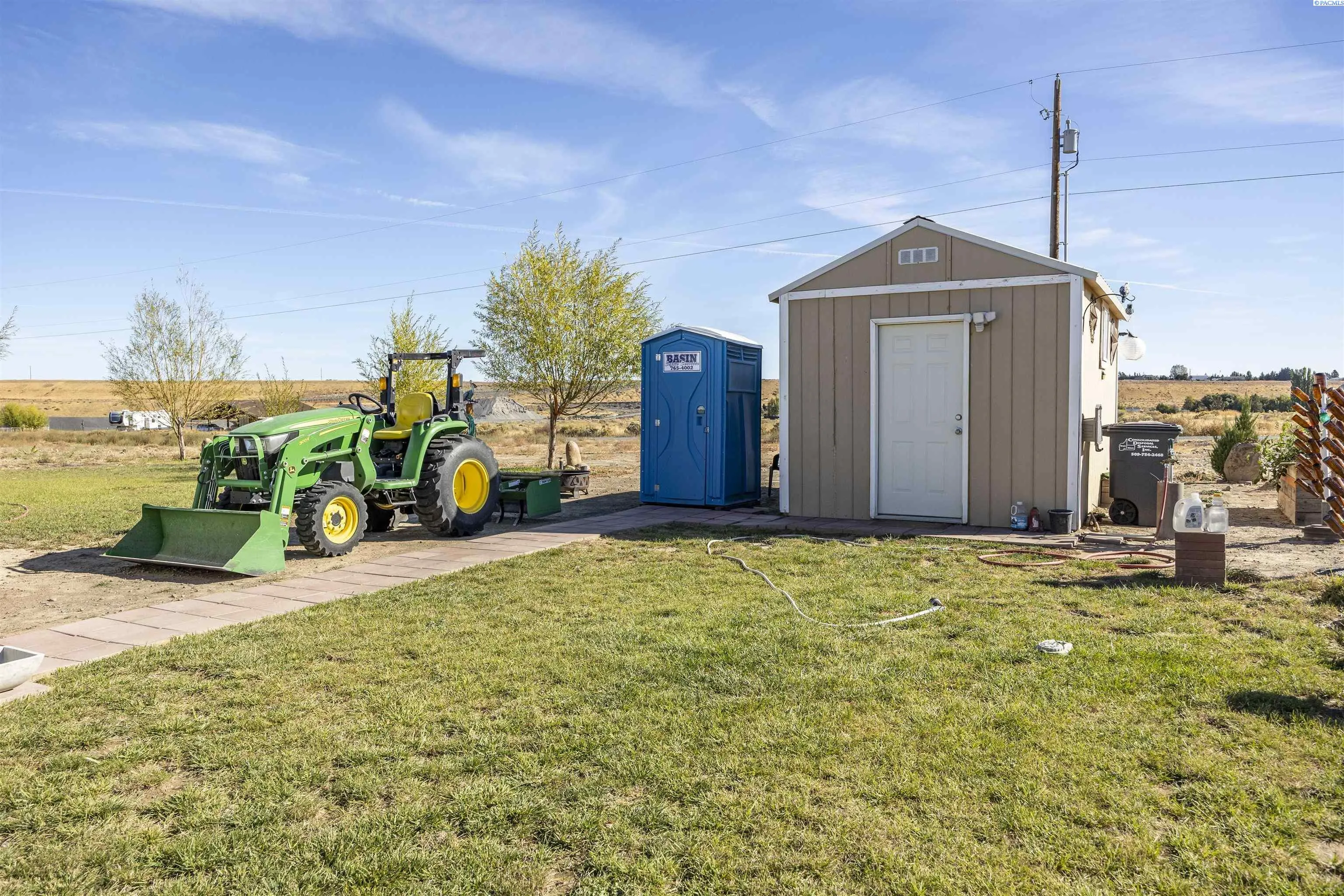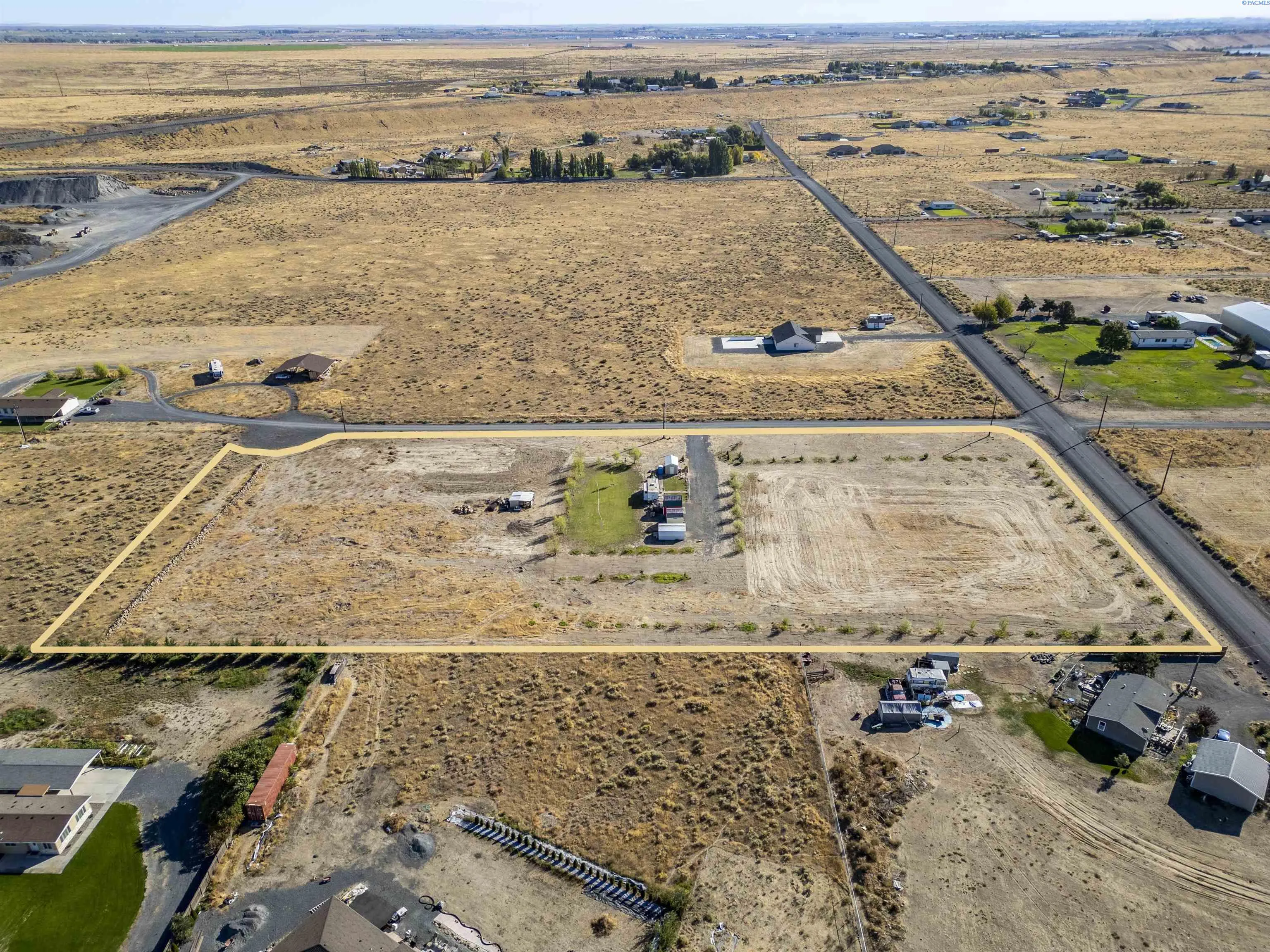 MLS# 288054 Located in the McConihe community, this 5.18-acre parcel offers a robust set of improvements and potential in the Moses Lake area. A well with a large pump sits on a concrete foundation and power is already connected, providing a solid utility network for immediate use. About half the lot has been cleared and cleaned, with the cleared rocks repurposed to form a partial wall running parallel to the road, and trees have been planted to establish long-term privacy as they mature. The property includes two barn sheds, with the red shed featuring a second level that could serve as a tiny home or ADU. Four spigots are scattered around the site for convenient water access, and drip irrigation lines help nurture the trees. An established grass area adds immediate curb appeal and usable landscape. RVs are not included in the sale, and items stored in the sheds may be negotiable. This is not sub-dividable, but you can have one residential home with one ADU on the property, offering a rare blend of privacy, utility, and future potential.