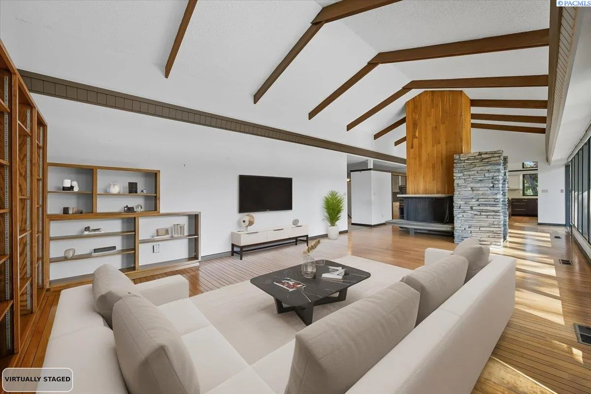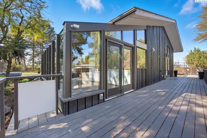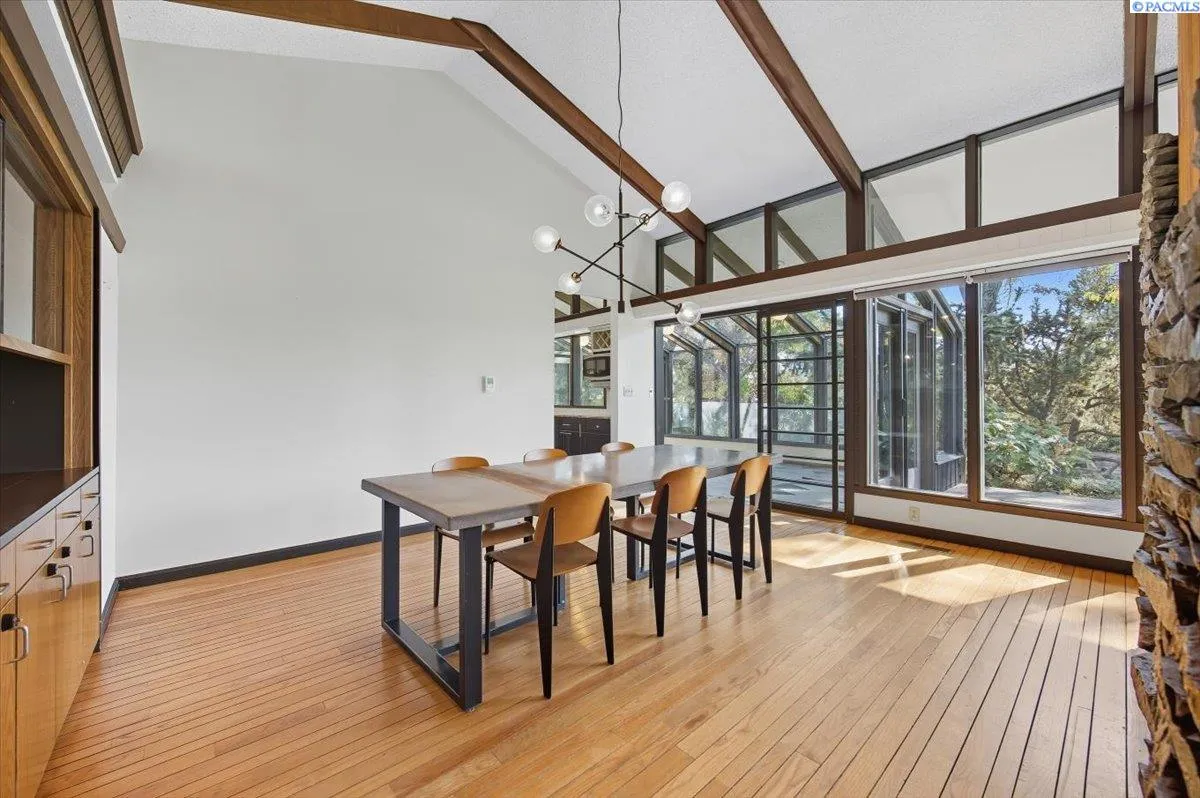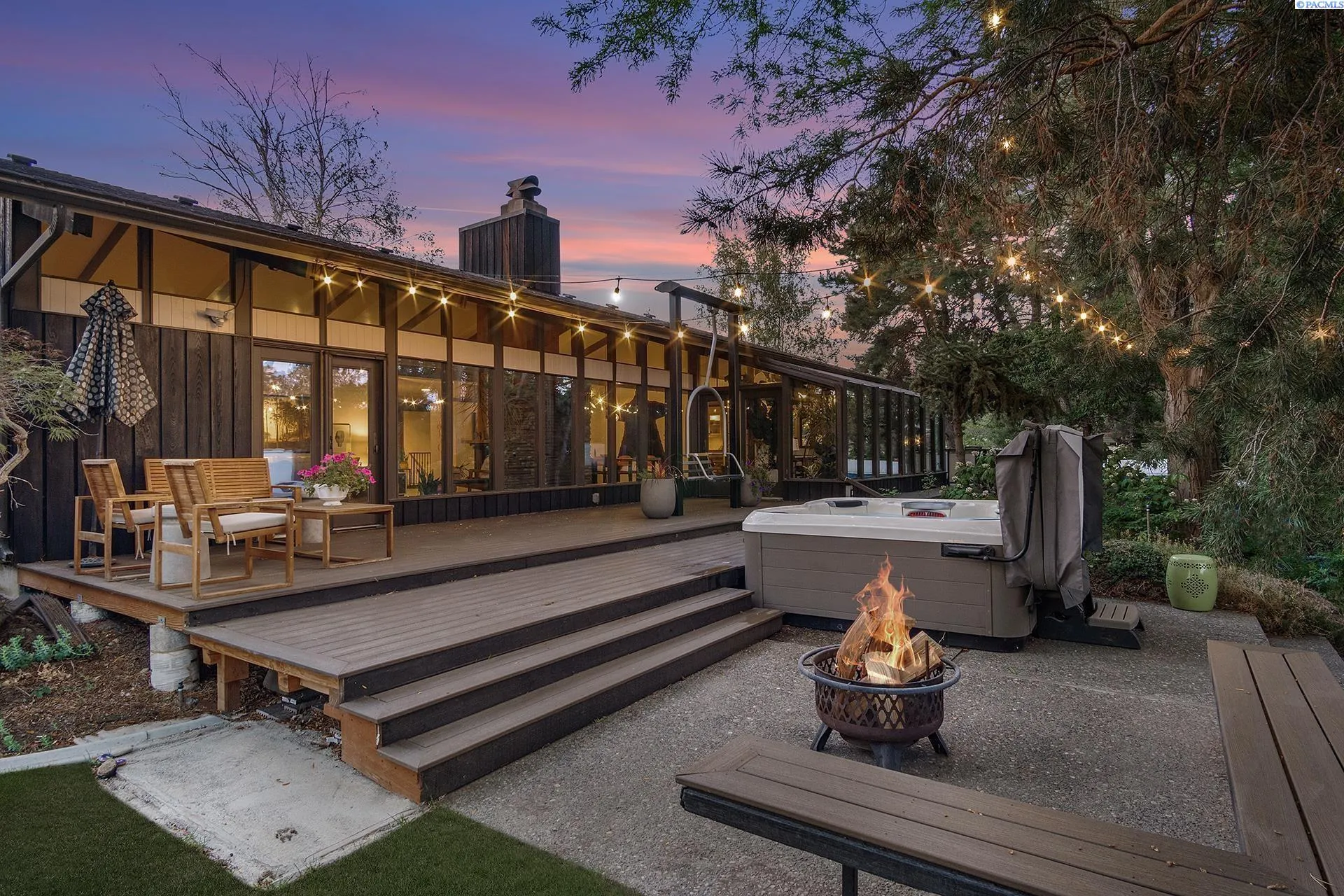 MLS# 288020 Retreat-Style Home in North RichlandDiscover your private retreat in North Richland with this stunning rambler with a full basement, offering nearly 4,000 square feet of beautifully updated living space on a one-acre lot. Most of the living areas, including the laundry room, are conveniently located on the main level. The home showcases a stylish mid-century modern design with a beautifully updated kitchen ,featuring granite counters, newer cabinets, double ovens, a commercial-size refrigerator, stainless steel appliances, tile backsplash, and abundant storage. This is a chef’s dream kitchen. The kitchen eat in dining area includes a cozy wood-burning stove, great for those cold mornings to enjoy your coffee. The open formal dining room features built in bar shelving and opens into the spacious living room which boasts soaring ceilings with wood beams and is also enhanced by a wood-burning stove. Step out to the deck which is perfect for entertaining. Very private setting with so much greenery. Soak in the hot tub then warm up by the fire pit. The perfect private retreat. Enjoy the bright solarium with floor-to-ceiling glass windows, your plants will love this area! The main level offers four bedrooms, and 3 bathrooms, including a beautifully updated primary suite with dual professionally installed closets and anupdated bathroom, featuring dual sinks, a walk-in tile shower, and abundant cabinet space. The main bathroom includes a lovely walk in tile shower, dual sinks, and modern finishes. Third bathroom is updated with vanity and tub and tile surround. Throughout the home, you’ll find newer wood flooring, custom paint, and thoughtful upgrades at every turn.The lower level provides endless possibilities—ideal for a theater room, game area, or potential fifth bedroom. It also includes a washer and dryer hookup, tons of storage, and easy access to the oversized three-car garage, complete with a newer soft-close garage door opener and updated entry door.Outside, there’s room for everything—ample RV parking, a fenced yard, and chicken coop. Splash in the beautiful gunite pool and soak up the sun under the gazebo Also included is a pool house with all the supplies. There is a professional-sized tennis court to practice or play tournaments. This property offers a rare combination of space, comfort, and privacy—perfect for a family, multi-generational living. The tennis court area is zoned for 2 additional up to 1000 sq feet homes.
