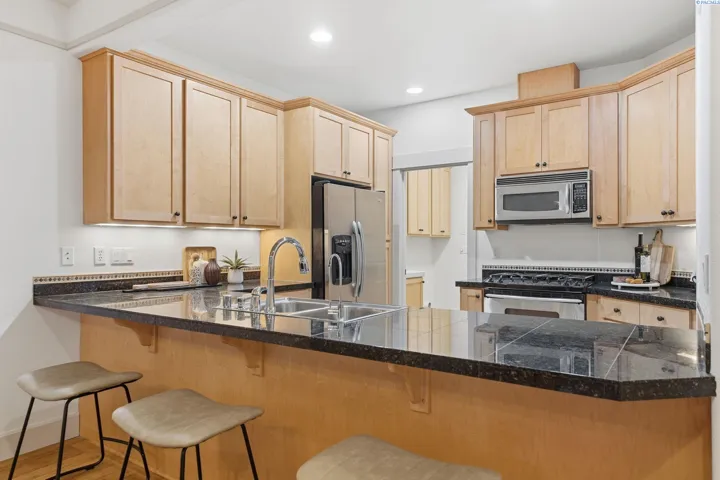 MLS# 288936 Enjoy easy and convenient living by the Columbia River in this updated condo! With new paint, new carpet, and a new HVAC system installed just last year, you can move right in and enjoy river-adjacent living! This home has two primary suites, one up, one down, and another bedroom, a loft area, and a study/office. The kitchen has solid-surface countertops and a breakfast bar near the dining area. Light floods in through the two doors accessing the rear patio, one from the downstairs primary, and one from the living room. Easy access to recreation, dining, and shopping, not to mention nearby highways for travel.