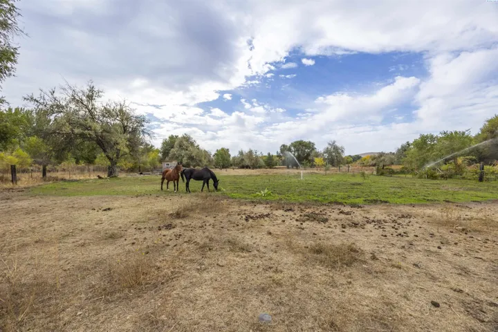 MLS# 288167 Discover this charming 1.5 story farmhouse nestled on 5.38 irrigated acres in Richland, perfectly situated near the Yakima River and offering Agricultural Zoning for endless possibilities. Completed in 2012 and thoughtfully improved over time, this property blends country charm with modern convenience. The flat, irrigated land features both an agricultural well with irrigation rights and a separate potable well for drinking water, making it ideal for hobby farming, gardening, or raising animals—all within the city limits of Richland. Inside, the great room concept opens seamlessly to the kitchen, creating the perfect gathering space for entertaining. The home offers 3 bedrooms, each with its own private bathroom, plus a convenient half bath off the main living area. Comfort is ensured year-round with two mini-split heat pumps, with capacity to expand throughout the home. A detached garage sits adjacent to the home, offering excellent potential for office space or an additional living area above. Outdoor living shines here with multiple covered patios and an outdoor kitchen area, perfect for summer evenings and weekend barbecues. Additional property features include several versatile outbuildings, access from both Hyde Road and Van Giesen, two separate power services (home and Ag-well pumphouse), a 30-amp RV hookup with septic for guests, and a beautifully unique setting close enough to enjoy fishing or floating the Yakima River. Experience country charm and wide-open space with this true slice of heaven in the city—private, versatile, and full of possibilities.