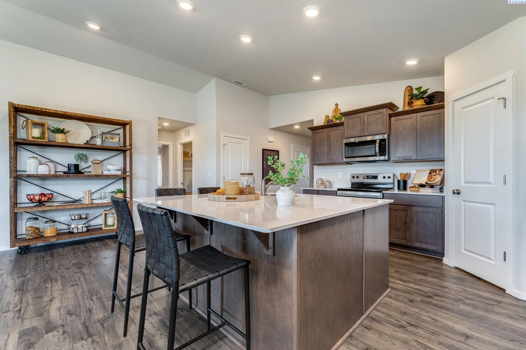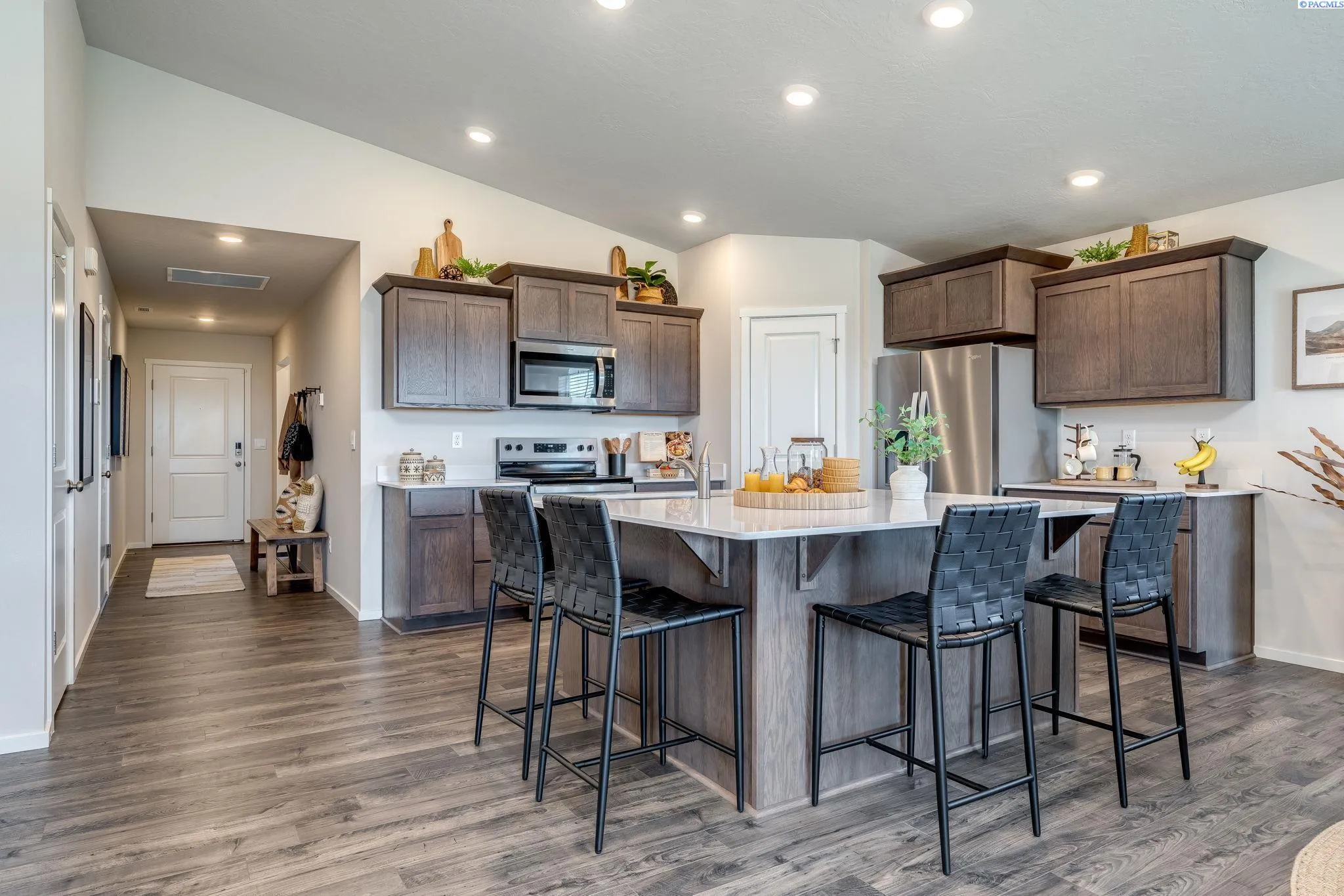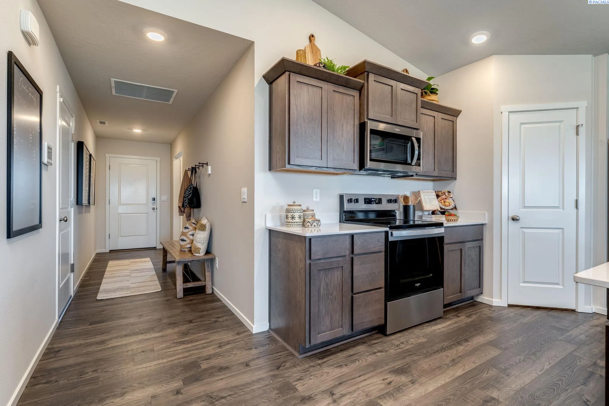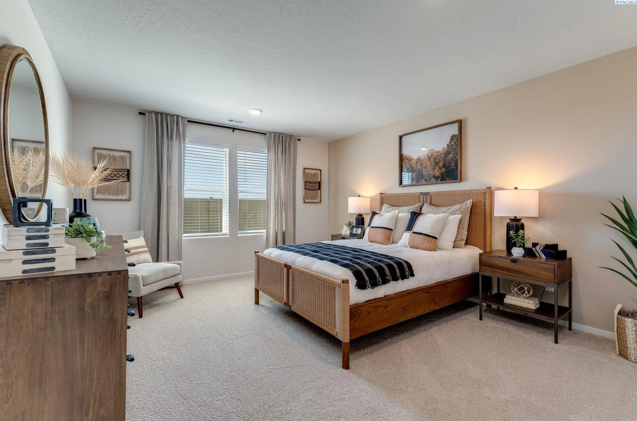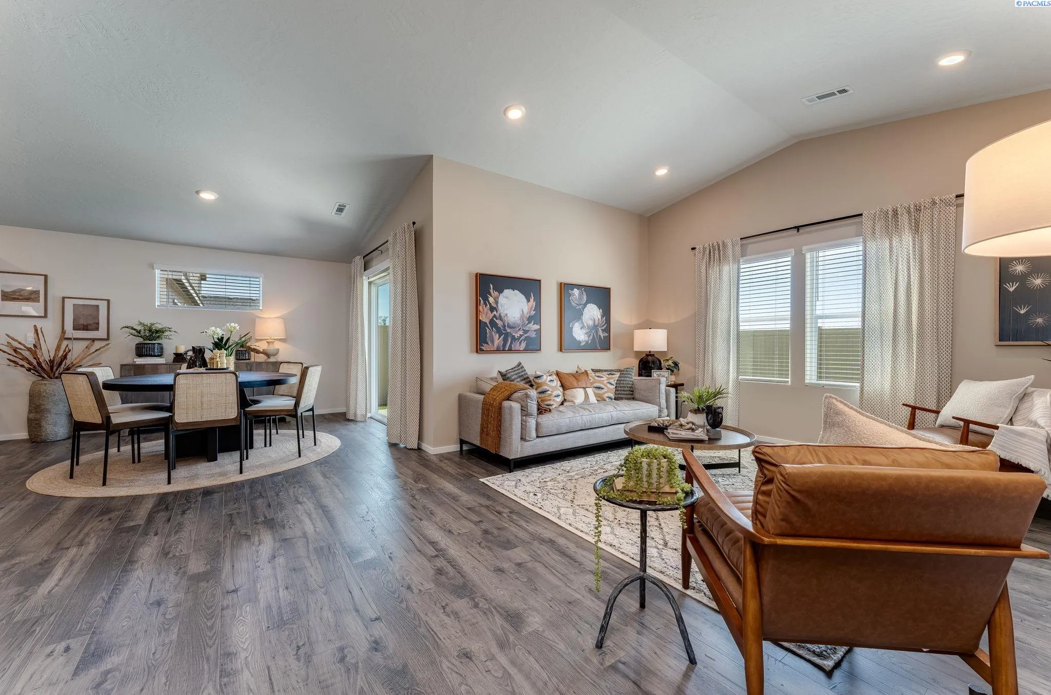 MLS# 288166 **THIS IS A MODEL HOME** The remarkable Cali floor plan offers the perfect combination of functionality and style, with 4 bedrooms, 2 baths, and a spacious 1,802 square feet of living space. One of the highlights of this floor plan is the main bedroom, featuring dual vanities and a generous walk-in closet. Additionally, the secondary bedrooms provide easy access to a full-size bathroom, ensuring everyone’s comfort and convenience. The heart of this home lies in its central living area, boasting a formal dining space, a cozy living room with an electric fireplace, and a gourmet kitchen. The kitchen is equipped with stainless steel appliances, including an electric range, a microwave with a vent hood, and a dishwasher. The solid surface countertops and backsplash add a touch of sophistication and practicality. You can enjoy your evenings on the covered patio. Last but not least, this home is equipped with a smart home package, allowing you to seamlessly integrate technology into your everyday life. MODEL HOME IS OPEN DAILY from 11 – 5:30 pm.