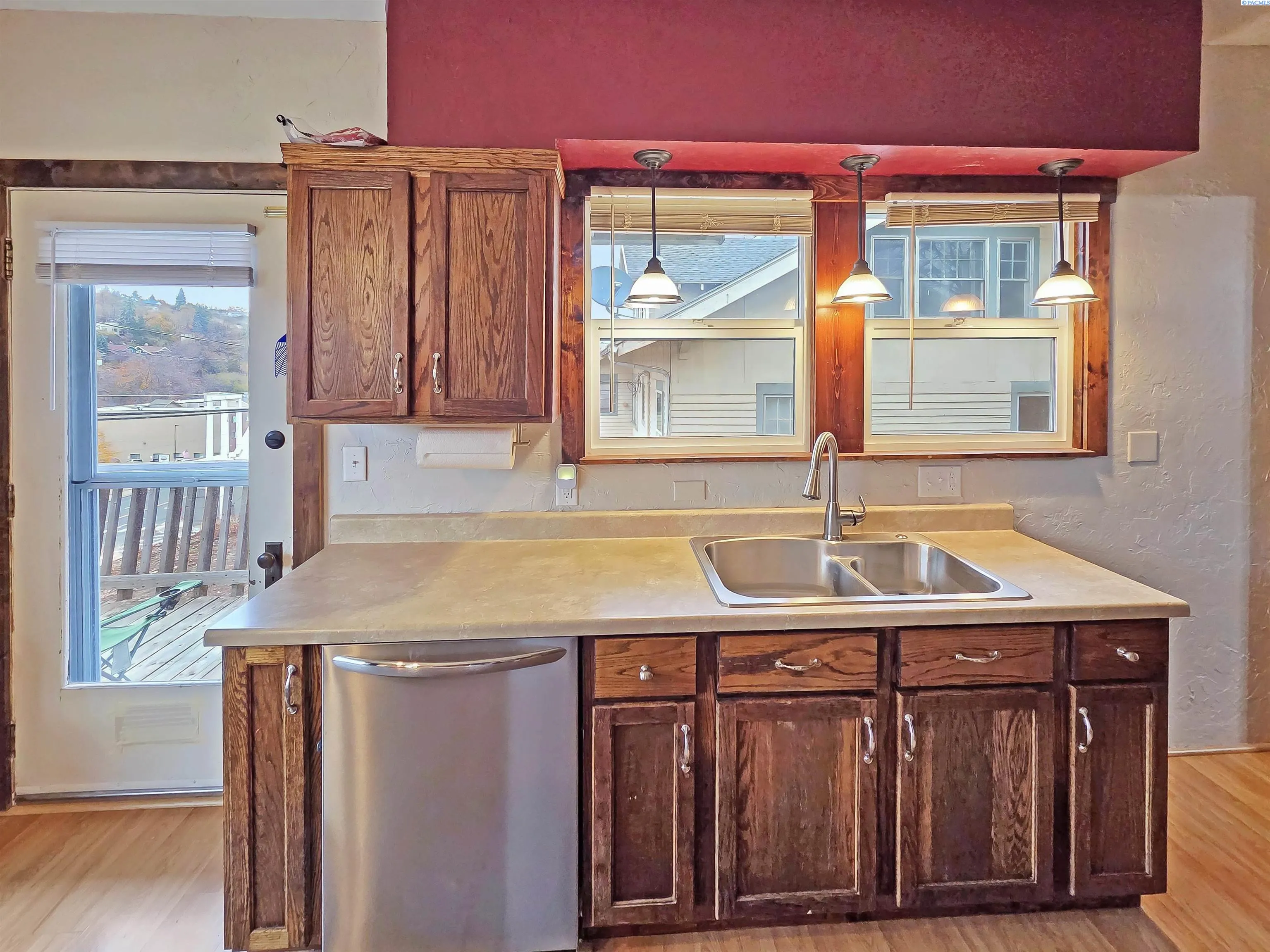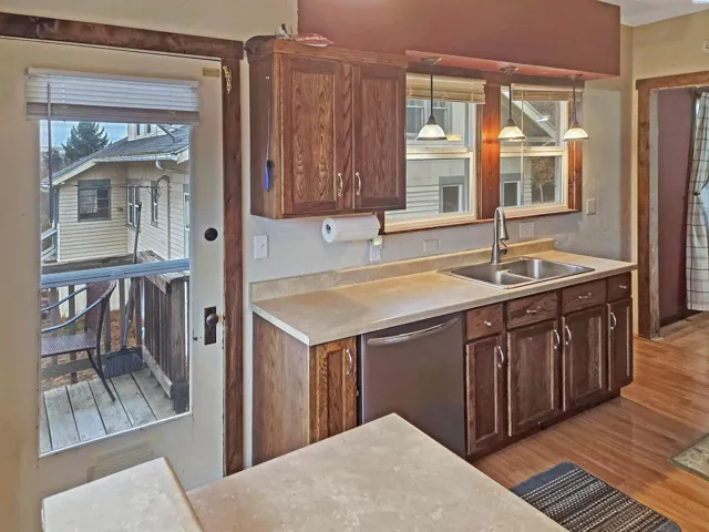 MLS# 288877 Check out this attractrive 4 bedroom 2 bath home in Colfax, WA! This home has a large bright sunny living room and a sunken sitting space with fireplace. The dining room is beautiful and has a gorgeous built-ins. The kitchen has matching stainless appliances, lots of storage and great counterspace. Both bedrooms up stairs are spacious and have good closets. The downstairs has brand new LVP flooring throughout with a new bathroom and seperate laundry room. The garage is detached and accessed from downstairs. It provides lots of storage. The yard is in great shape and there is a nice covere patio area from the walkout basement.