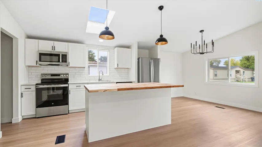 MLS# 288222 Gorgeous, fully updated 3-bedroom, 2-bath home with 1,456 sq. ft. This 2025 remodel looks and feels brand new with an open-concept floor plan and high-end finishes throughout. Everything has been redone — flooring, cabinets, countertops, electrical, plumbing, and lighting. The kitchen features premium stainless-steel appliances, a modern shiplap backsplash, and a beautiful island perfect for meal prep or entertaining. Both bathrooms have been completely remodeled with elegant tile showers. Enjoy durable LVP flooring, central heat and air, and fresh, contemporary fixtures. Located in a well-kept West Richland park near shopping, dining, and recreation, this home offers modern comfort and easy living.