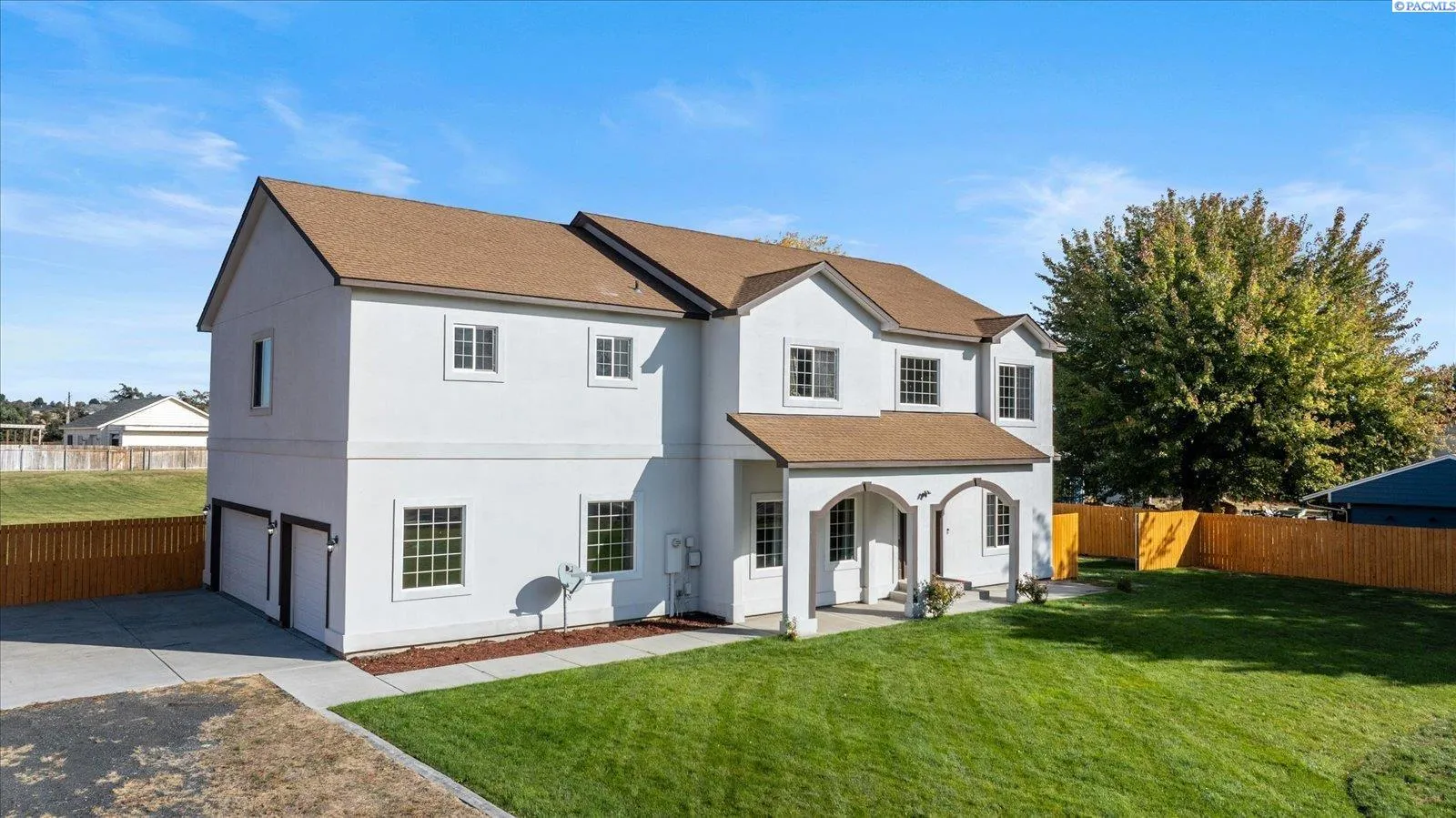 MLS# 288256 Back on the market with a new price, this 3,894 sq ft custom-built, two-story home offers exceptional space, character, and flexibility in a prime Pasco location!Built in 2007, the home features four bedrooms and four bathrooms, and sits on a generous 0.92-acre lot, with a covered front porch and a large 3-car garage. Inside, soaring ceilings, dual staircases, and a light-filled open layout create a warm yet impressive atmosphere. The main level offers multiple living spaces including a bright den, formal dining room, and a cozy living room adjacent to the larger than average kitchen. The kitchen includes rich wood cabinetry, granite countertops, and a breakfast nook overlooking the beautiful backyard.Upstairs, all four bedrooms feature connecting full bathrooms, walk-in closets, and vaulted ceilings. A generously sized laundry room on the upper level adds everyday convenience. The primary suite serves as a true retreat with French doors, dual vanities, a soaking tub, and an oversized walk-in closet. A spacious bonus room with French doors provides flexible space for a theater room, home gym, or play area!Situated on nearly one acre, the fully fenced backyard offers endless potential for a shop, barn, garden, pasture, or pool. Located in the county with no HOA, public water, and a private septic system, this home provides peaceful living in a quiet, close-knit community with wonderful neighbors — all while offering the space and freedom to bring your vision to life.