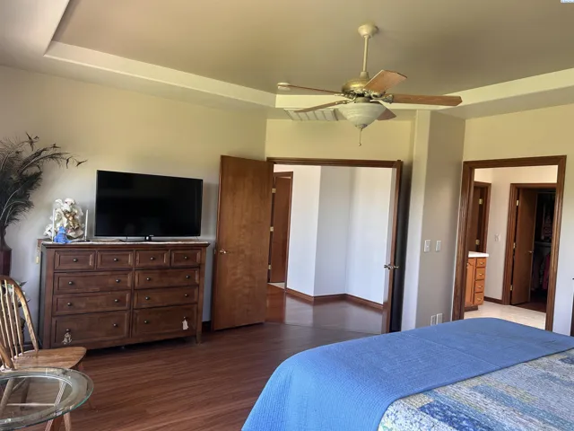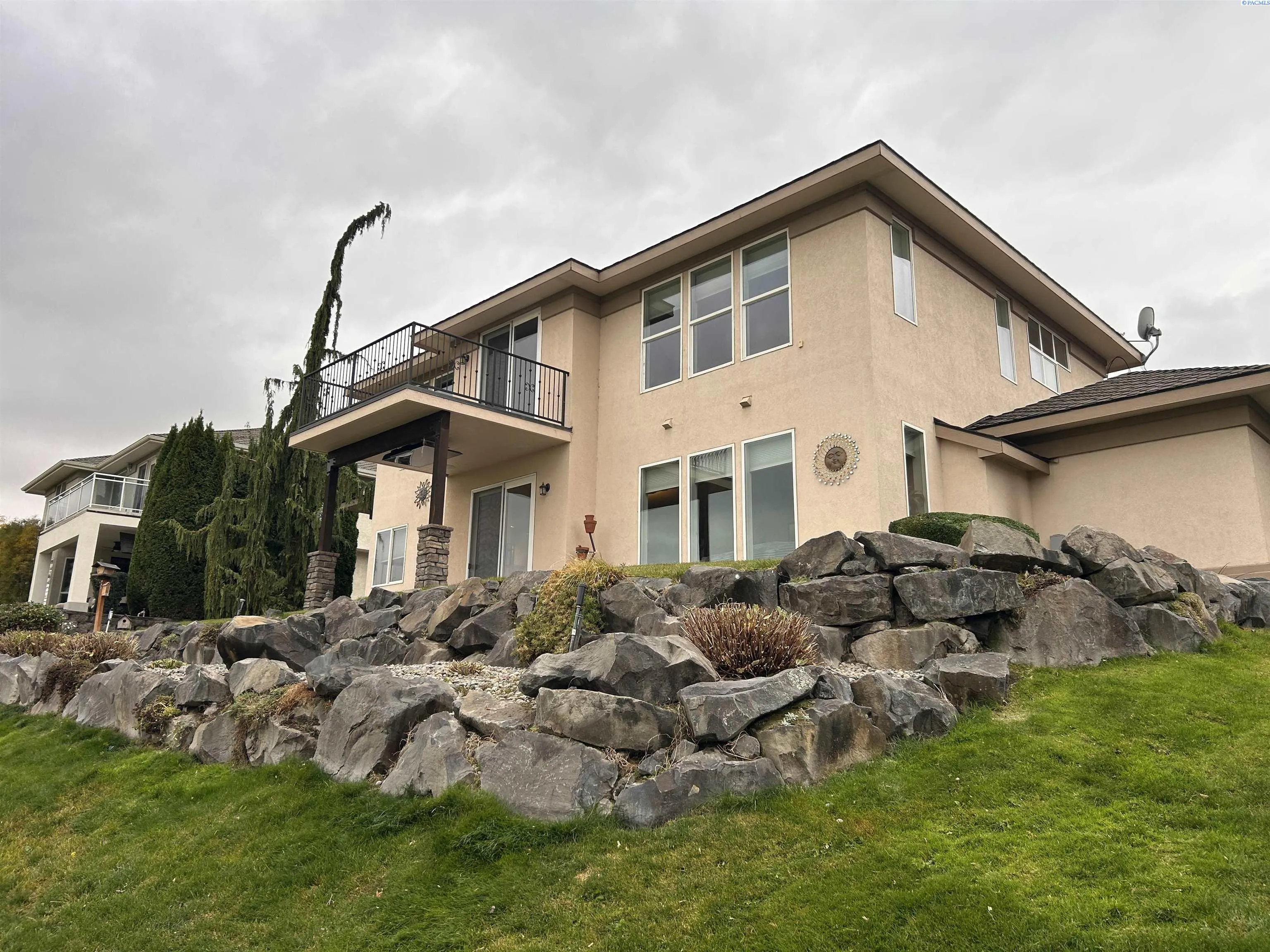 MLS# 288309 This spacious home features three bedrooms, three bathrooms, a large upstairs open room with sliders to a large balcony, a family room, a breakfast area, an island kitchen, and formal living and dining rooms. Enjoy two gas fireplaces with beautiful mantels, wood, tile, and LVP flooring, and an abundance of natural light. The deluxe master suite includes a glass block double shower, a walk-in closet, and stunning views. The outdoor entertaining space offers a hot tub, TV, gas fire pit, and beautiful golf course views. Additional features include ample storage, central vacuum, tile and granite countertops, a gas cooktop, a three-car garage with 220 outlet, and mature landscaping. Realtor Owned