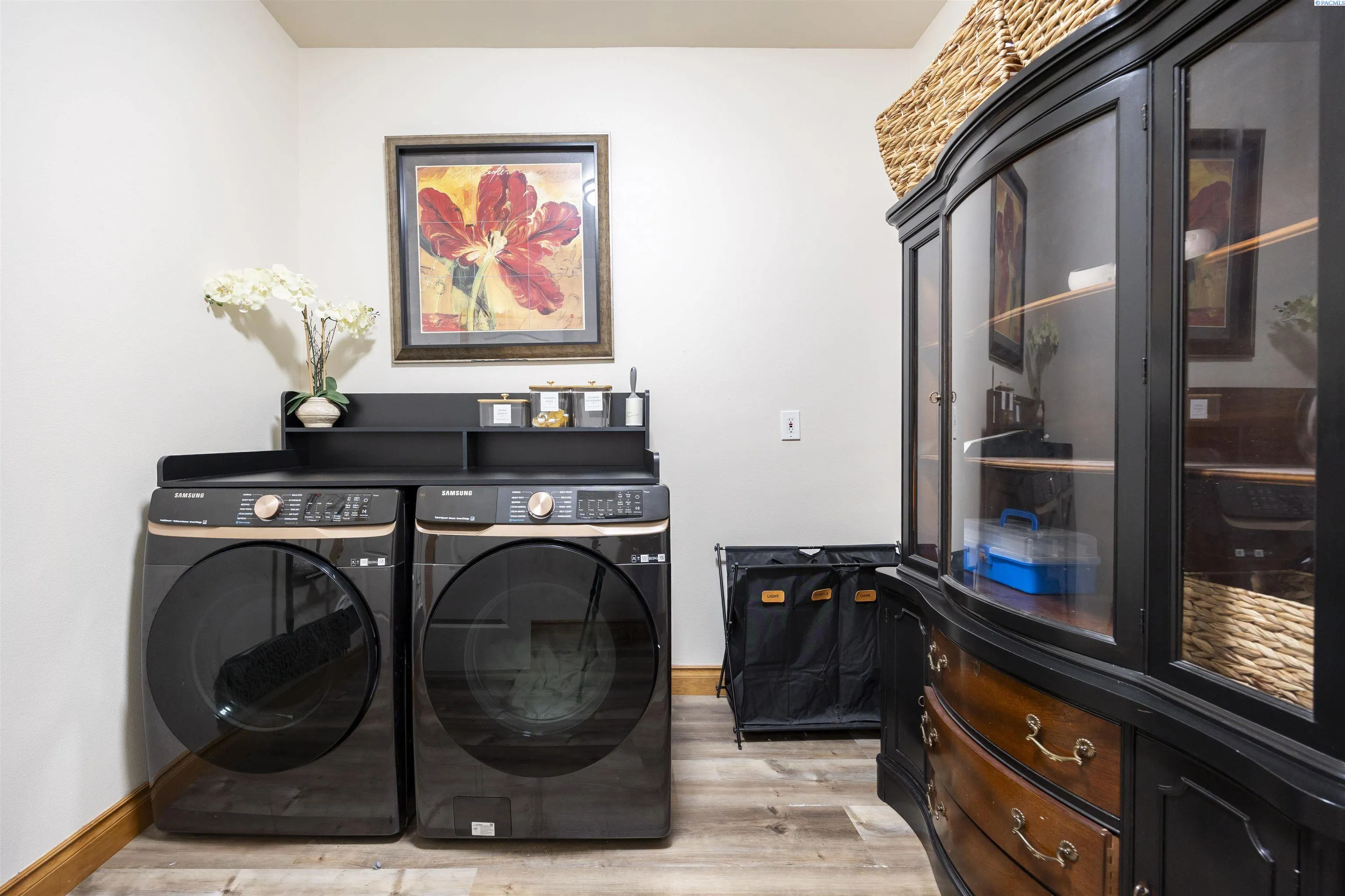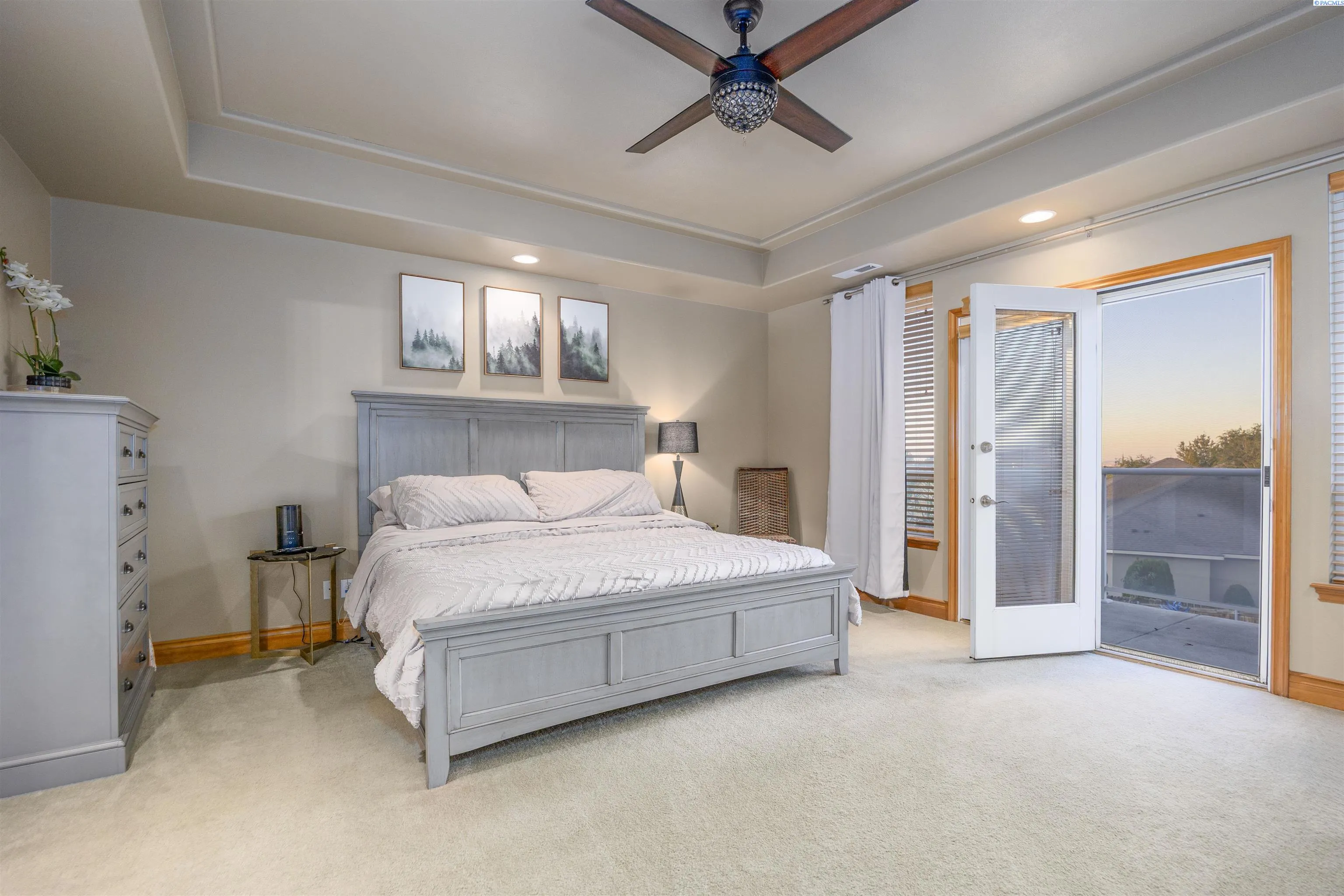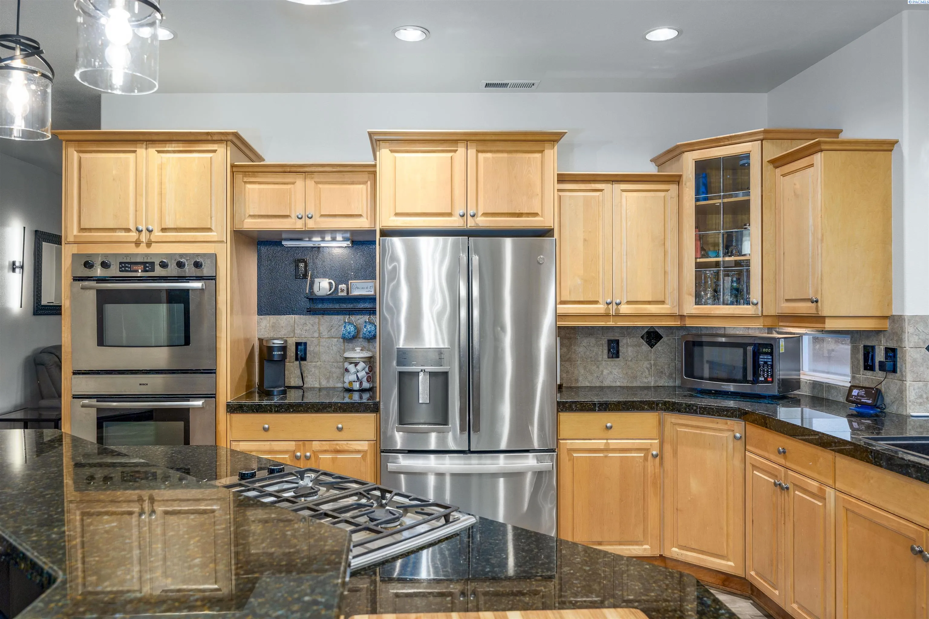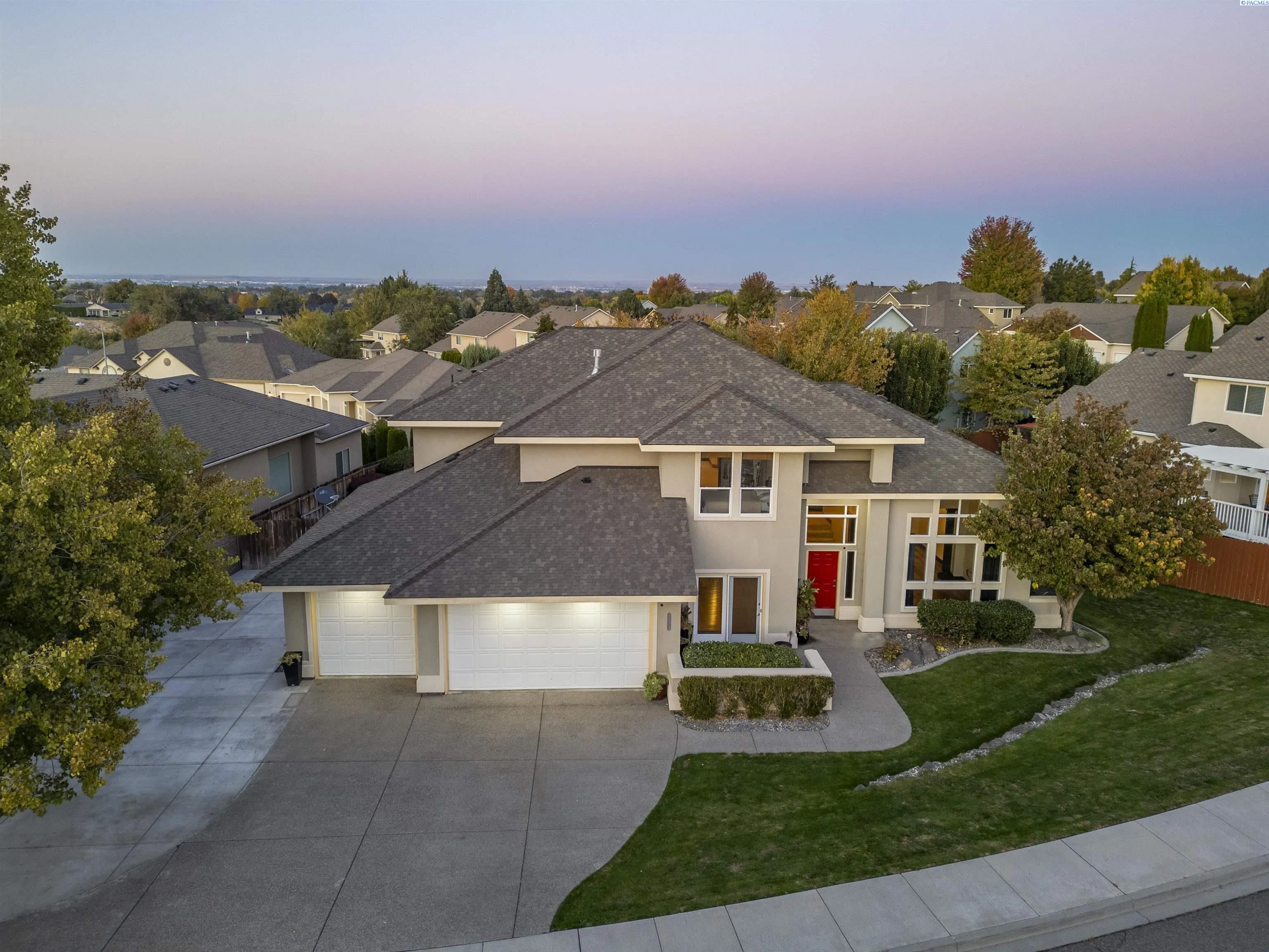 MLS# 288274 Luxury Living in Loden Greens at Canyon Lakes! Welcome to this exquisite custom home nestled within the prestigious Canyon Lakes golf community, ideally located on a quiet street with easy access to the golf course and clubhouse. Offering 3,062 sq. ft. of beautifully designed living space, this two-story home features 3 bedrooms plus a den and 2.5 bathrooms, blending comfort, elegance, and functionality. Step inside and be captivated by the striking architectural details — raised ceilings, elegant columns, expansive windows that fill the home with natural light, and gorgeous laminate wood flooring throughout the main level. The layout offers both formal and casual living spaces, including a sophisticated living room, a formal dining room perfect for hosting gatherings, and a welcoming family room with a cozy gas fireplace framed by custom built-ins and direct access to the large back patio. At the heart of the home, the gourmet kitchen is a chef’s delight, featuring a large island, granite countertops, custom cabinetry, a gas range, double ovens, pantry, and a spacious dining area. The den with private courtyard access makes an ideal home office or quiet retreat. The laundry room includes a utility sink, built-in storage, and convenient access to the oversized 3-car garage, offering abundant storage and workspace. Upstairs, the luxurious primary suite provides a serene escape with access to a private balcony overlooking the beautifully landscaped backyard. Enjoy a coffered ceiling with ceiling fan, an expansive custom closet, and a spa-inspired ensuite with double entry doors, soaking tub, massive tiled shower, and dual-sink vanity. Two additional spacious bedrooms and a versatile bonus room—perfect for a gym, playroom, or optional fourth bedroom—complete the upper level. Outside, the private backyard is an entertainer’s dream, featuring dual patios surrounded by lush, mature landscaping—ideal for relaxing or hosting summer gatherings. Canyon Lakes is an award-winning golf course community offering an exceptional lifestyle with a clubhouse, nearby park, and easy access to top-rated schools, a movie theater, restaurants, shopping, and medical facilities. Experience refined living in one of Kennewick’s most beautiful neighborhoods—your perfect Canyon Lakes retreat awaits!