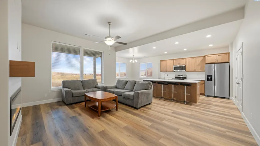 MLS# 288470 SELLER OFFERING CLOSING COST INCENTIVES, contact listing agent for more details. Welcome to your new home in Apple Valley, Kennewick!This charming single-story home, situated on a spacious 0.20-acre lot, was purchased just five months ago and has been lived in for under a month—offering the feel of brand-new construction without the wait. Designed for comfort and convenience, it features three bedrooms and a bright, open great room that provides versatile living space for any lifestyle.Inside, you’ll find quartz countertops in the kitchen, combining modern elegance with lasting durability. The open floor plan flows seamlessly through the main living areas, centered around a cozy fireplace—perfect for gatherings or quiet evenings at home.Step outside to a covered patio, ideal for dining al fresco, entertaining guests, or simply relaxing under the stars after a long day.Located in the desirable Apple Valley community, this home offers the perfect balance of serenity and convenience—with shopping, dining, and schools just minutes away. Whether you’re starting a new chapter, raising a family, or downsizing into comfort, you’ll appreciate the warmth and livability this home provides.Don’t miss your chance to make this home yours. Schedule your private showing today and discover all Apple Valley living has to offer.