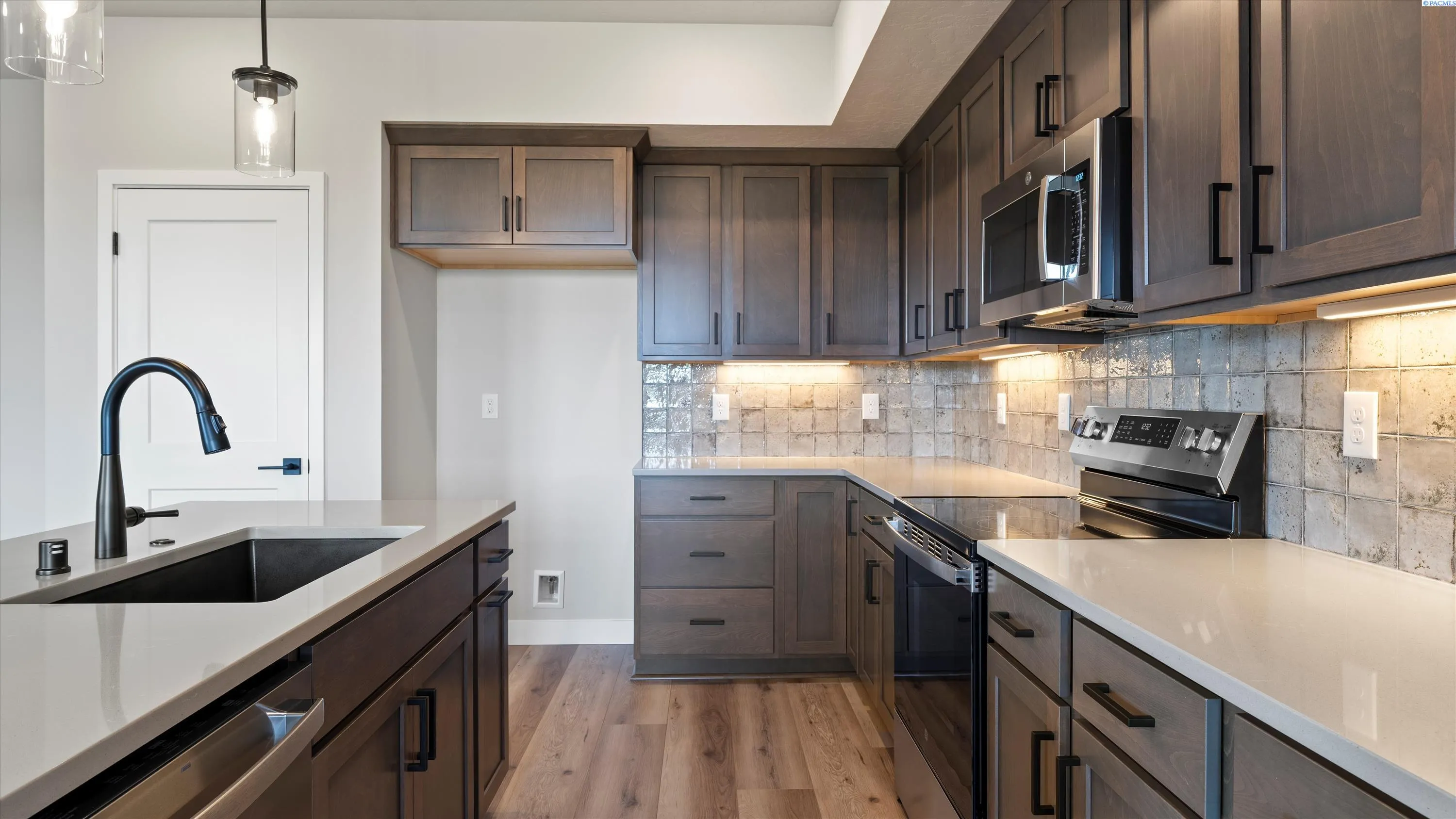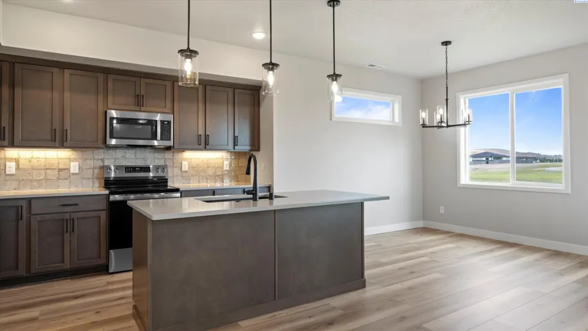 MLS# 288726 Reata Road to Southgate, right on Morningside Parkway. **Welcome to this stylish Tanninen Home on a gorgeous lot in the desirable South Orchard neighborhood of Badger Mountain South! Don’t miss this 1496 square foot home that includes 3 bedrooms and 2 baths. It features a large owner’s suite with a barn door leading to a spacious bathroom with tile shower and Delta fixtures. Enjoy the well designed kitchen with GE appliances, soft-close Huntwood cabinets, quartz countertops and a large kitchen island. The kitchen opens to the great room featuring a modern, electric fireplace with tile surround and ceiling fan. A sliding door opens to the spacious back yard which backs up to a future park and green belt, providing beauty and privacy. This home includes front and back landscaping with an underground, timed sprinkler system. You will love the detail in this quality-built Tanninen home! The expanding neighborhood has great views of Badger Mountain and the nearby hills.. and AMAZING sunsets! It’s great for walking, with plenty of sidewalks and walking paths. Enjoy great freeway access to Kennewick and Richland. Come check out all that South Orchard and Tanninen Homes have to offer! *Ask about great rates for qualified buyer from preferred lender!
