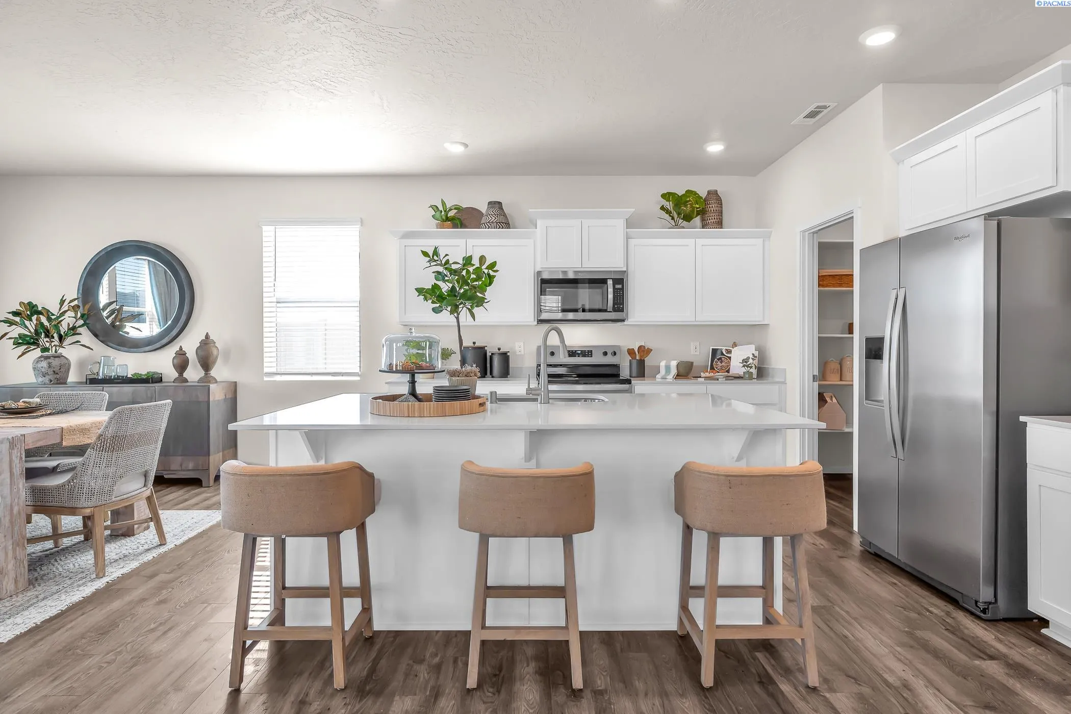 MLS# 288524 **THIS IS A MODEL HOME** The Cambridge floor plan is a beautiful, spacious home that holds 4 bedrooms and a bonus room, 2.5 bathrooms, and a 2-car garage. A shady covered patio, a jumbo pantry, and a huge walk-in closet add thoughtful touches to this cheerful home. Step inside and store your shoes in the mud room. The main level has a great room concept that flows seamlessly. The spacious kitchen impresses with stainless steel appliances, quartz counters, and lots of cabinet space, including a kitchen island with seating. On the opposite wall, an electric fireplace glows in the living area. The adjoining dining area leads out to the covered patio, perfect for indoor/outdoor gatherings. A handy powder room on the main is across from the stairs. Wandering upstairs, a full bathroom and laundry room are encircled by 4 bedrooms and a large bonus room. Create a home office, playroom, or any configuration to meet your current stage in life. The primary suite is a private oasis, with a walk-in closet and attached bathroom with a double vanity. Each home has backyard privacy fence and front yard irrigated landscaping for a boost of curb appeal. With smart features like a doorbell and thermostat included, control of your home is at your fingertips. A 10-year limited warranty protects your purchase. Photos are representative of plan only and may vary as built. Visit The Dunes today and see the Cambridge in person! **PRICE LISTED ABOVE DOES NOT INCLUDE AVAILABLE OPTIONS [Rear yard landscaping, 3 car garage, blinds, white cabinetry, refrigerator, washer & dryer] THAT HAVE BEEN ADDED TO MODEL HOME** MODEL HOME IS OPEN DAILY from 11 – 5:30 pm.