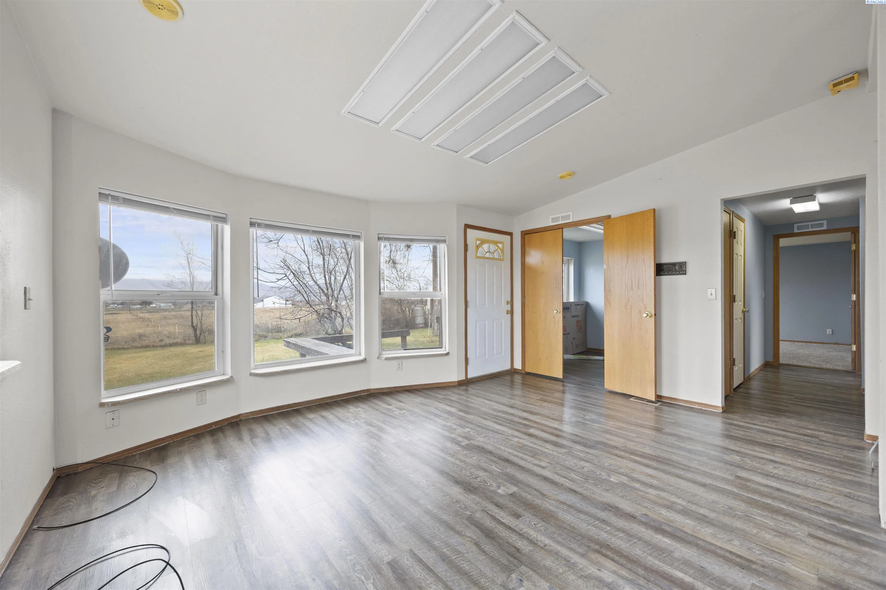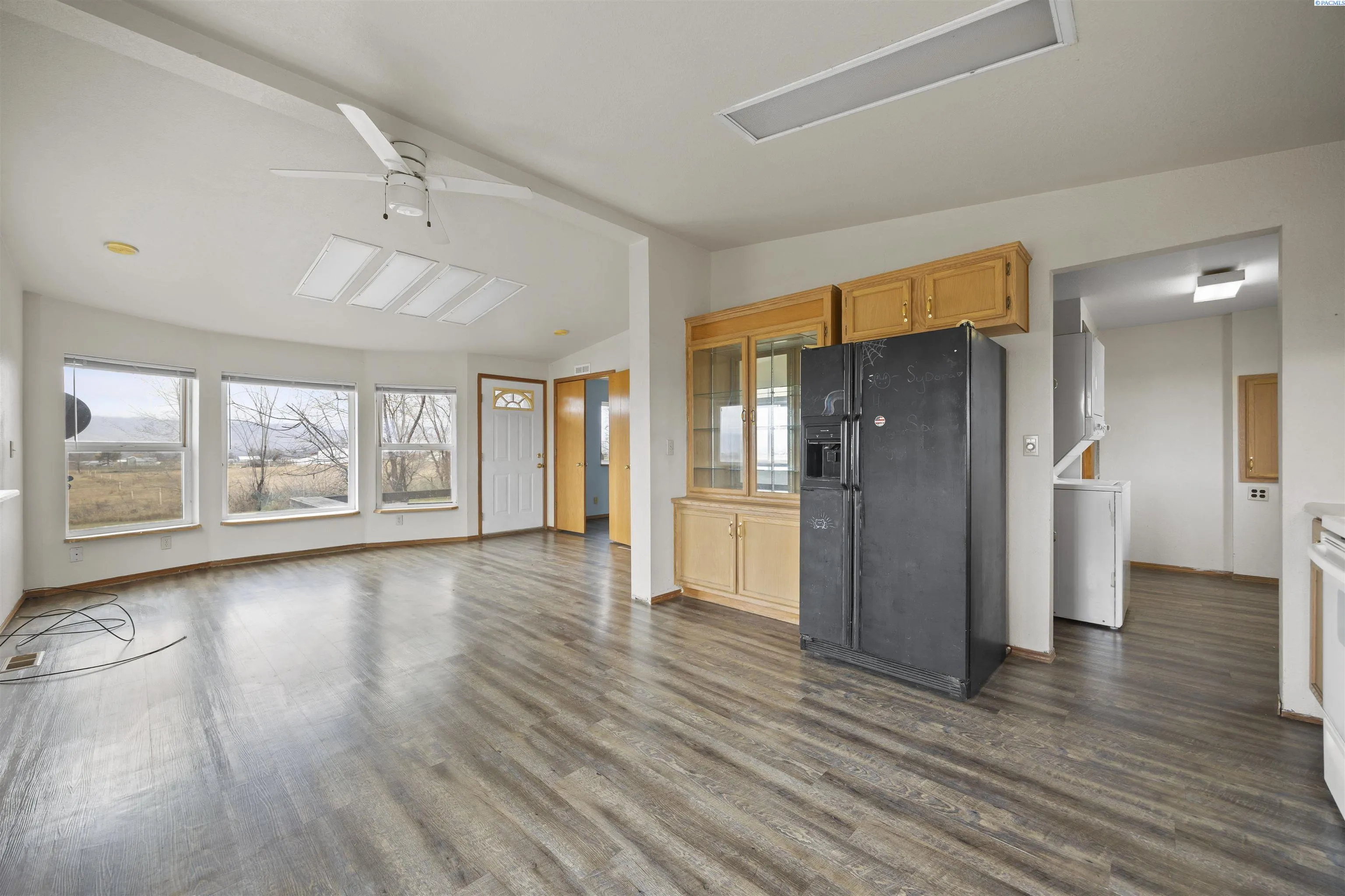 MLS# 288512 Experience peaceful country living on nearly 20 acres in Prosser, featuring a comfortable manufactured home and a spacious 1476 sq ft Shop! Enjoy sweeping views of the mountains and surrounding farmland, offering a sense of tranquility and privacy all around. Perfect for animal lovers, this property is partially fenced and includes irrigation, with ample space to add a barn, corrals, or additional outbuildings. The home is surrounded by mature landscaping, creating a welcoming country setting. Inside, you’ll find 1,080 sq ft of comfortable living space, featuring 3 bedrooms and 2 bathrooms in an open and inviting layout. The home offers laminate flooring, vaulted ceilings, and large windows that fill the space with natural light. Enjoy year-round comfort with central heating and air conditioning. The property is serviced by a private well and septic system. Live in the manufactured home while you build your dream home or hobby farm, or use it as a fantastic income-producing rental. This peaceful country setting offers the perfect blend of privacy and convenience, with easy access to both downtown Prosser and Grandview.